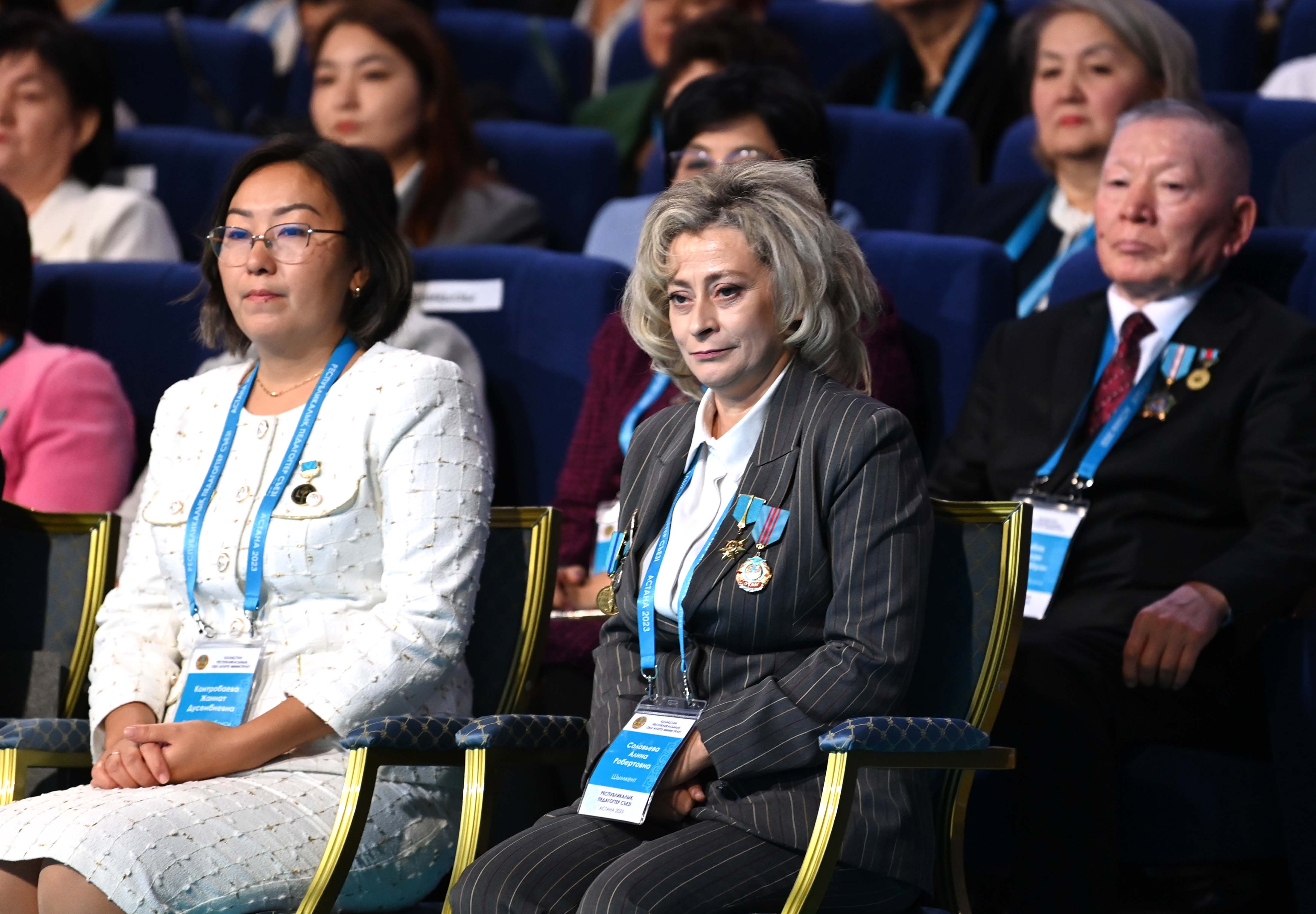 Сонымен қатар Мемлекет басшысы аса үздік жетістіктері және Қазақстан Республикасына сіңірген айрықша еңбегі үшін бірқатар мұғалімге «Қазақстанның еңбек сіңірген ұстазы» құрметті атағын берді. Аталған марапат еңбек ардагері Майра Мәмбетоваға (Алматы қаласы), Қожаберген жырау атындағы орта мектеп мұғалімі Айжан Қапезоваға (Петропавл қаласы), С.Әбдіжаппаров атындағы жалпы орта мектеп-интернатының мұғалімі Роза Салимоваға (Түркістан облысы), А.Байтұрсынұлы атындағы мектеп-гимназия мұғалімі Сәбира Күлпейісоваға (Қарағанды қаласы), академик Қ.Сәтбаев атындағы мектеп-балабақша оқу-тәрбие кешенінің мұғалімі Сәбит Ибадуллинге (Павлодар облысы), Райымбек батыр атындағы №50 «Қазғарыш» мектеп-лицейінің мұғалімі Айгүл Ержановаға (Астана қаласы), Ақтөбе облыстық мамандандырылған «Білім-инновация» лицей-интернатының мұғалімі Баян Базарғалиеваға салтанатты түрде табысталды.