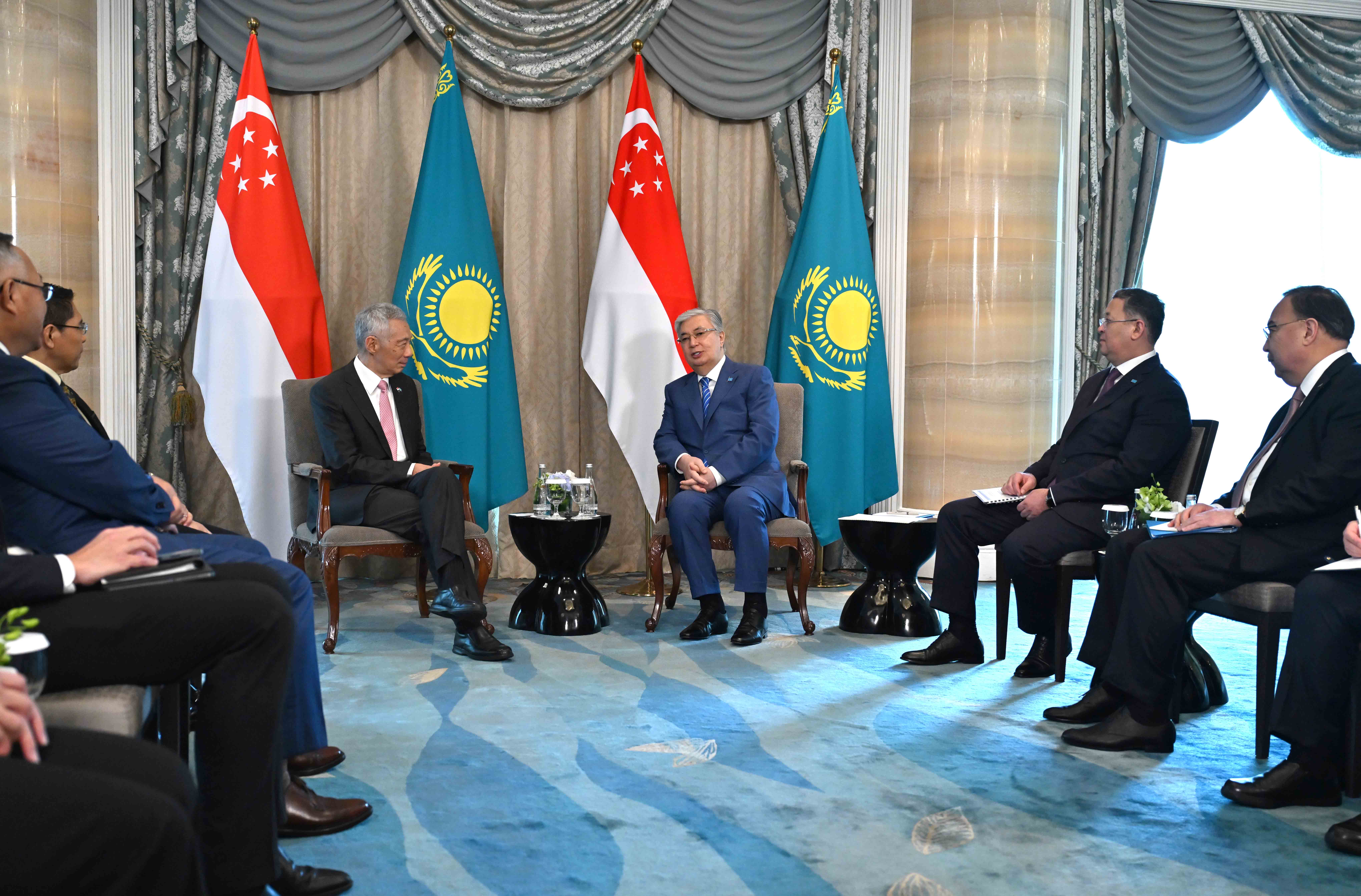 Сингапур Президент Қасым-Жомарт Тоқаев Қазақстанның Азиядағы уақыт сынынан өткен сенімді серіктесі Сингапурмен ынтымақтастықты жоғары бағалайтынын атап өтті. Оның айтуынша, жуырда ел басшылығының ауысқаны Сингапур үшін маңызды кезең болды. Қасым-Жомарт Тоқаев осы орайлы сәтті пайдалана отырып, Ли Сянь Лунды Сингапурдың аға министрі қызметіне кірісуімен құттықтады. Президент ел басшылығының үшінші буыны теңдікке, меритократияға, тиімді басқару мен әлеуметтік үйлесімділікке негізделген табысты әрі ұшқыр ойлы ұлт қалыптастыру секілді Ли Куан Ю мұрасының озық үлгісін сақтап, дамытып келе жатқанына назар аударды. Қасым-Жомарт Тоқаев Ли Сянь Лунның 20 жыл ішінде Қазақстан мен Сингапур арасындағы жан-жақты серіктестікке айтарлықтай үлес қосқанын әрі еліміздің шынайы досы екенін айтты. Өз кезегінде Ли Сянь Лун екі ел арасындағы өзара тиімді ынтымақтастықты нығайтудың маңыздылығын атап өтті. Оның айтуынша, Сингапур Қазақстанмен стратегиялық әріптестікті одан әрі жалғастыруға ниетті. Бұдан бөлек, кездесуде сауда-экономика, инвестиция, қаржы, көлік-логистика және гуманитарлық салалардағы ықпалдастық мәселелері талқыланды. Сондай-ақ халықаралық күн тәртібінің өзекті бағыттары жан-жақты қарастырылды.