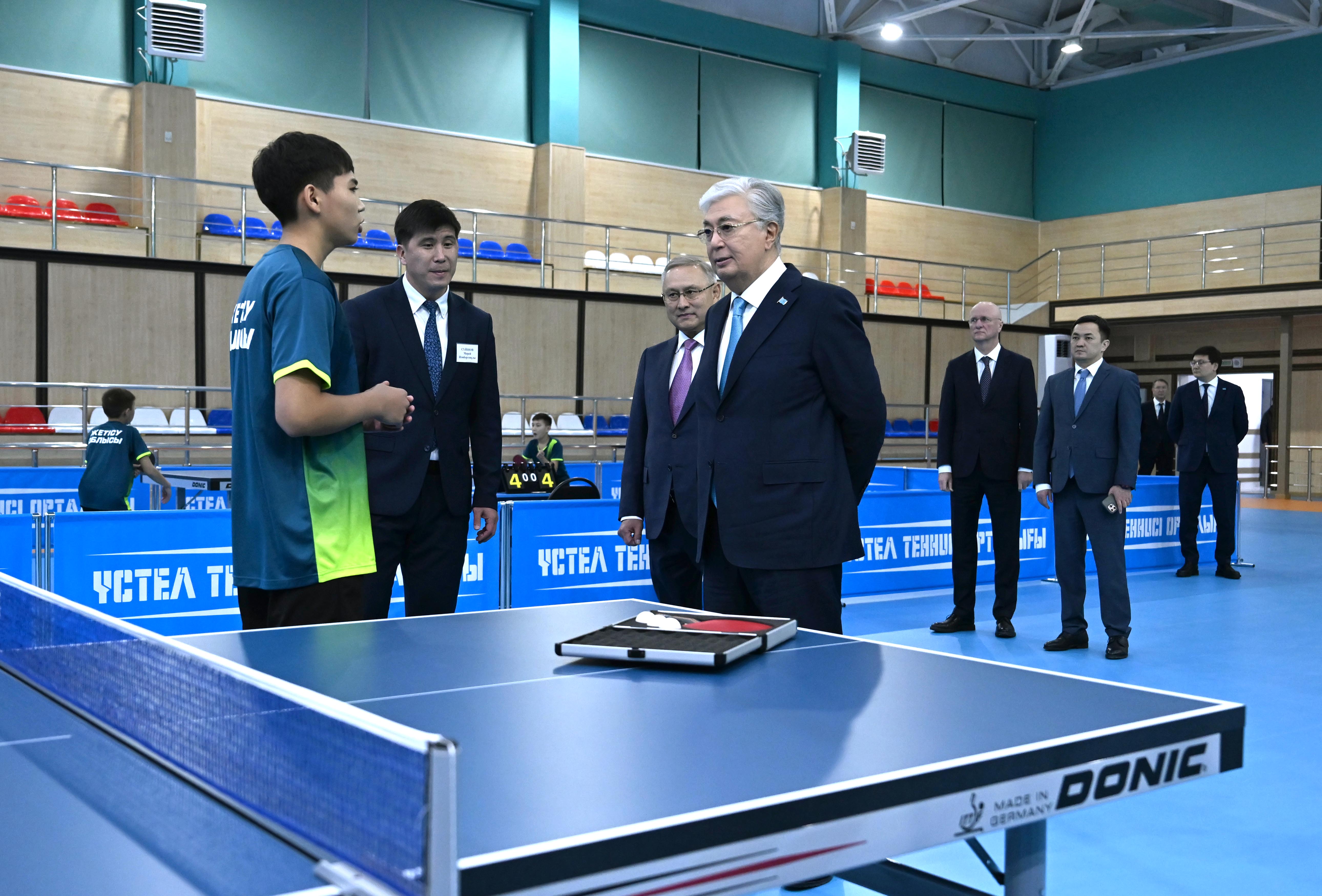 Талдықорған қаласы Қасым-Жомарт Тоқаев «Жетісу-Қолдау» қоғамдық қорының демеушілігімен салынған Үстел теннисі орталығымен танысты. Халықаралық стандарттарға сай, заманауи құралдармен жабдықталған ғимаратта Үстел теннисі ойындары және спорттық туризмге мамандандырылған балалар мен жасөспірімдердің спорт мектебі орналасқан. Мектеп директоры Мерей Сүйіновтің айтуынша, қазір мұнда 600-ден астам оқушы теннистен бөлек, тоғызқұмалақ, дойбы, шахмат, қол күресі және спорттық туризм секцияларына қатысады. Олардың арасында 33 спорт шеберіне үміткер, 41 бірінші разрядты спортшы бар. Президентке Жетісу облысындағы спорт инфрақұрылымының дамуы жөнінде мәлімет берілді. Атап айтқанда, қазір Алакөл ауданының Лепсі ауылында және Текелі қаласында дене шынықтыру кешендері, Панфилов және Сарқан аудандарында спорт кешендері салынып, Талдықорғандағы Орталық стадионға күрделі жөндеу жүргізіліп жатыр. Сонымен қатар шағын ауылдарда бұқаралық спортты дамыту үшін модульдік кешендер салу қолға алынды.