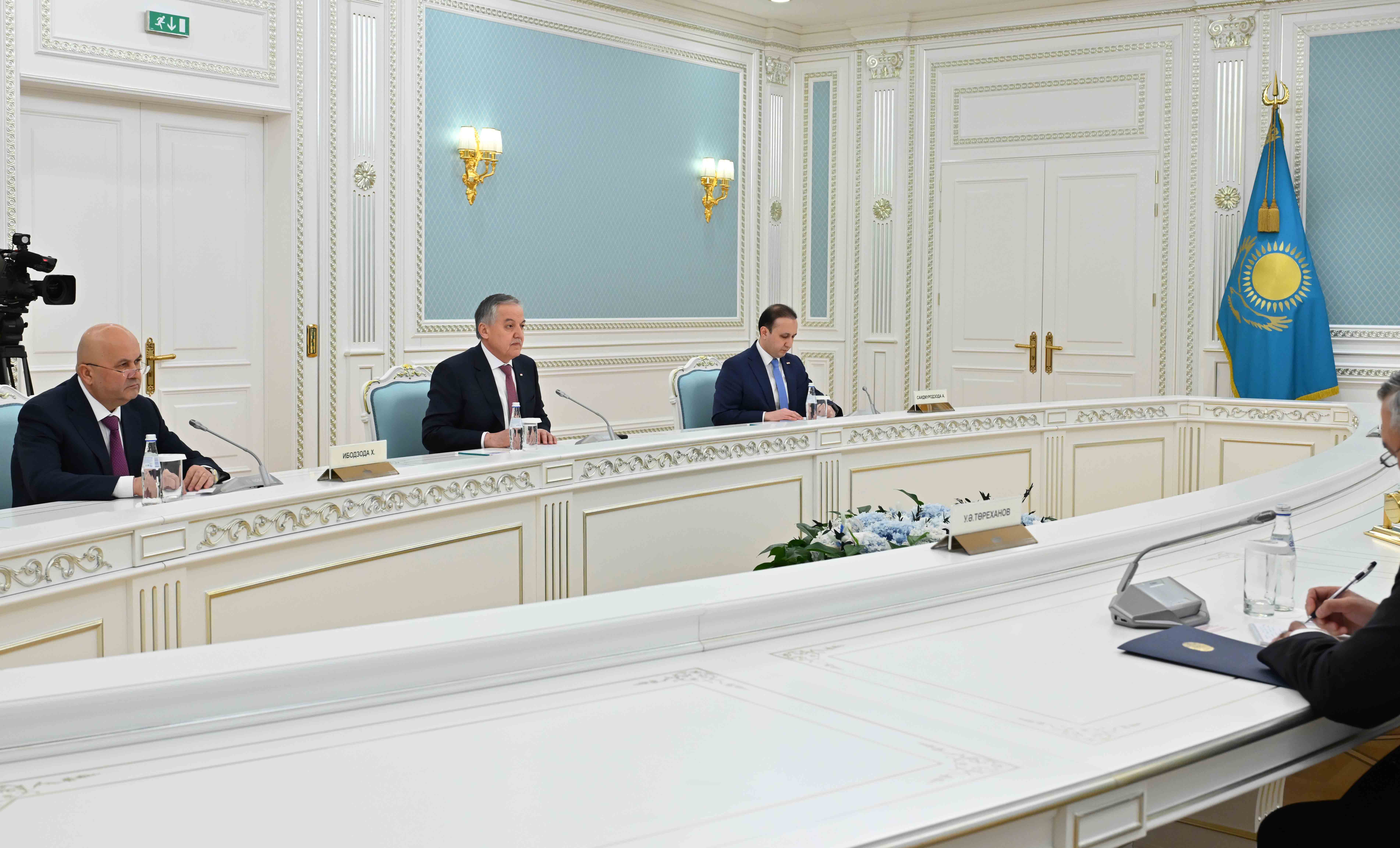 Қасым-Жомарт Тоқаев пен Сироджиддин Мухриддин өңірлік қауіпсіздік, су-энергетика саласындағы серіктестік, сонымен қатар Орталық Азияның орнықты дамуын қамтамасыз етуді көздейтін бірлескен шаралардың жай-күйін талқылады.