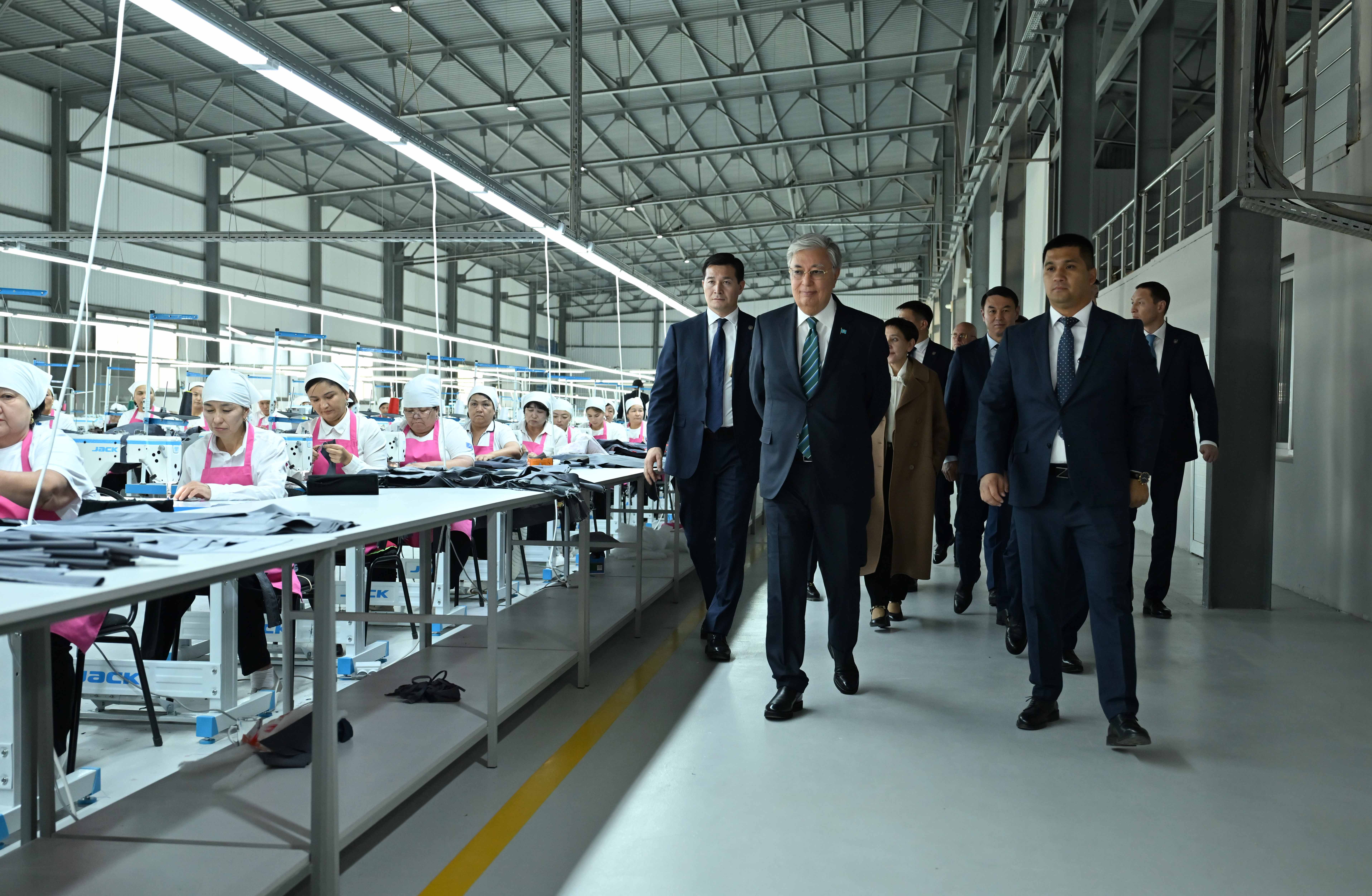 Түркістан облысы, Ордабасы ауданы Президент Ордабасы ауданында «JNRAY Group» серіктестігі биыл іске қосқан тігін фабрикасының жұмысымен танысты. Аумағы 6 мың шаршы метр болатын жеңіл өнеркәсіп нысанын ашуға мемлекеттік индустрияландыру бағдарламасы аясында 1,4 миллиард теңге көлемінде қаржылай қолдау көрсетілген. Қасым-Жомарт Тоқаевқа фабрикада киім-кешек, төсек жабдықтары және арнайы киім түрлері шығарылатыны жөнінде мәлімет берілді. Бүгінде кәсіпорында 300 адам жұмыс істейді. Келешекте өнім түрлерін көбейтіп, тігіншілер санын 500-ге дейін жеткізу жоспарланған. Қажетті шикізат көршілес Өзбекстан мен Қырғызстан елдерінен жеткізіледі. Мемлекет басшысы тігін цехын аралап көріп, өнім үлгілерімен танысты.
