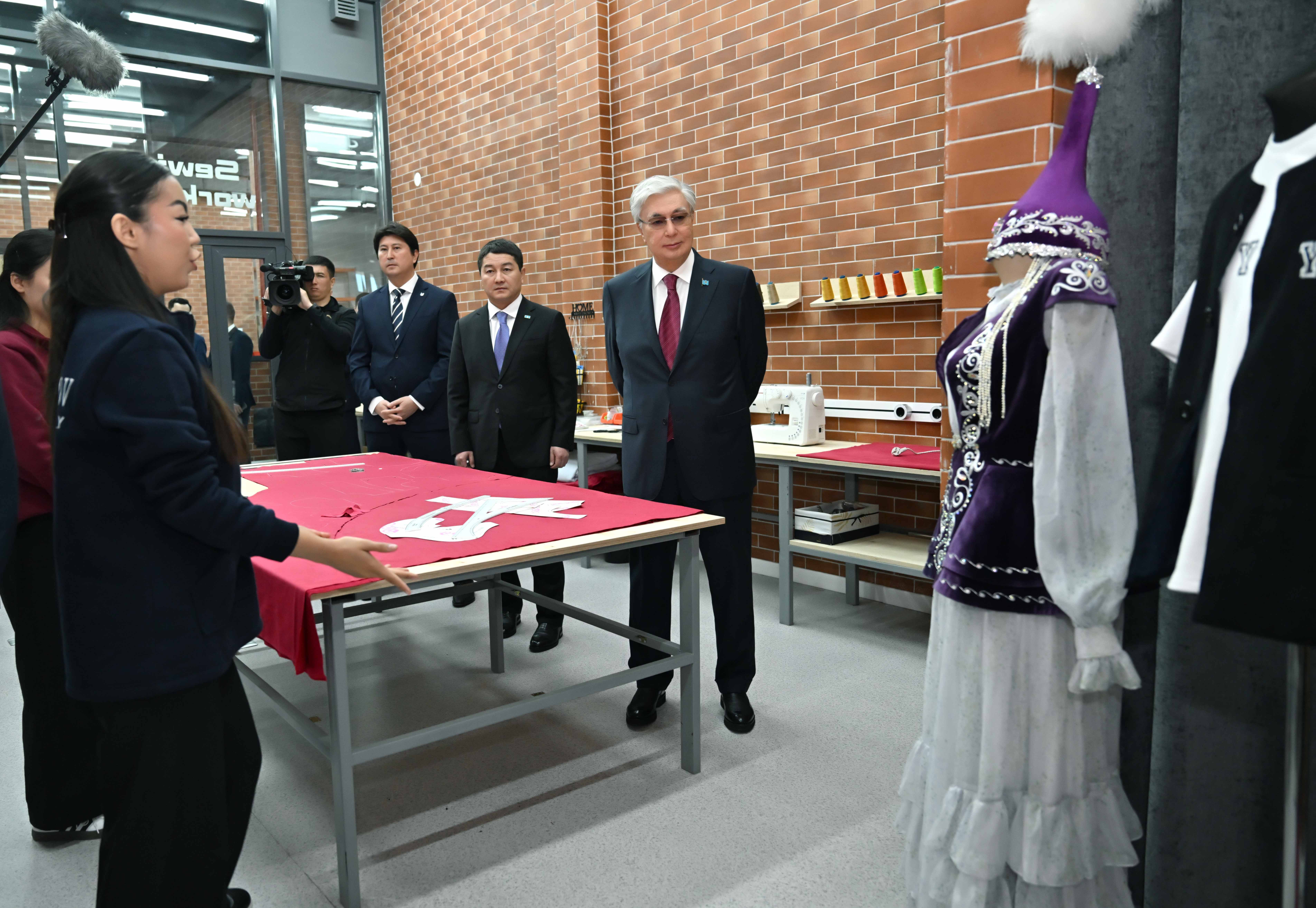 Мемлекет басшысына инновациялық зертханалар мен шеберханалар таныстырылды. Онда студенттер мен жас мамандар электроника, роботты техника, лазермен кесу, ағаш және металл өңдеу, полиграфия, 3D-дизайн, тігіншілік дағдыларын меңгереді.