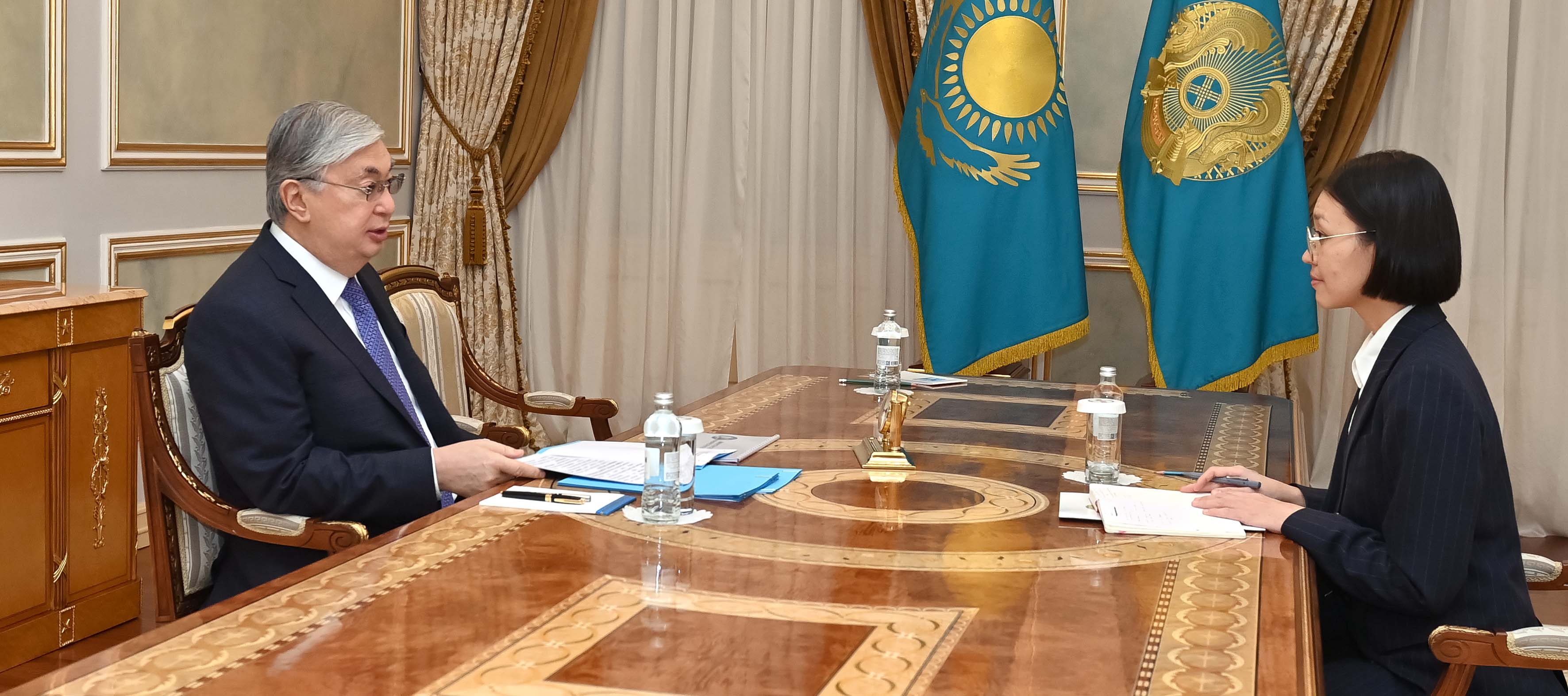 Президент Индустрия және инфрақұрылымдық даму министрі Марат Қарабаевты, Экология және табиғи ресурстар министрі Зүлфия Сүлейменованы, Мәдениет және спорт министрі Асхат Ораловты, Оқу-ағарту министрі Ғани Бейсембаевты және Әділет министрі Азамат Есқараевты қабылдады.