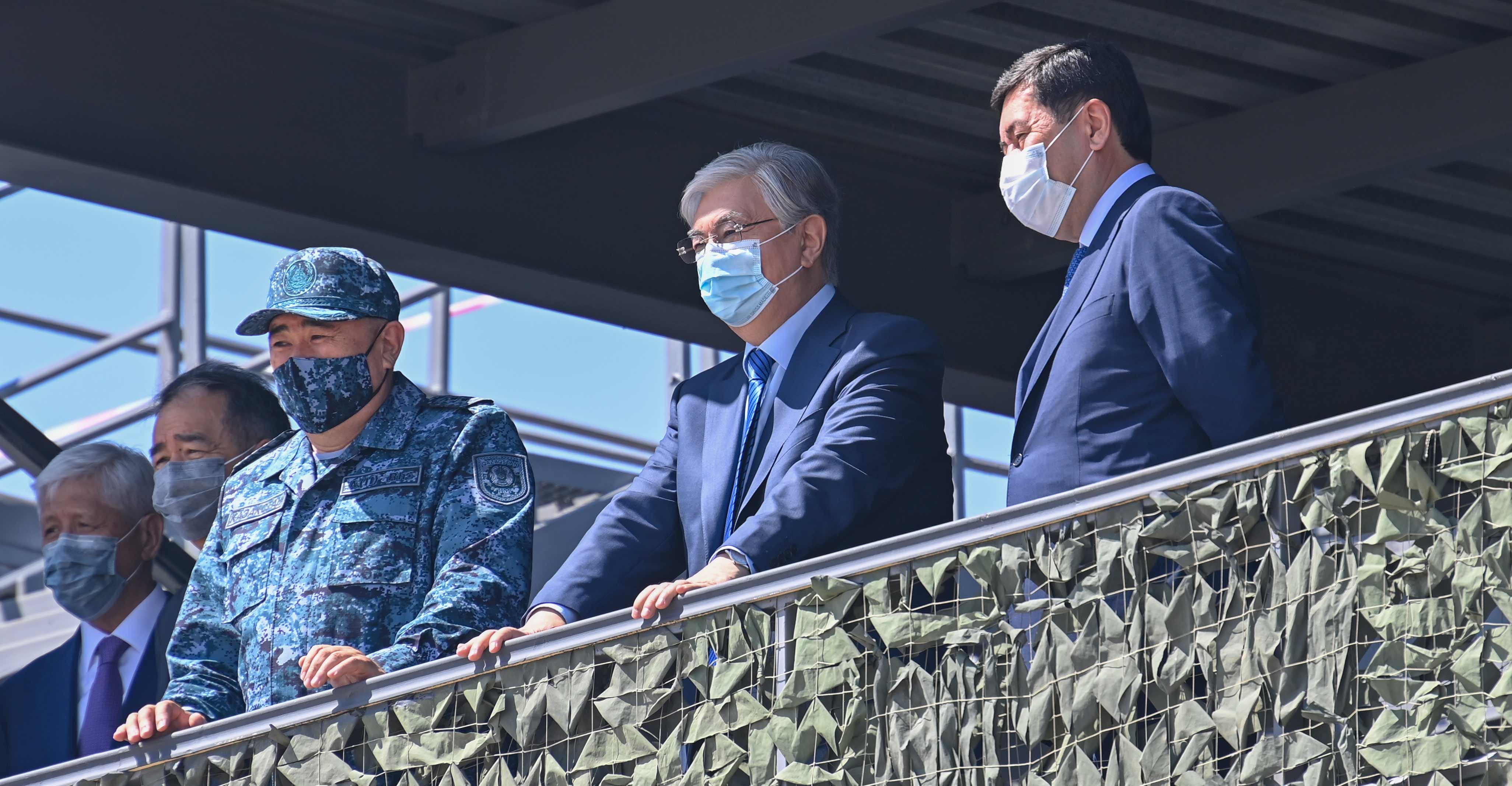 Қасым-Жомарт Тоқаев Қазақстан Республикасы Ішкі істер министрлігі Ұлттық ұлан құрылымының Алматы облысындағы Жауынгерлік және әдістемелік дайындық орталығында өткен «Қайсар-2021» жедел-тактикалық оқу-жаттығуларына барды.