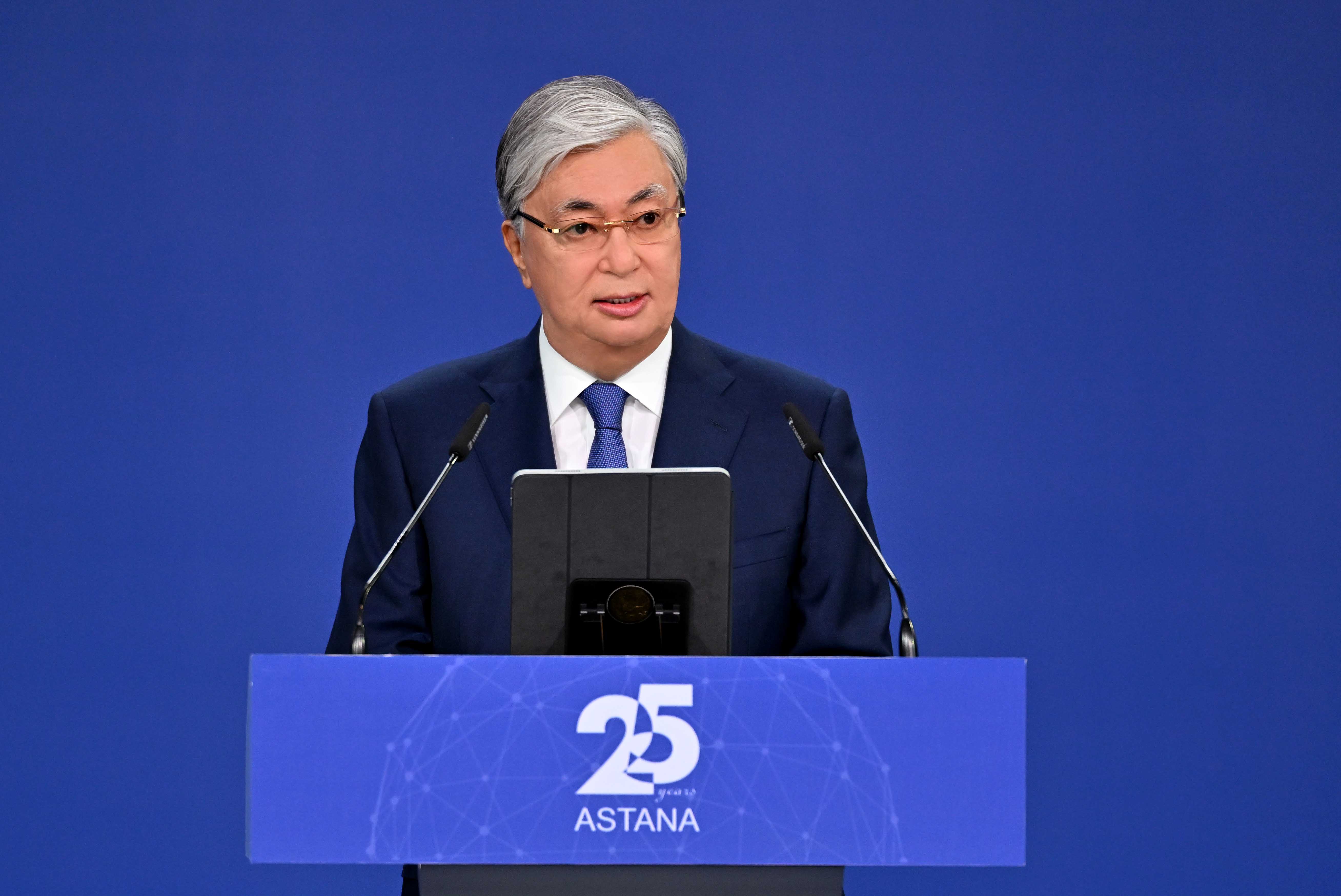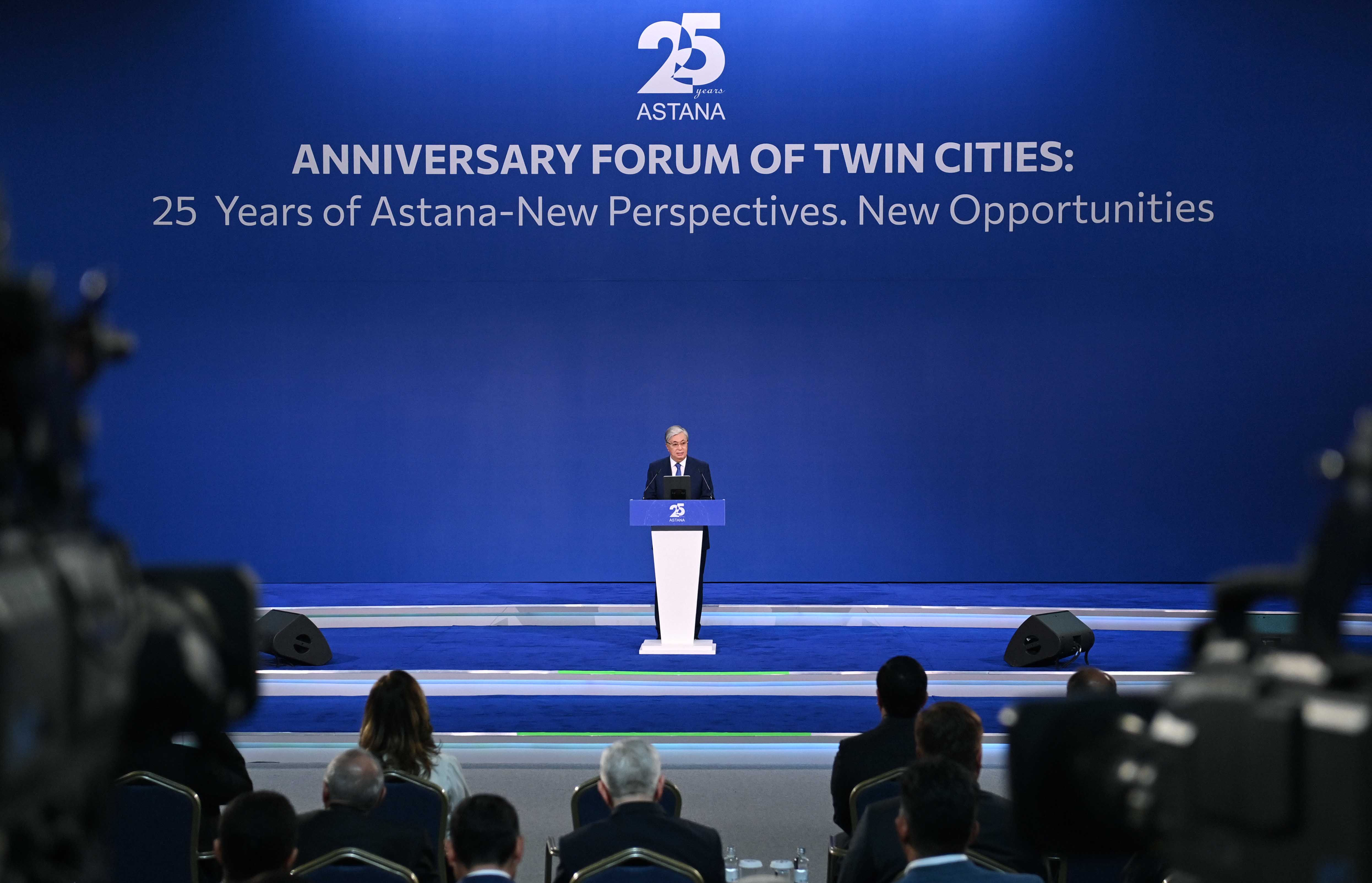 Мемлекет басшысы Қасым-Жомарт Тоқаев «Астананың 25 жылдығы. Жаңа даму бағыттары. Жаңа мүмкіндіктер» атты елорданың бауырлас қалалары форумының салтанатты ашылу рәсіміне қатысты.