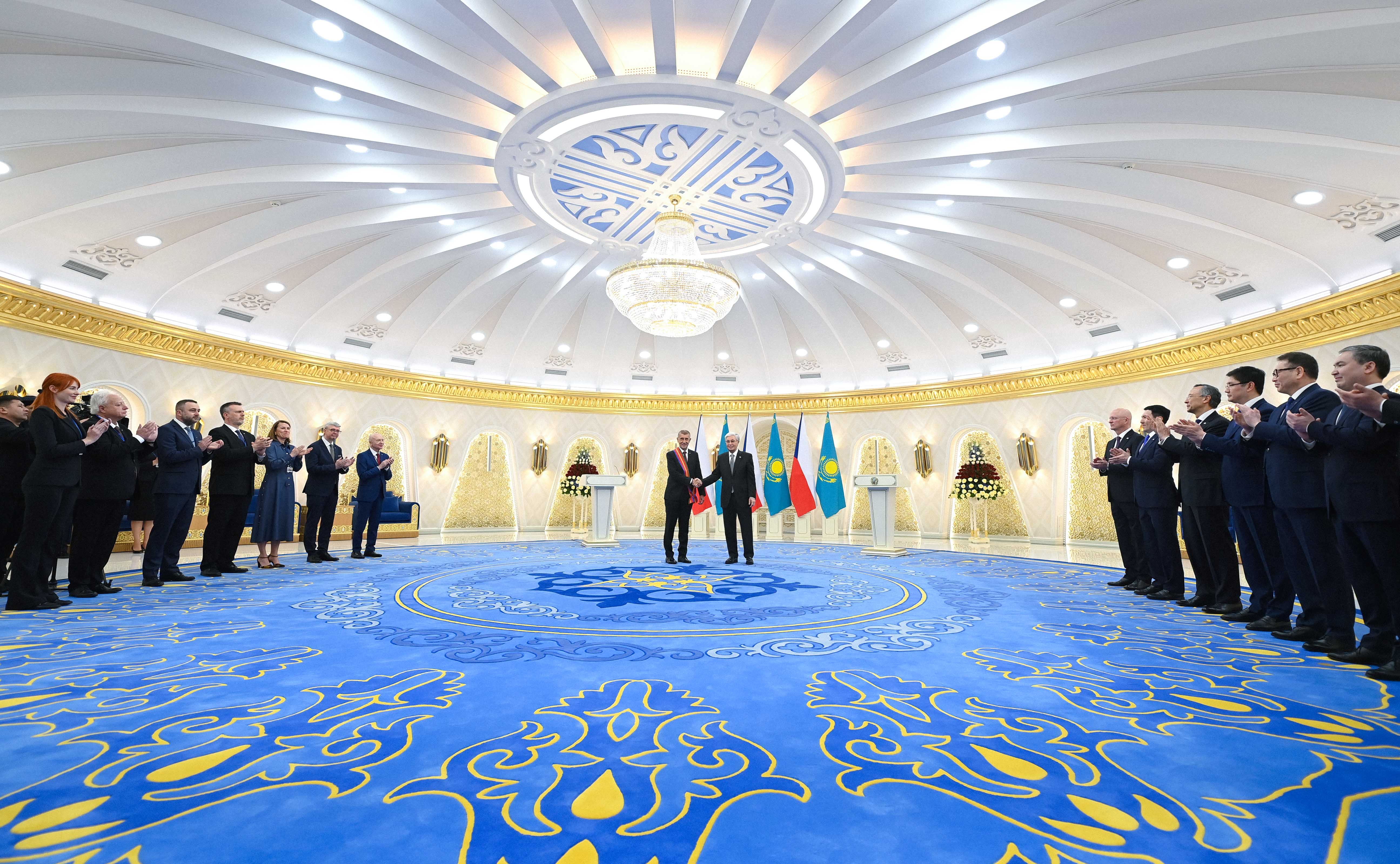 Қасым-Жомарт Тоқаев Андрей Бабишке бұл мемлекеттік награда Чехия мен Қазақстан арасындағы стратегиялық серіктестікті нығайтуға қосқан елеулі үлесі үшін табысталғанын айтты. – Сіз Қазақстанның сенімді досы әрі халықаралық деңгейдегі көрнекті мемлекет қайраткерісіз. Екіжақты қарым-қатынасты табысты дамытуға бағытталған сындарлы ұстанымыңызды жоғары бағалаймын. Сіз өзара ықпалдастықты ілгерілету жолында аянбай еңбек етіп келесіз, сол себепті байланыстарымыздың келешегіне сеніммен қараймыз. Елдеріміз арасындағы саяси, сауда-экономикалық және мәдени-гуманитарлық ынтымақтастықты дамытуға зор үлес қосқаныңыз үшін Сізге І дәрежелі «Достық» орденін табыстау туралы шешім қабылдадым. Бұл жоғары марапат қазақ-чех берік достығының жарқын символына айналады. Серіктестігіміз болашақта да жанданып, нығая беретініне сенімдімін, – деді Президент. Андрей Бабиш жоғары мемлекеттік наградамен марапаттағаны үшін Қасым-Жомарт Тоқаевқа ризашылығын білдірді. – Екі ел арасындағы ынтымақтастықтың нәтижелі дамып келе жатқанына шынайы қуаныштымын. Саяси диалогымыз ашық әрі сындары сипатқа ие. Халықаралық аренадағы ықпалдастығымыз тұрақтылыққа, бейбітшілік пен серіктестікке бейіл екенімізді көрсетеді. Чех Республикасы Қазақстанның әлемдік аренадағы сенімді әріптесі екенін мақтан тұтады. Президент мырза, осы жоғары марапатқа лайық көргеніңіз және халықаралық серіктестік пен диалогты нығайтуға зор үлес қосқаныңыз үшін алғыс айтамын. Алдағы уақытта да халықтарымыз арасындағы достықты тереңдету, әлемде тұрақтылық орнату жолында қызмет ете береміз деп сенемін, – деді Чехия Премьер-министрі.