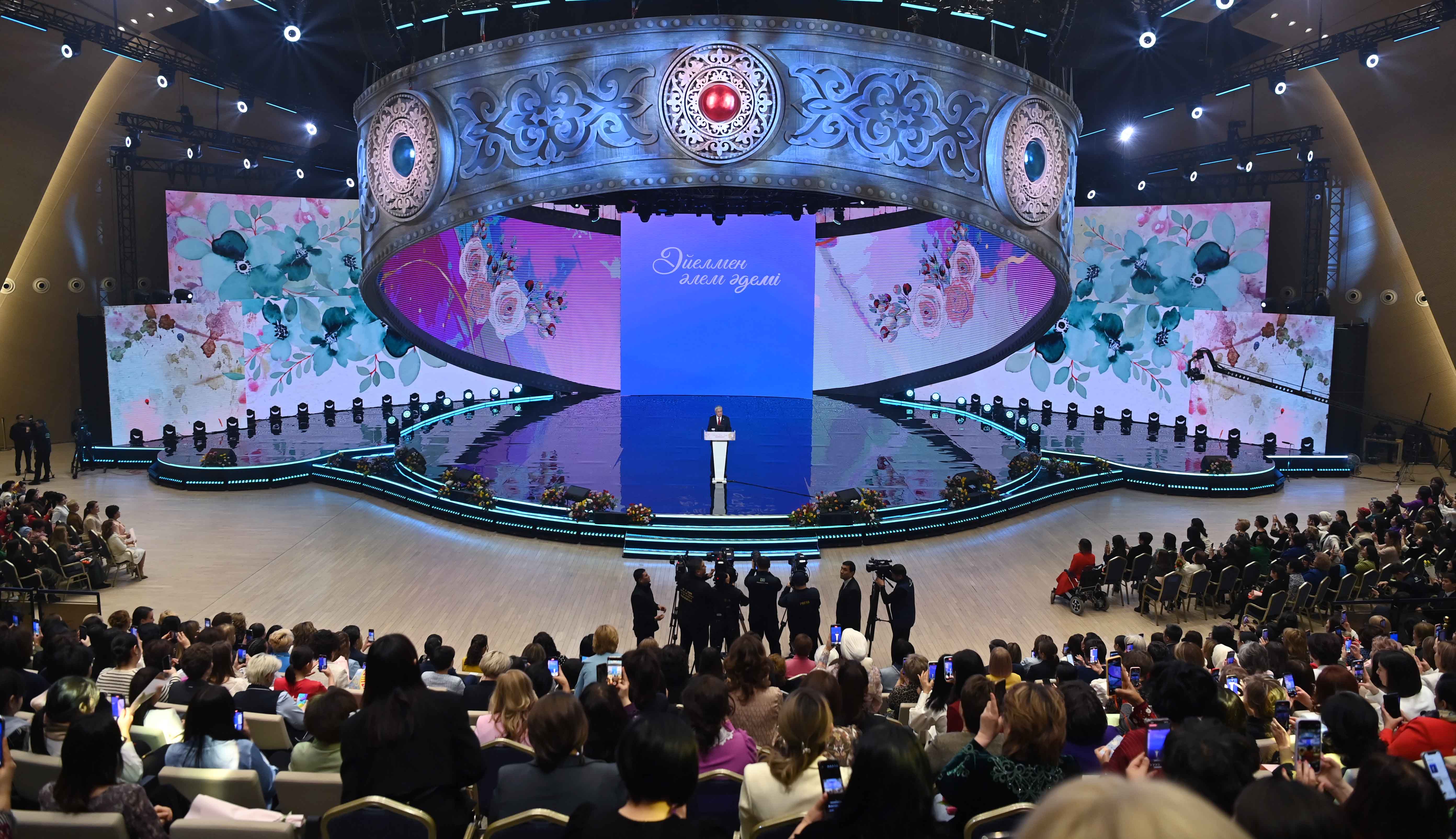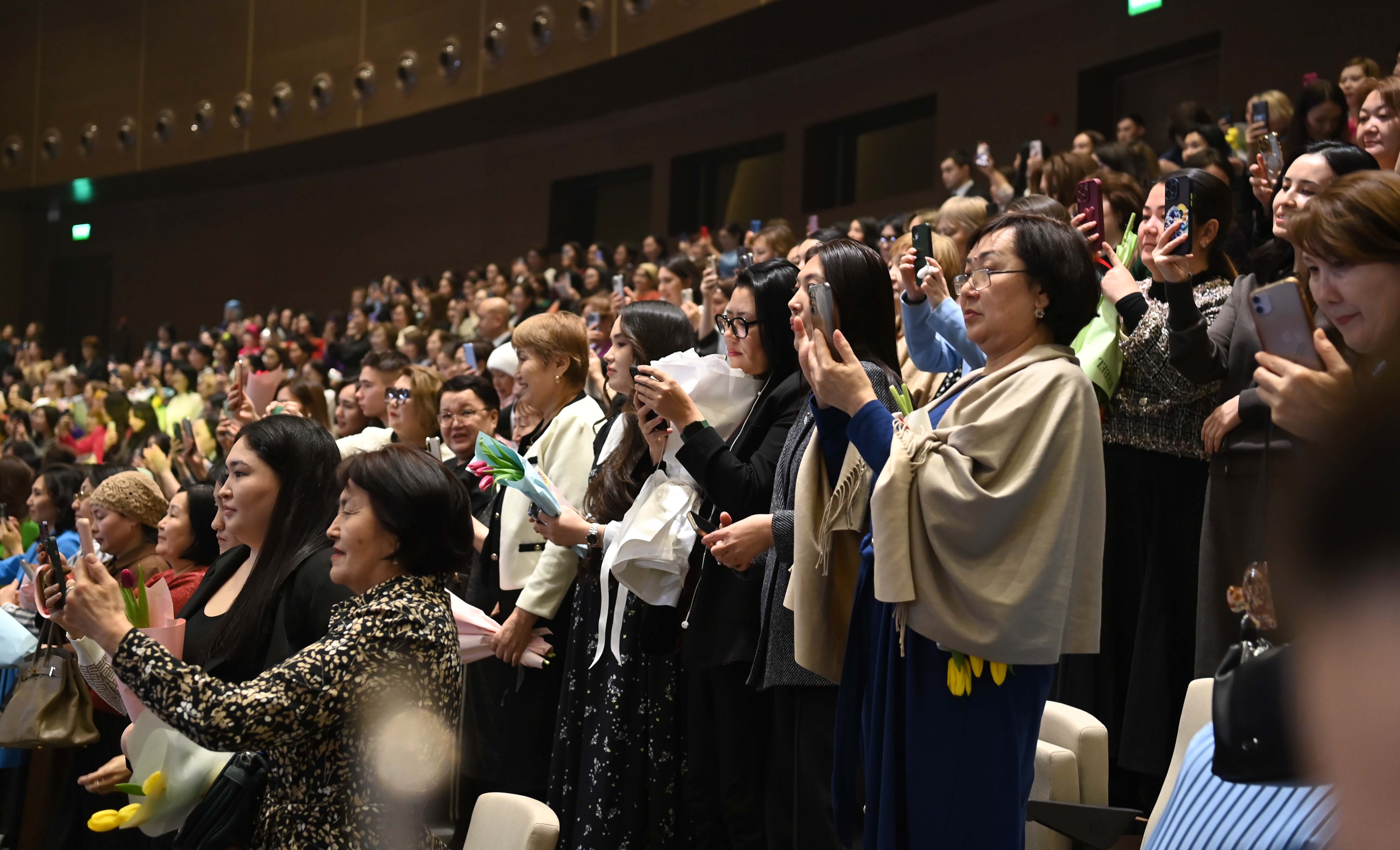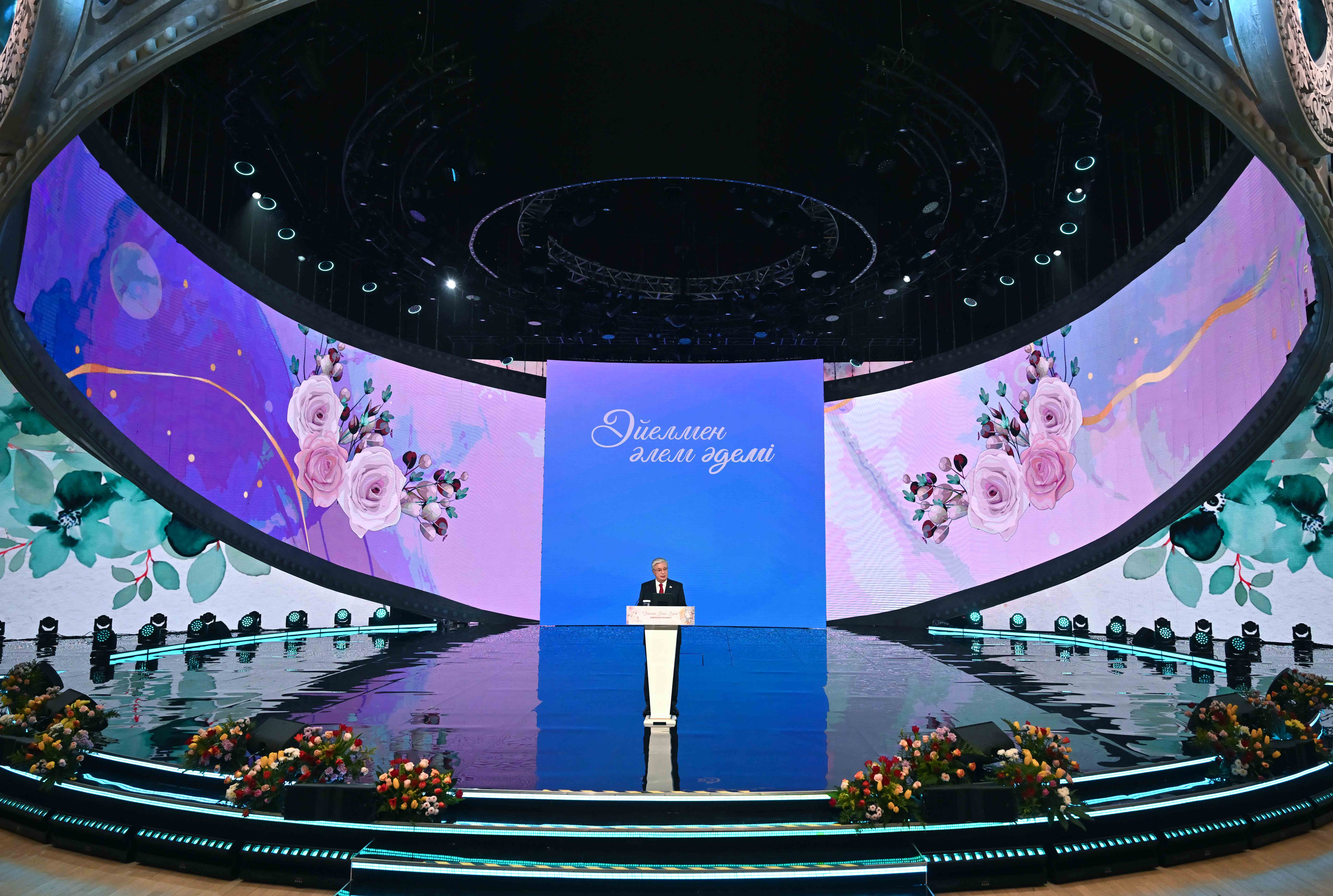 Президент салтанатты жиынға қатысқан әйелдер қауымын мерекемен құттықтап, сөз сөйледі.