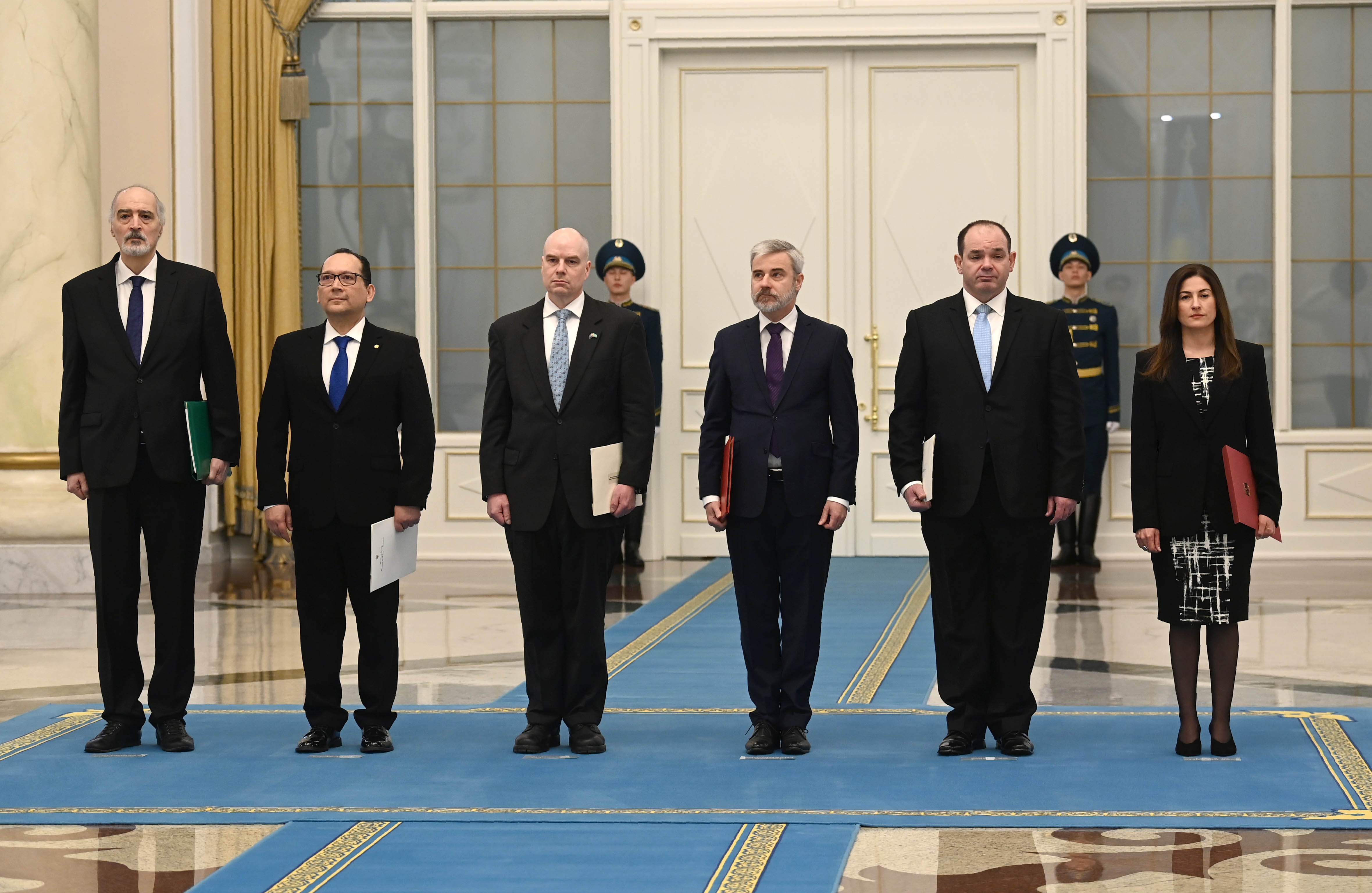 Сенім грамоталарын Мысыр Араб Республикасының елшісі Ибтиссам Ракха Ахмед Хасан, Сербия Республикасының елшісі Владимир Йовичич, Люксембург Ұлы Герцогтігінің елшісі Томас Райзен, Австралия елшісі Джон Уильям Гиринг, Колумбия Республикасының елшісі Эктор Исидро Аренас Нейра, Сирия Араб Республикасының елшісі Башар Джафари тапсырды.