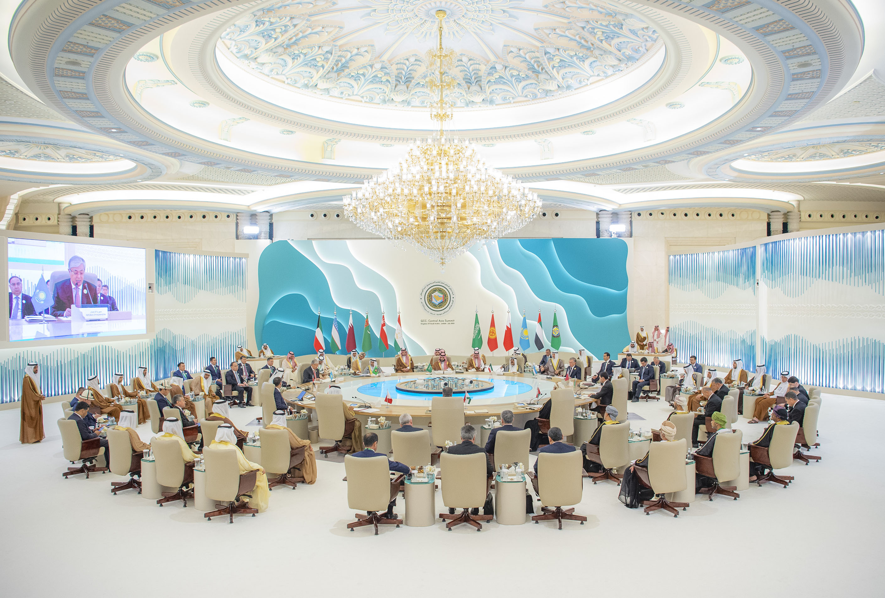 Сонымен қатар «Орталық Азия + Шығанақтағы араб мемлекеттерінің ынтымақтастық кеңесінің» бірінші саммитіне Сауд Арабиясының Тақ мұрагері, Премьер-министрі Мұхаммед бен Салман бен Әбделазиз Әл Сауд, Бахрейн Королінің гуманитарлық жұмыс және жастар ісі жөніндегі өкілі, Ханзада шейх Насер бен Хамад Әл Халифа, Қатар Әмірі шейх Тәмим бен Хамад Әл Тәни, Кувейттің Тақ мұрагері шейх Мешаль әл-Ахмед әл-Джабер ас-Сабах, БАӘ Вице-президенті, Премьер-министрі, Дубай Әмірлігінің Билеушісі шейх Мұхаммед бен Рашид Әл Мактум, Оман Сұлтанаты Премьер-министрінің орынбасары, Ханзада Асад бен Тариқ Әл Саид, Қырғызстан Президенті Садыр Жапаров, Тәжікстан Президенті Эмомали Рахмон, Түрікменстан Президенті Сердар Бердімұхамедов, Өзбекстан Президенті Шавкат Мирзиёев, Шығанақтағы араб мемлекеттері ынтымақтастық кеңесінің бас хатшысы Жассем Мұхаммед әл-Будауи қатысты.
