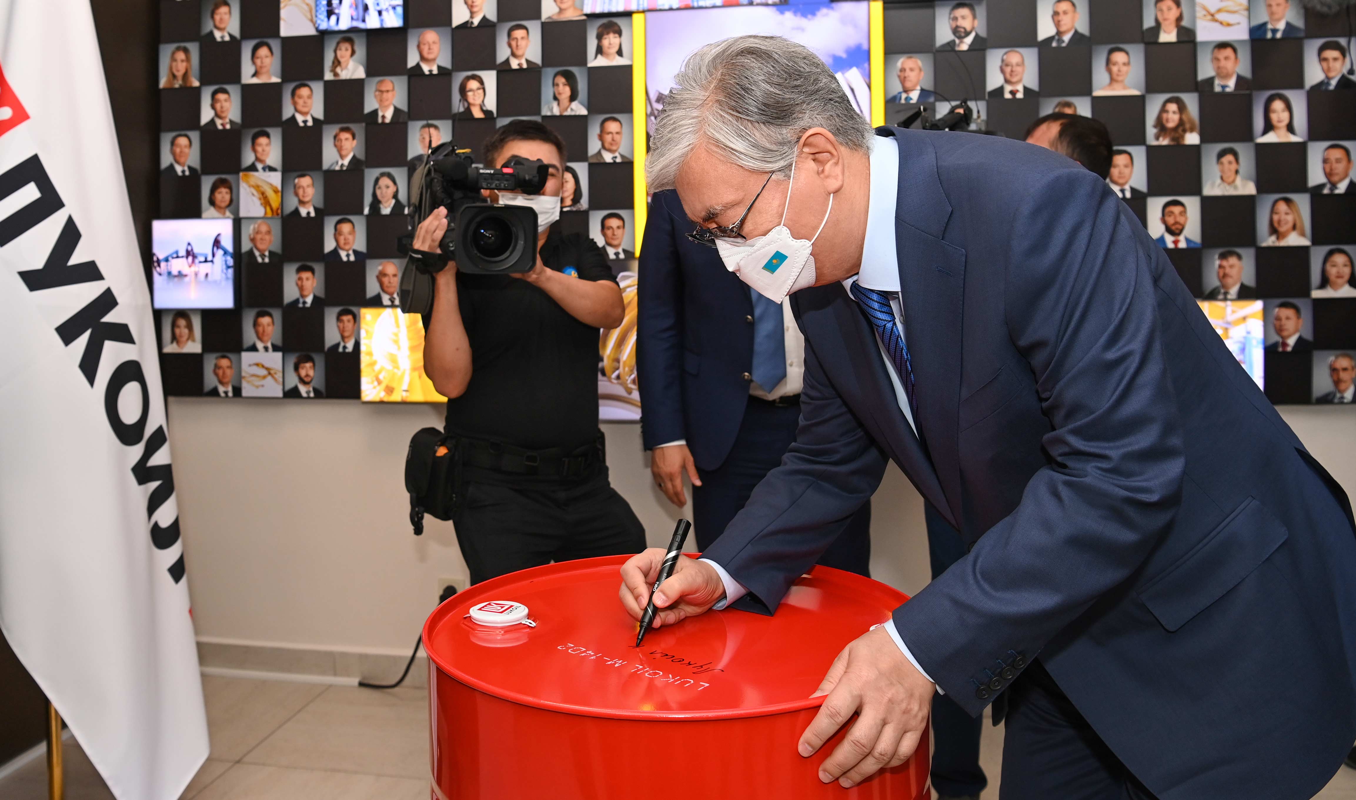 Қасым-Жомарт Тоқаев Алматы облысына сапары барысында Іле ауданындағы «Лукойл Лубрикантс Орталық Азия» жауапкершілігі шектеулі серіктестігінің жағармай шығаратын зауытында болды.