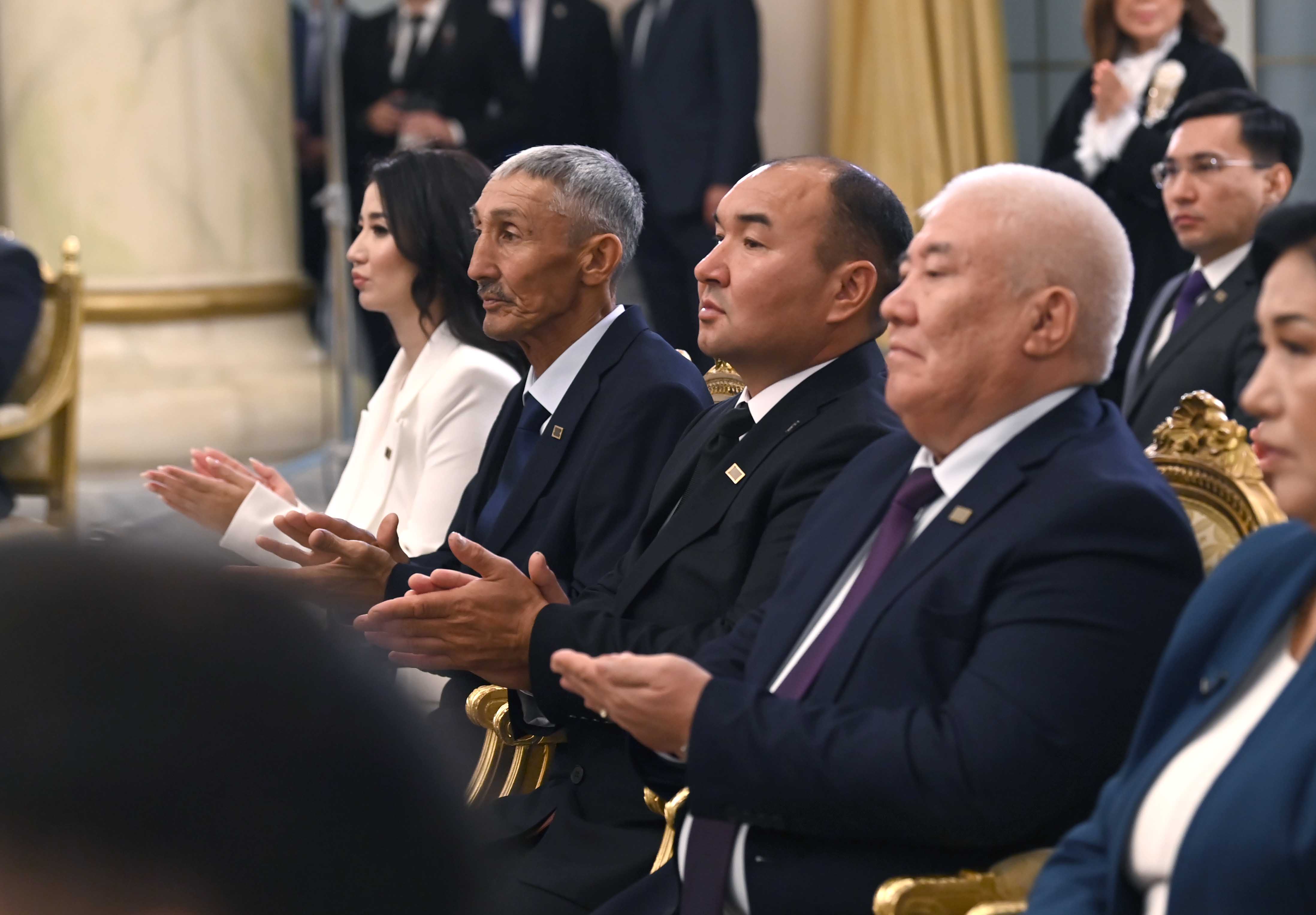 Президент сөзін қорытындылай келе, еліміздің дамуына елеулі үлес қосқан бір топ азаматқа жоғары мемлекеттік наградалар, сыйлықтар мен атақтар табыс етті.