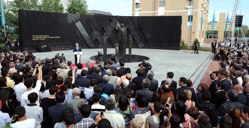 - Ещё девять лет назад, во время проведения первого Съезда лидеров мировых и традиционных религий, Казахстан был назван землёй мира и согласия. Одной из основ этого согласия является наше единодушие в восприятии вечных ценностей добра, мира и справедливости. Так же единодушно мы отвергаем зло, насилие и жестокость в нашем прошлом. Сегодня, в День памяти жертв политических репрессий и голода, мы вспоминаем две трагические даты. В этом году исполняется 80 лет с момента начала массового голода на нашей земле и 75 лет с начала политических репрессий. Голод прошел не только в Казахстане, но и России, Украине, Беларуси. Всего погибло 7 миллионов человек. Из них 1,5 миллиона пришлось на Казахстан. Мы собрались, чтобы увековечить народную память и открыть монумент «Ашаршылық құрбандарына ескерткіш», - сказал Нурсултан Назарбаев.