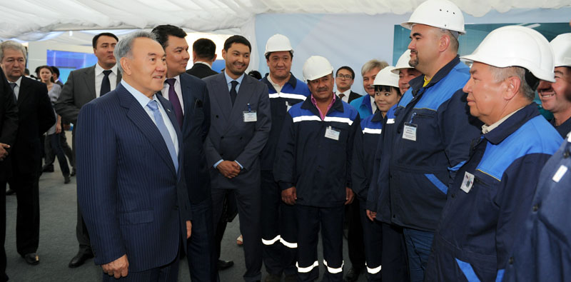 Здесь же на металлургическом заводе Нурсултан Назарбаев в рамках специальной выставки ознакомился с деятельностью ТОО «Казфосфат» и ТОО «Еврохим удобрение». В ходе презентации новых индустриальных проектов были подписаны соглашения о стратегическом партнерстве между Министерством индустрии и новых технологий и компанией «Еврохим удобрение», а также между Национальной компанией «Казахстан темир жолы» и Южно-китайской вагоно-локомотивной корпорацией.