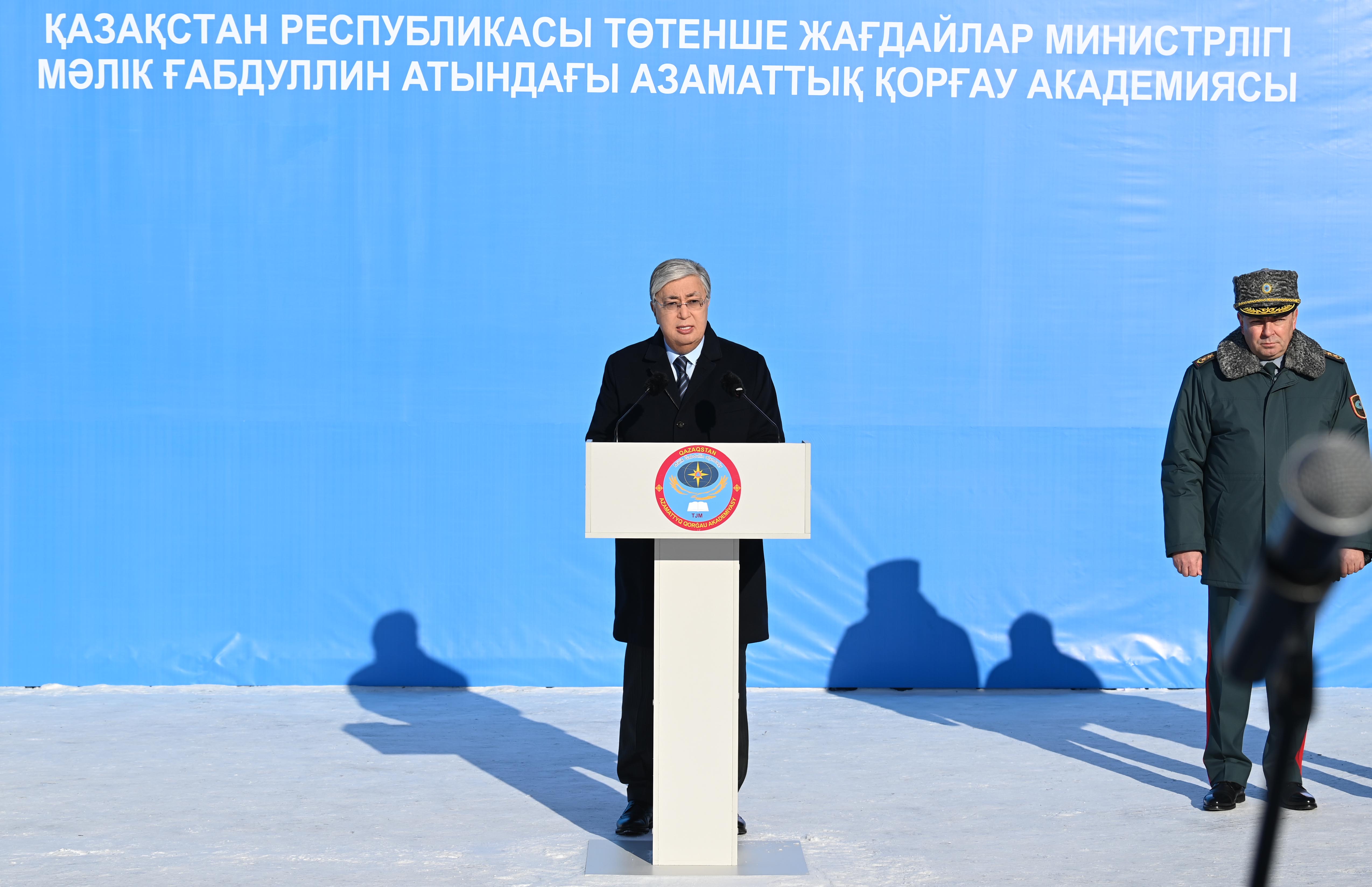 – Огромное доверие и высокая ответственность возлагаются, в первую очередь, на спасателей-профессионалов. Служба гражданской защиты – очень важная сфера. В последнее время в мире участились чрезвычайные происшествия. Население должно быть готово к действиям в случае таких происшествий. Поэтому труд работающих здесь специалистов приобретает особое значение. Академия – единственное в Казахстане учебное заведение, которое выпускает профессиональных спасателей. За четверть века здесь подготовлено 6 тысяч специалистов. Сегодня они с честью исполняют свой долг во всех регионах нашей страны. В народе не зря говорят: «Беда всегда приходит нежданно». Прошлой осенью несколько регионов серьезно пострадали вследствие масштабных пожаров. В этот критический момент первыми на помощь пострадавшим пришли именно спасатели, – сказал Касым-Жомарт Токаев.