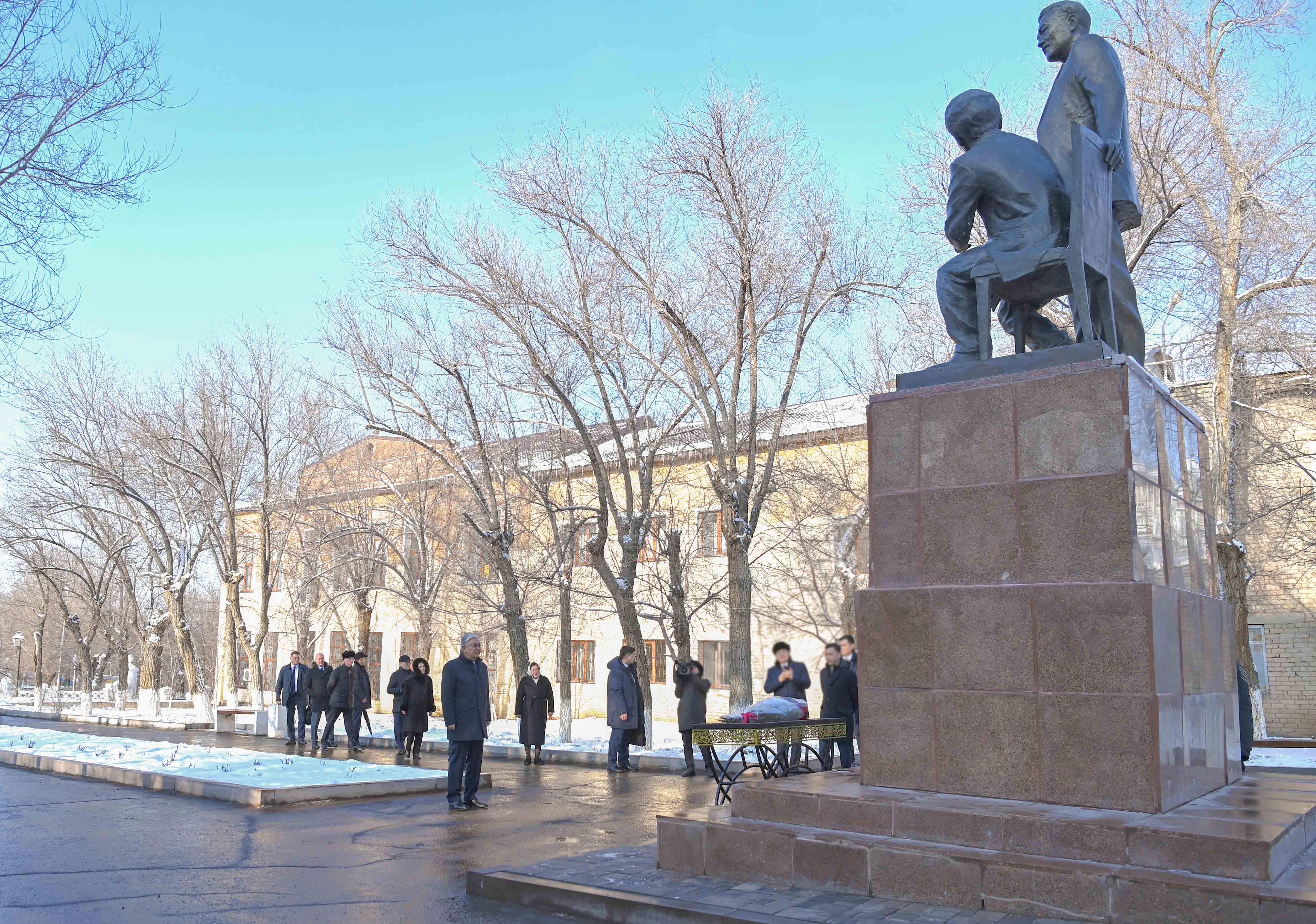 Глава государства, находящийся с рабочей поездкой в Актобе, возложил цветы к памятнику Тахауи Ахтанову и Куандыку Шангитбаеву.