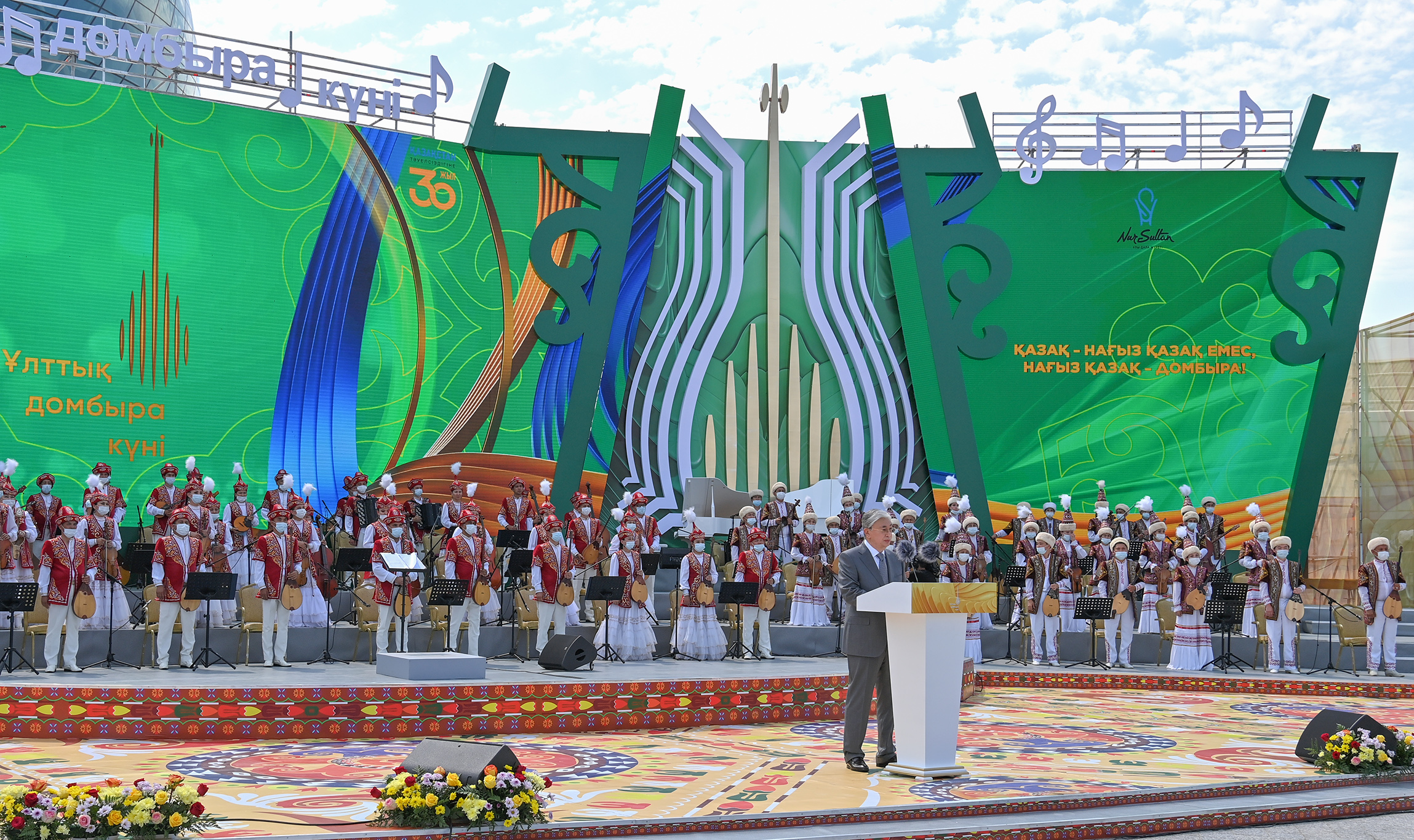 – Этот праздник прославляет самобытное искусство нашего народа, имеющее глубокие исторические корни. Казах и домбра – неразлучные понятия. Домбра – священный инструмент, о котором с древности слагаются легенды. Нет казаха, не знающего происхождения кюя «Ақсақ құлан» («Хромой кулан»). Священная домбра всегда передавалась из поколения в поколение. Казахи считают этот музыкальный инструмент талисманом, запечатлевшим летопись веков. Говоря современным языком, это наш национальный бренд, – сказал Президент.