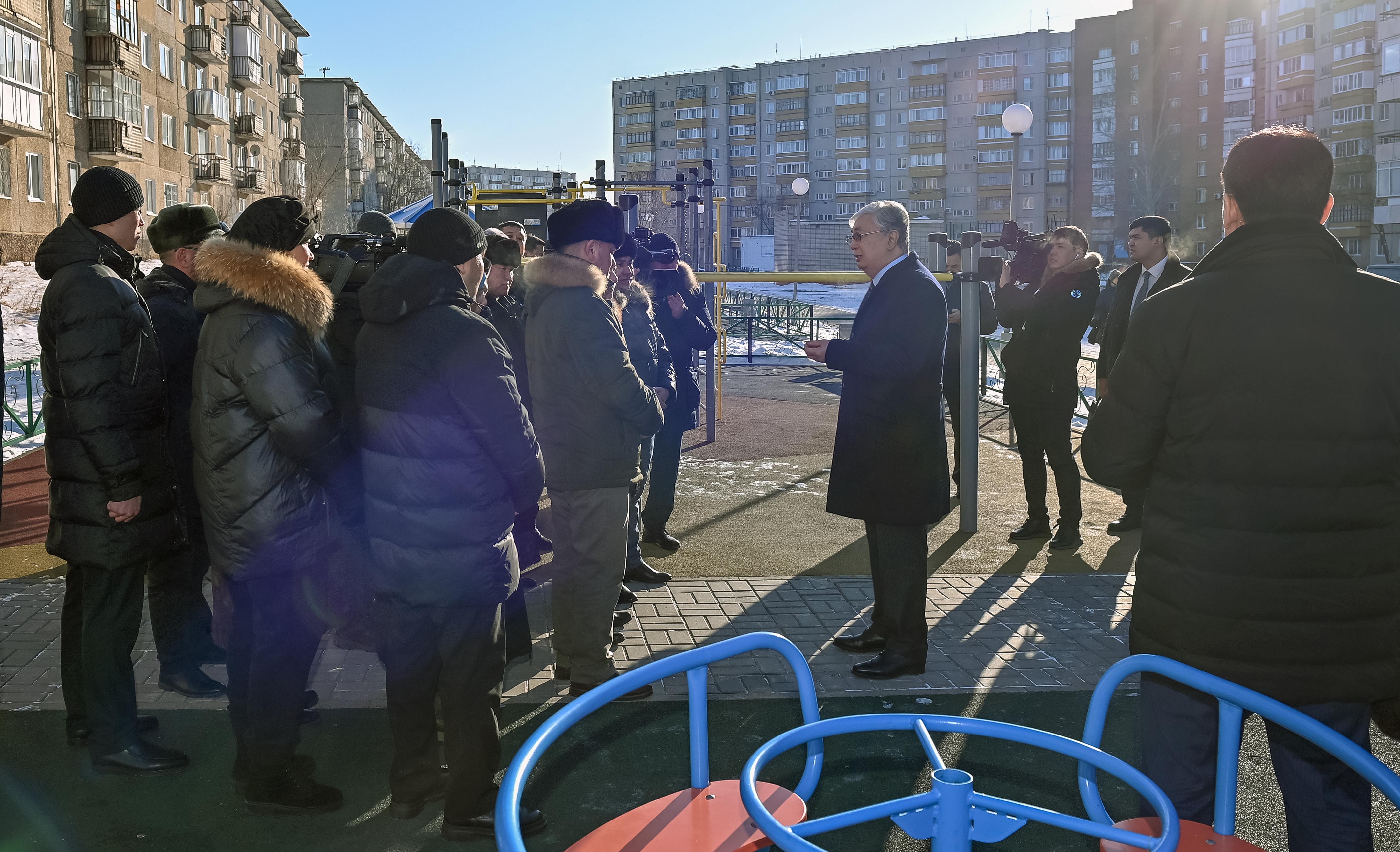 Касым-Жомарт Токаев ознакомился с условиями, созданными на придомовой территории, а также побеседовал с местными жителями. Во дворах города установлены детские и спортивные площадки, тренажеры, обустроены тротуары, асфальтированы дороги с увеличением количества парковочных мест.