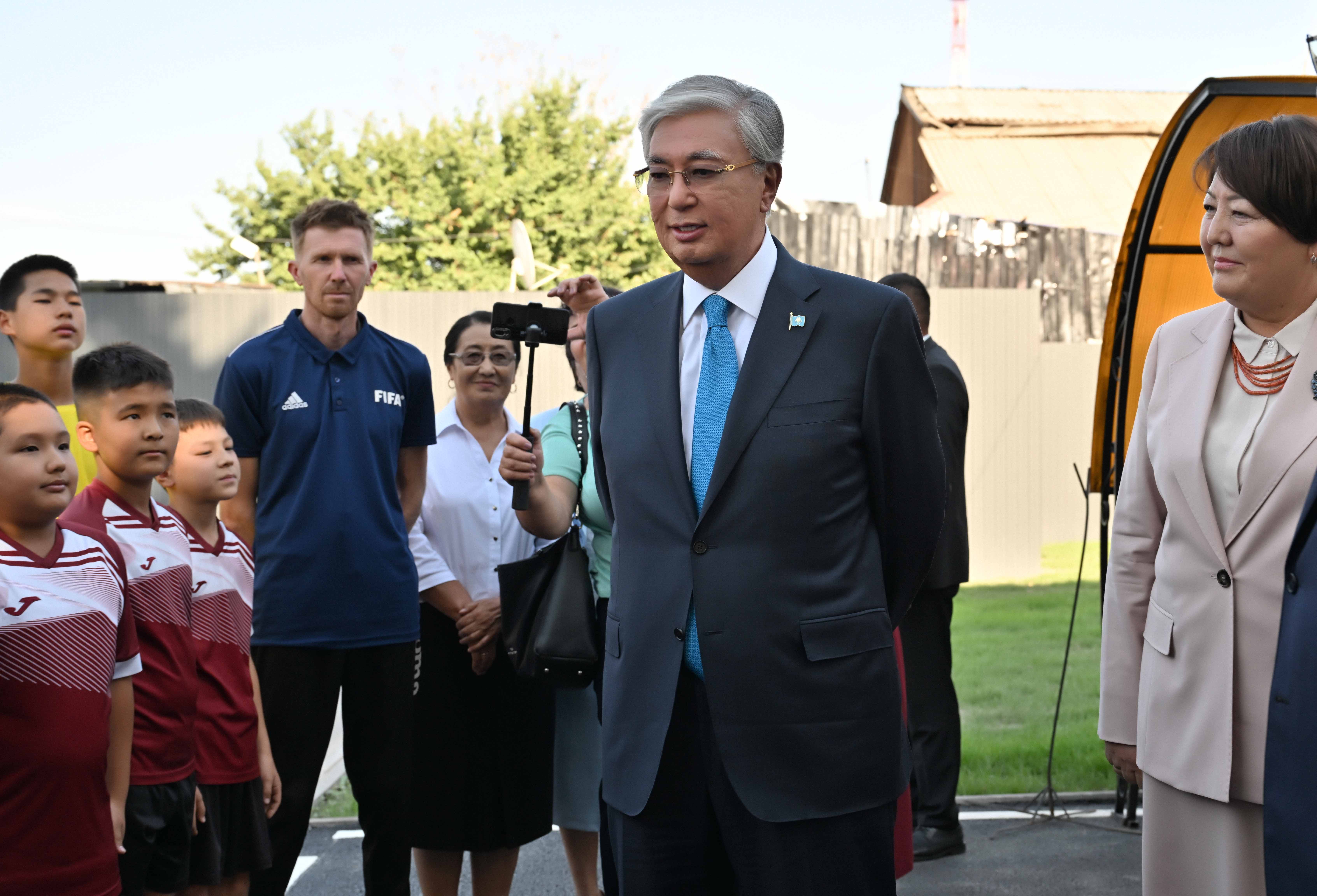В ходе посещения Глава государства побеседовал с педагогами и учащимися школы-гимназии.