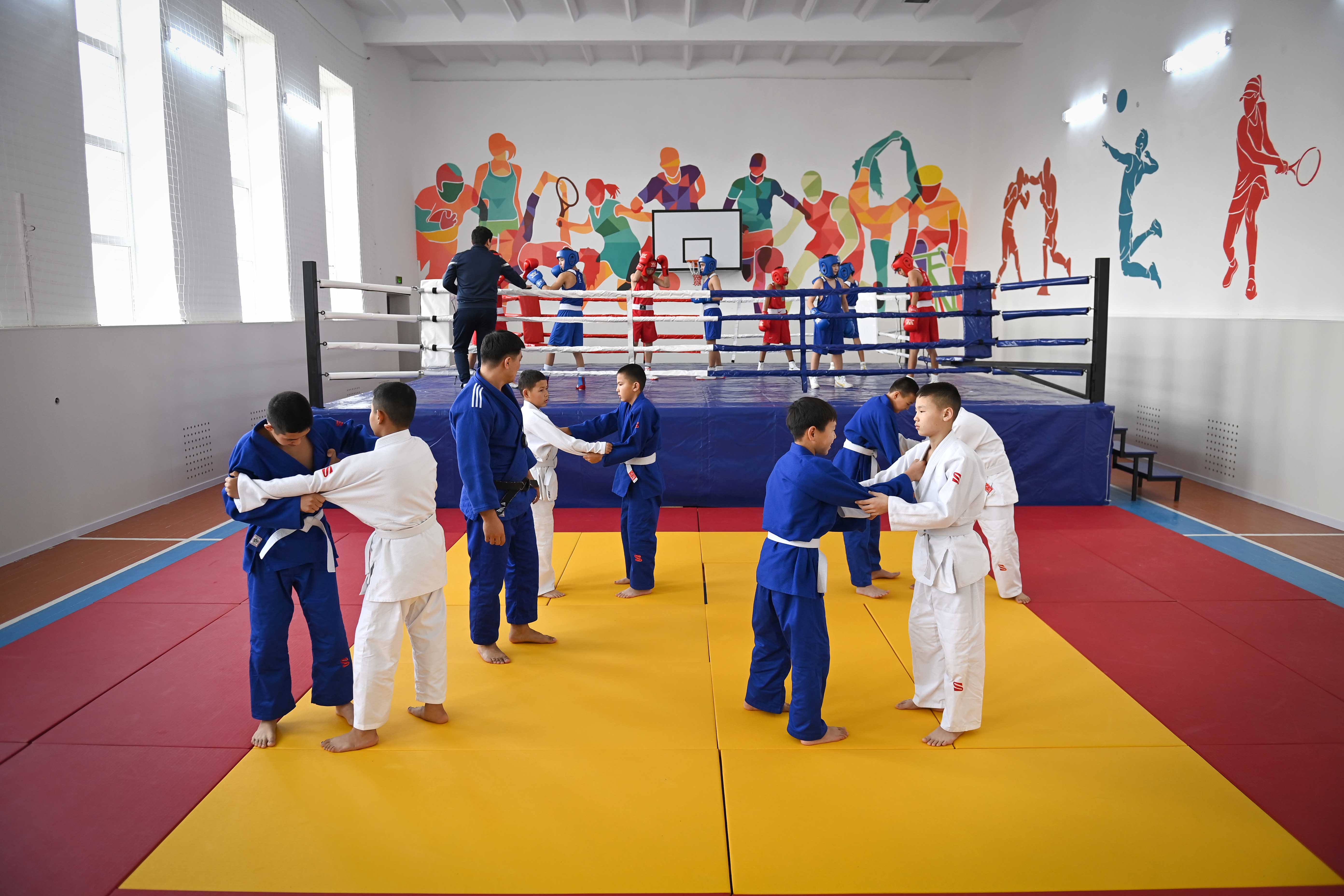 Глава государства осмотрел учебные кабинеты и спортивный зал.