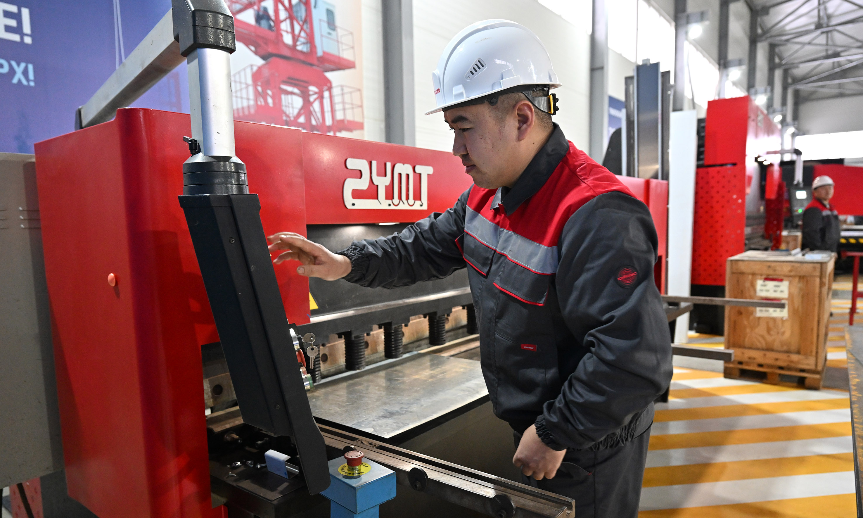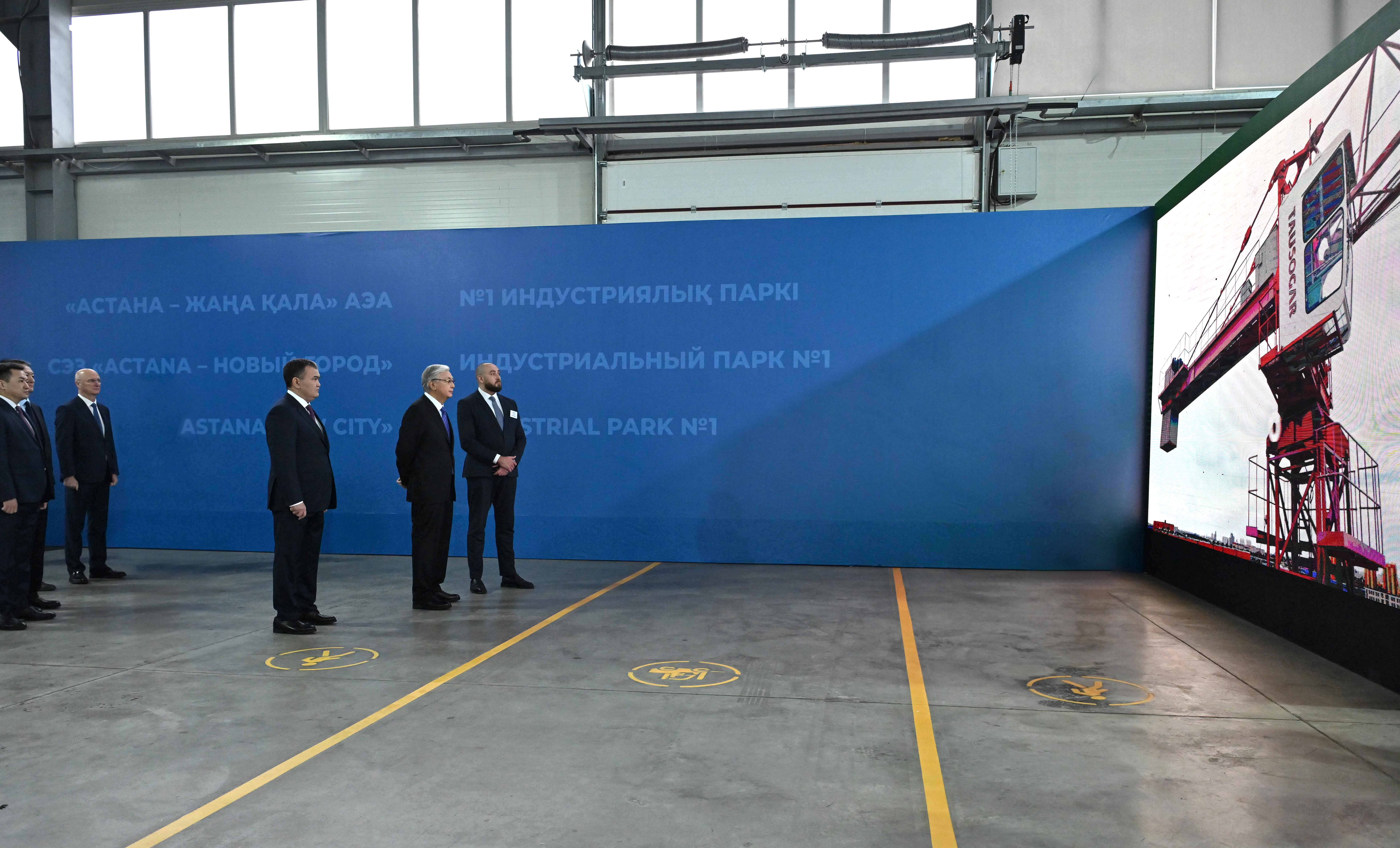 Президент был ознакомлен с процессом производства башенных кранов, лифтов и эскалаторов, востребованных крупнейшими строительными компаниями страны.