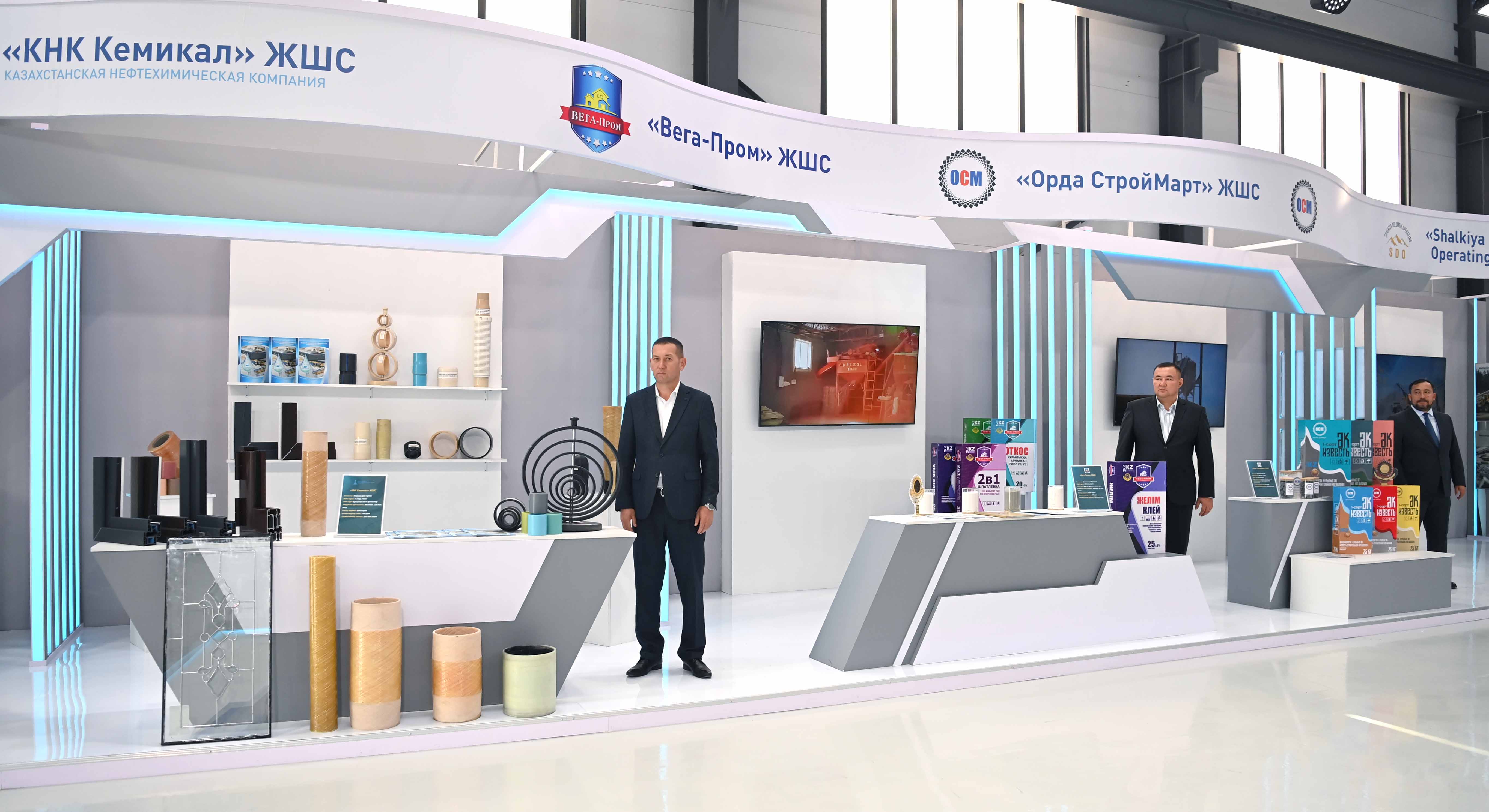 Главе государства также презентовали продукцию других предприятий строительной индустрии Кызылординской области, в частности, листовое стекло (ТОО «OrdaGlass»), ПВХ-трубы и фитинги (ТОО «КНК Кемикал»), каски (ТОО «NP-Consalting»), плиточные клеи и декоративную штукатурку (ТОО «Вега-Пром»), дорожные и тротуарные бордюры, песчано-керамзитовые блоки (ИП «Садуакасов Ж.А»), различные фракции щебня (ТОО «Shalkiya Dolomite Operating»), окна и зеркала (ТОО «Комфорт KZ»), известь (ТОО «Орда строй маркет»), кирпичную продукцию (ТОО «Мелиоратор»). Кроме того, на выставке были представлены текстильные изделия компании «Dalatex», средства индивидуальной защиты производства ТОО «Өркен Әлем».