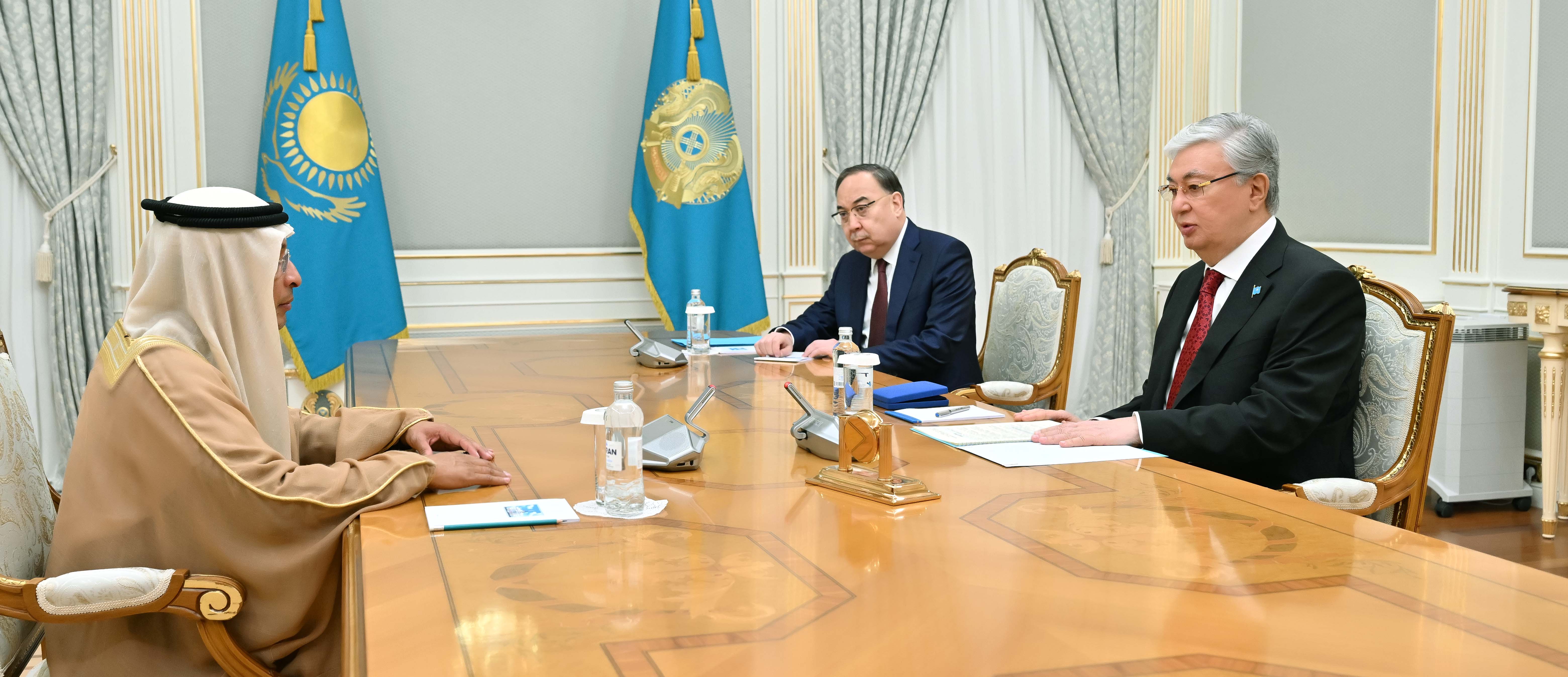 Касым-Жомарт Токаев с удовлетворением отметил высокую динамику сотрудничества с эмиратской компанией Masdar по развитию совместных проектов в сфере ВИЭ, а также начало реализации инвестиционных проектов с компаниями AD Ports Group и Terminals Holding по расширению транспортно-логистической сети и услуг авиаперевозок.