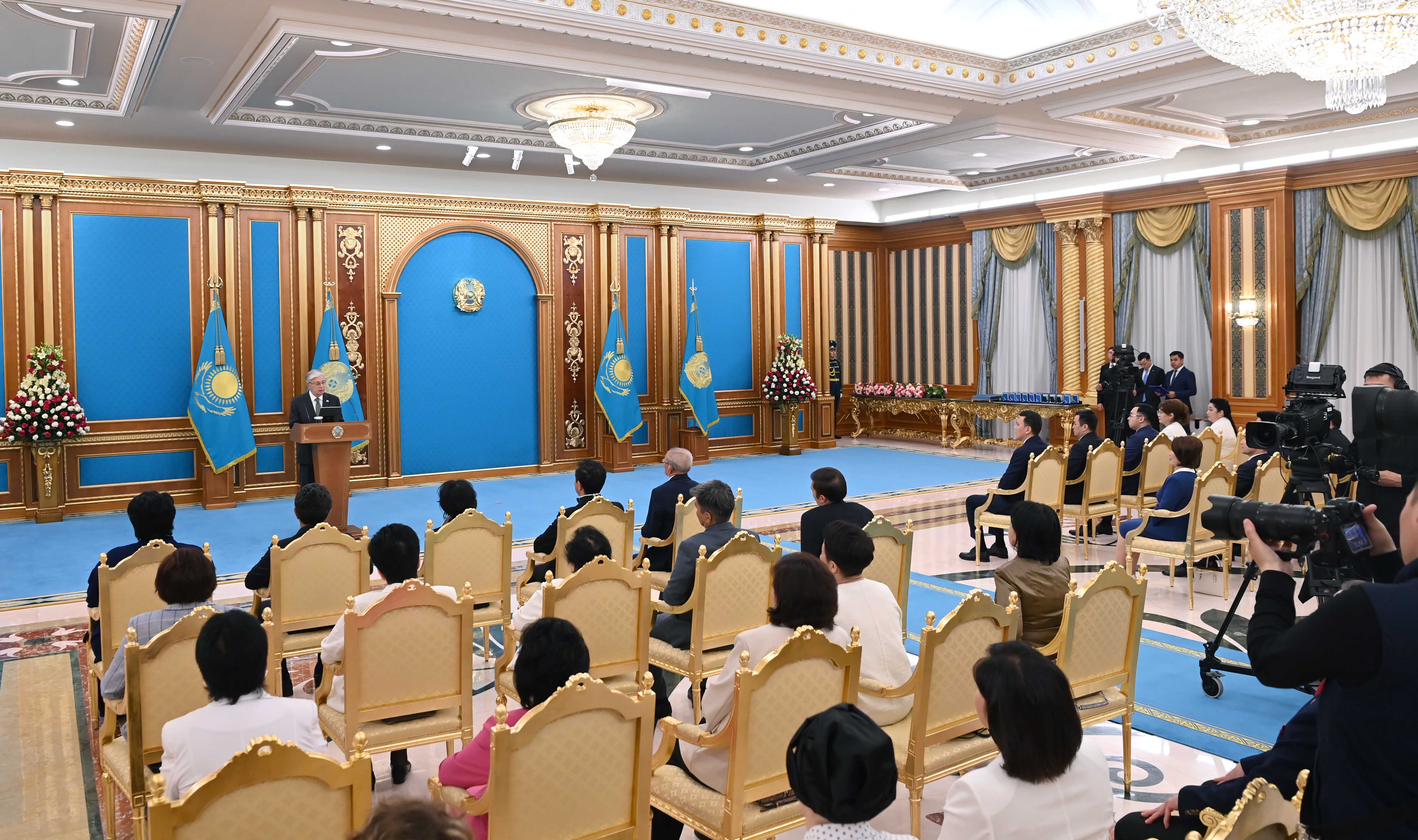 – Мы являемся свидетелями того, как вы своим упорным трудом подтверждаете верность культуре и искусстве. Самая ценная награда для человека искусства – это признание народа. Я принял решение наградить группу граждан, вносящих значительный вклад в развитие нашей культуры. В этом году свой юбилей отмечают 7 ведущих коллективов страны, занимающих особое место в сфере культуры. Поэтому сегодня я решил вручить высокие государственные награды работникам этих учреждений, – заявил Касым-Жомарт Токаев.