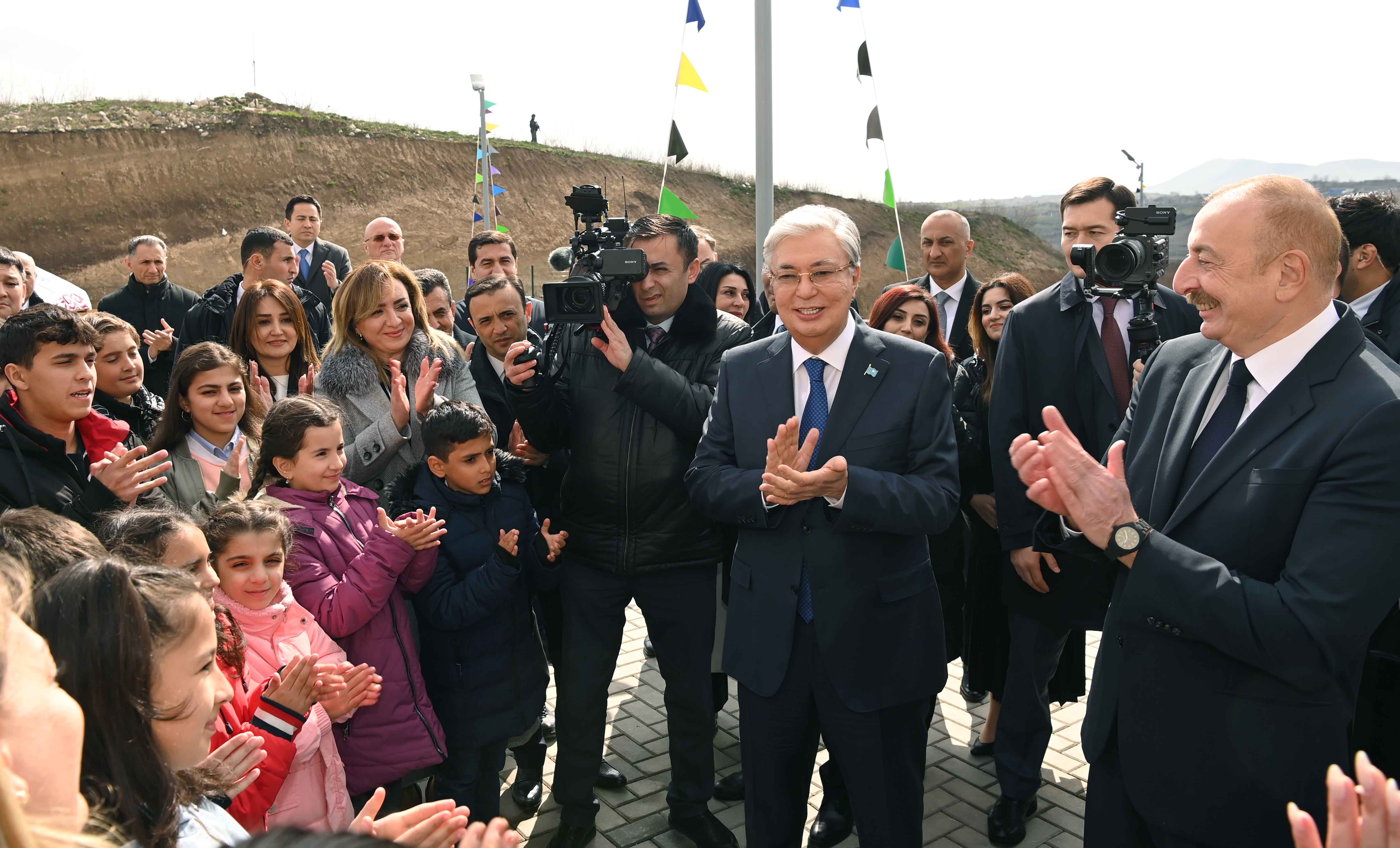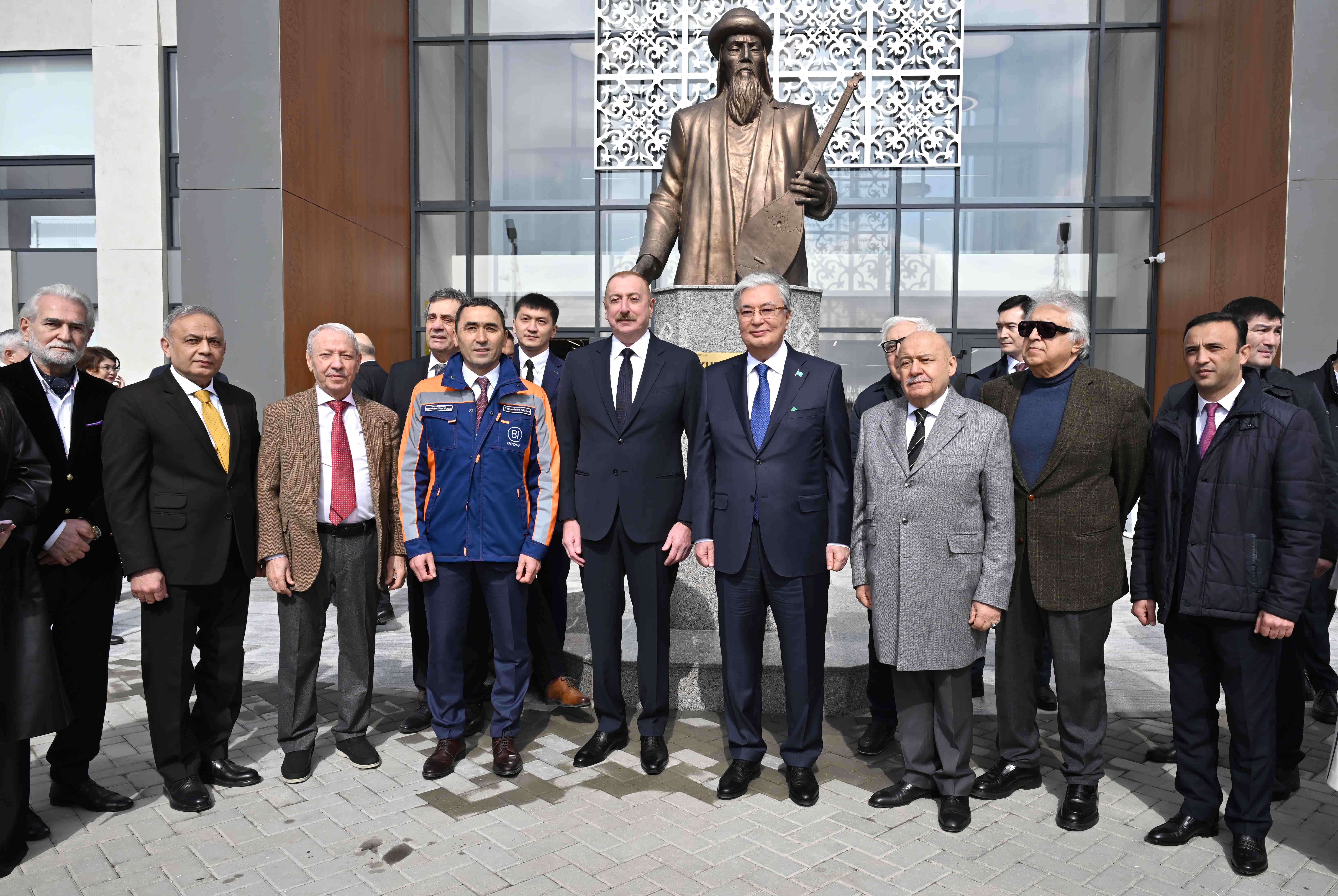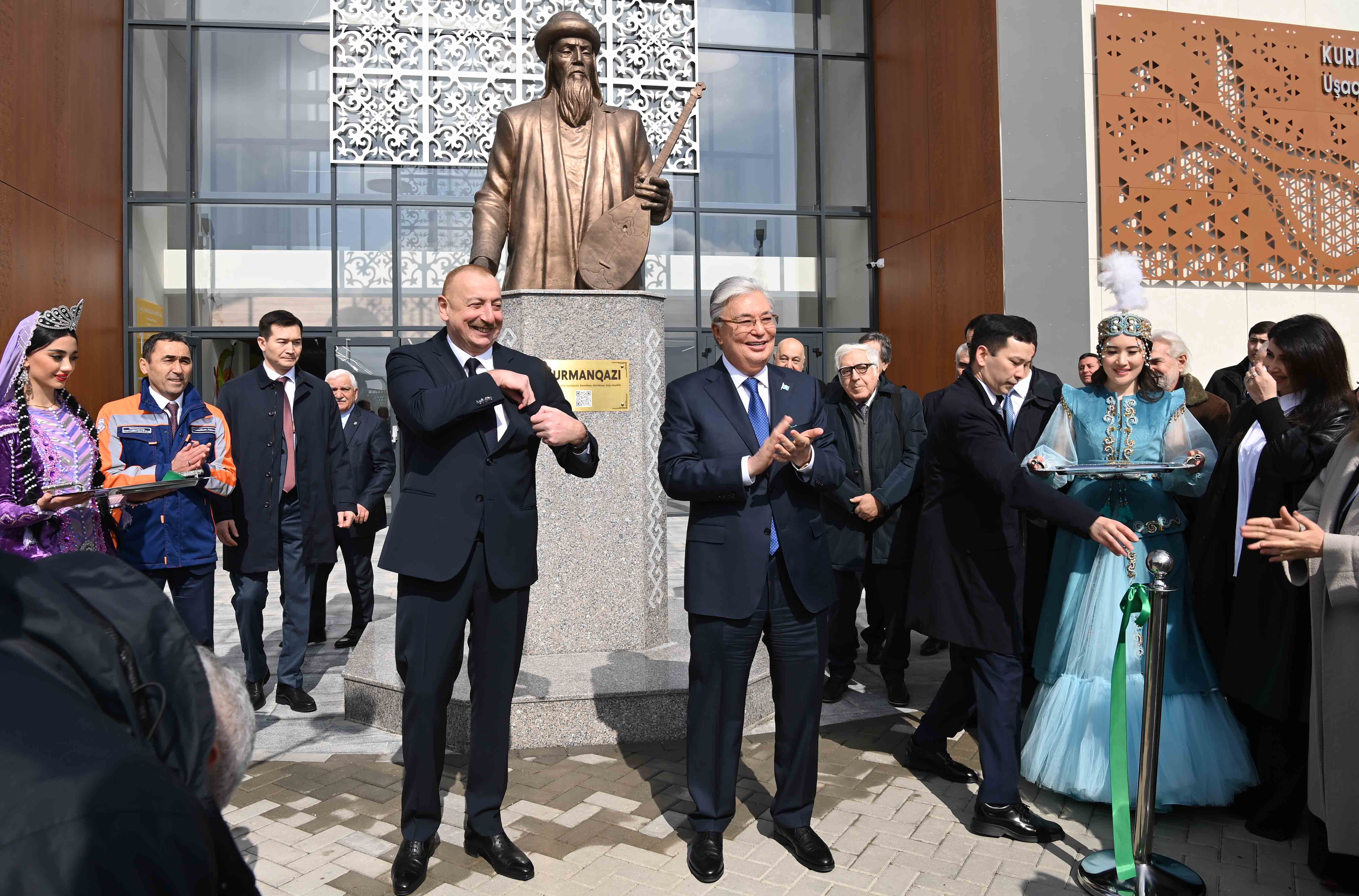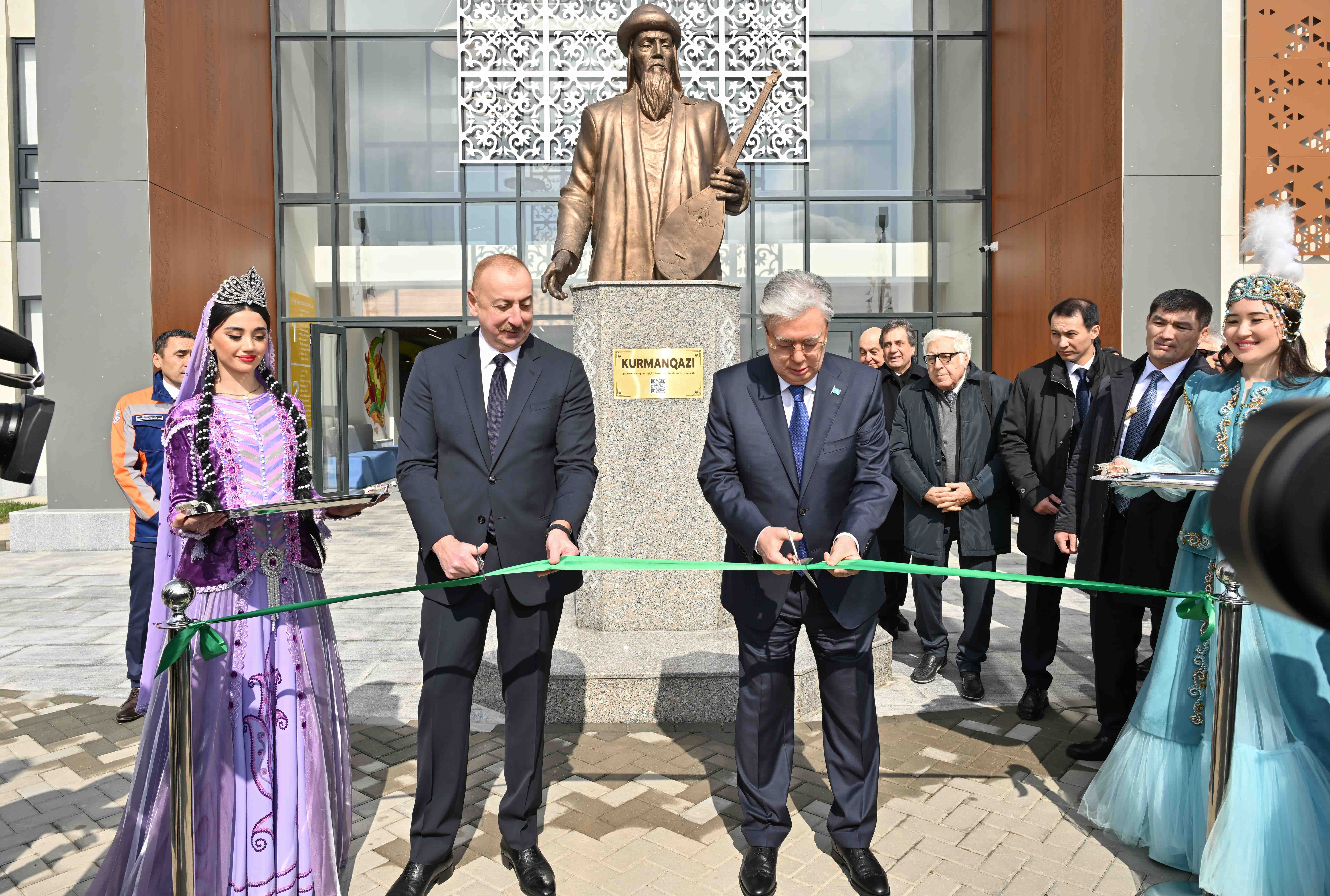 Президент Казахстана Касым-Жомарт Токаев и Президент Азербайджана Ильхам Алиев приняли участие в торжественной церемонии открытия Центра детского творчества имени казахского композитора Курмангазы.