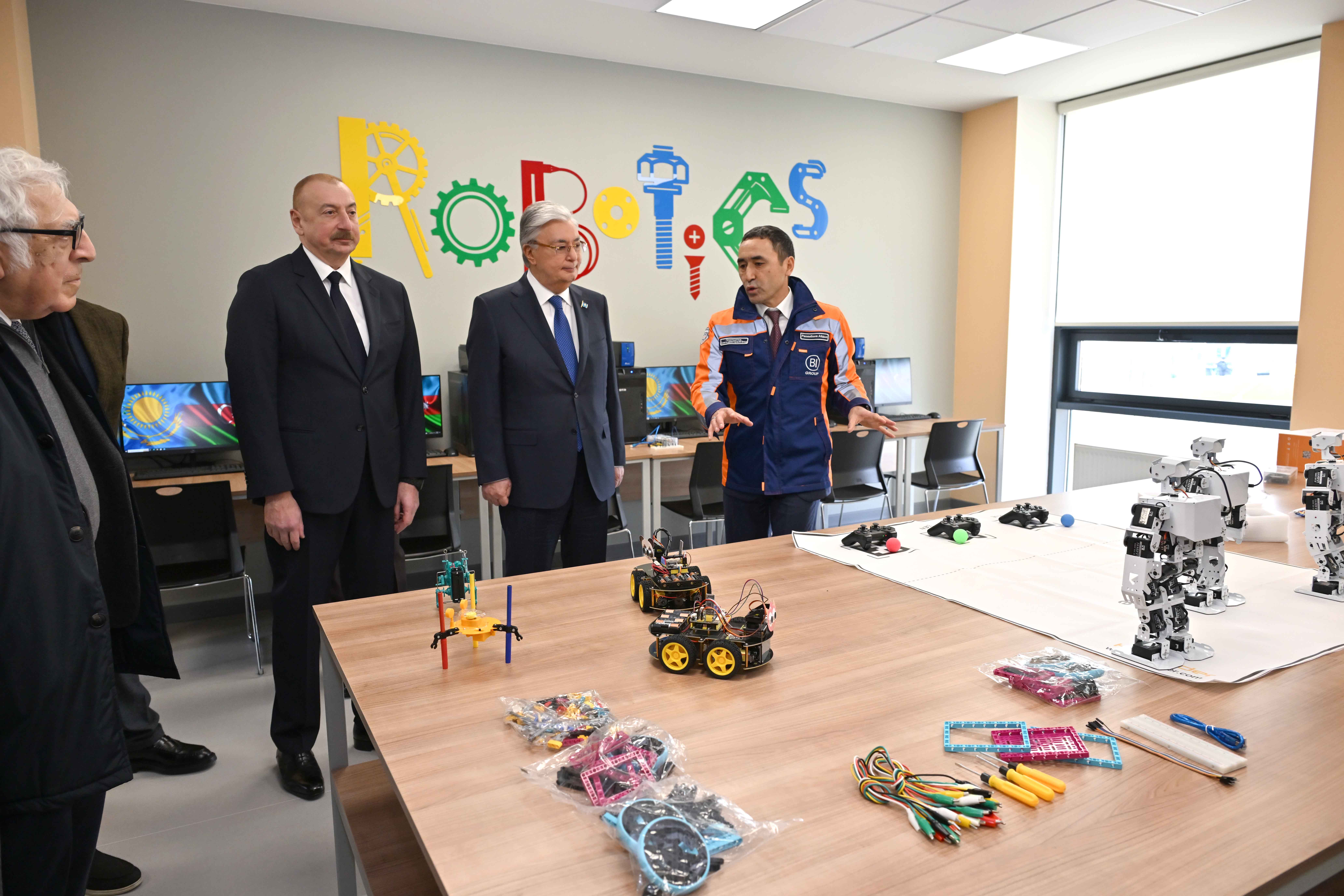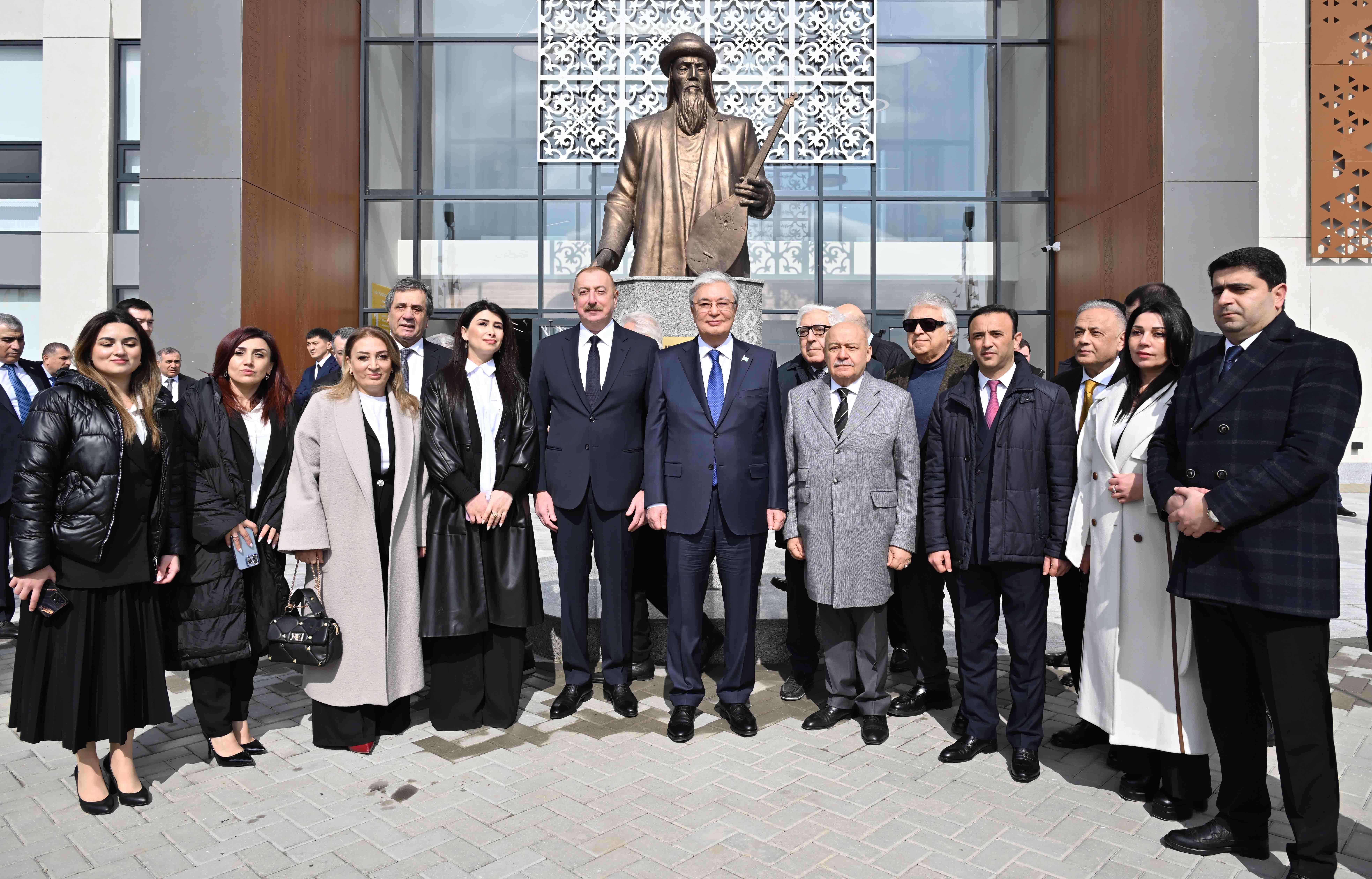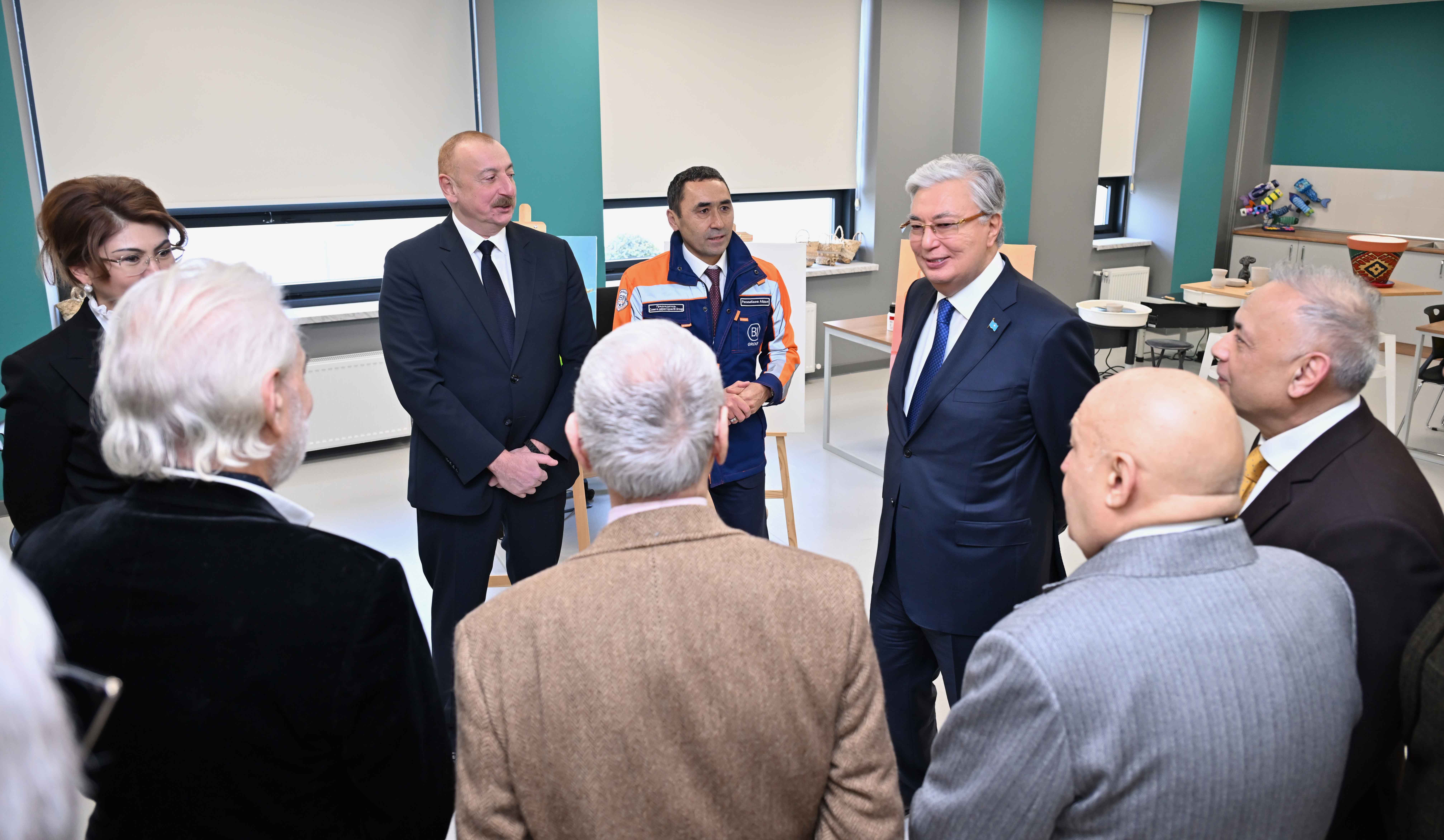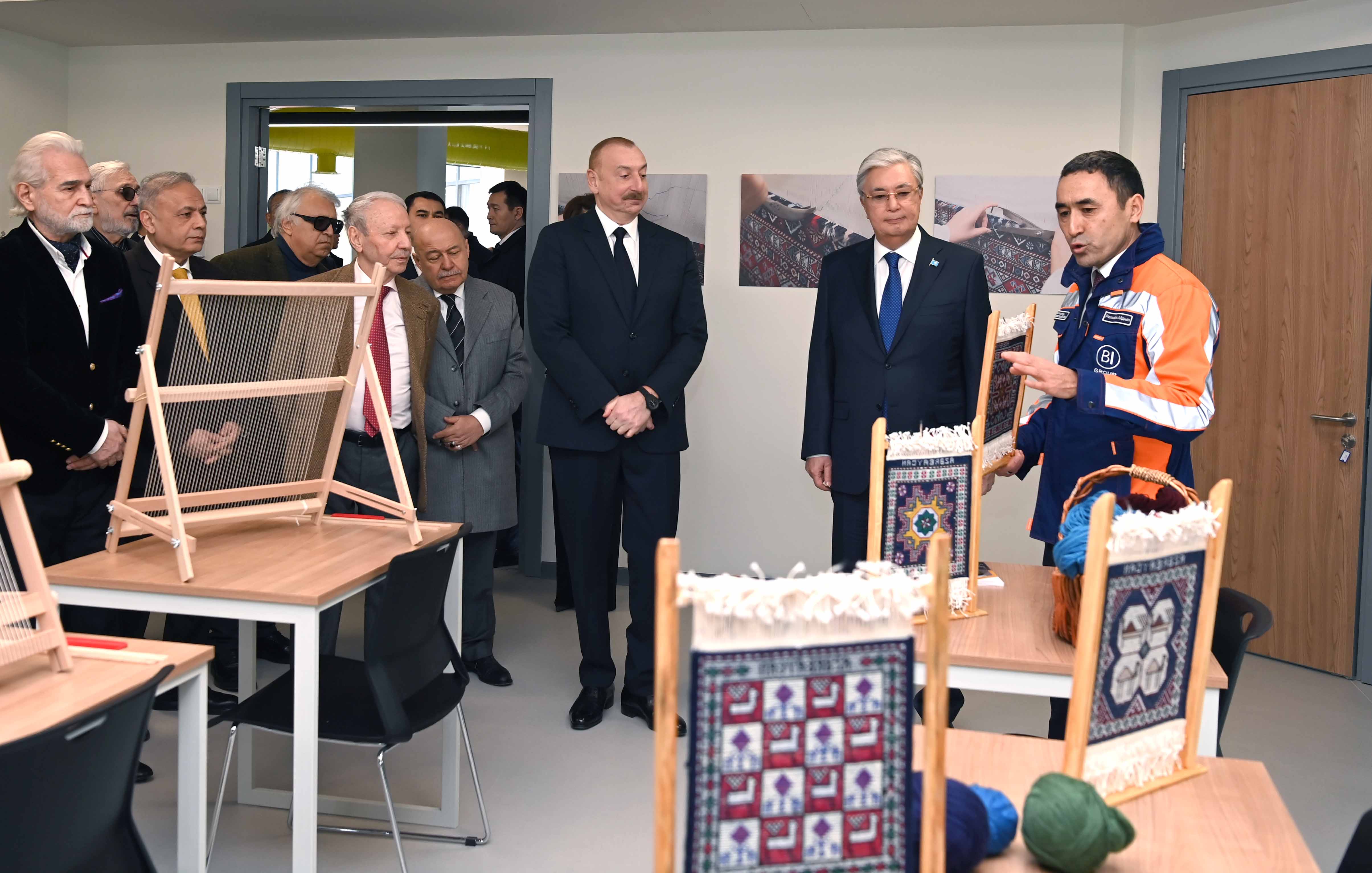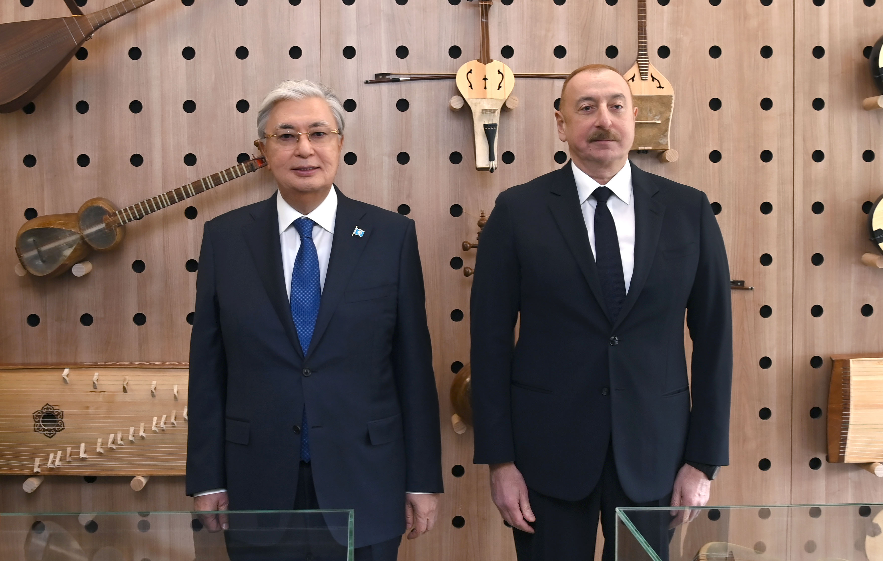 Президент Казахстана Касым-Жомарт Токаев и Президент Азербайджана Ильхам Алиев приняли участие в торжественной церемонии открытия Центра детского творчества имени казахского композитора Курмангазы.