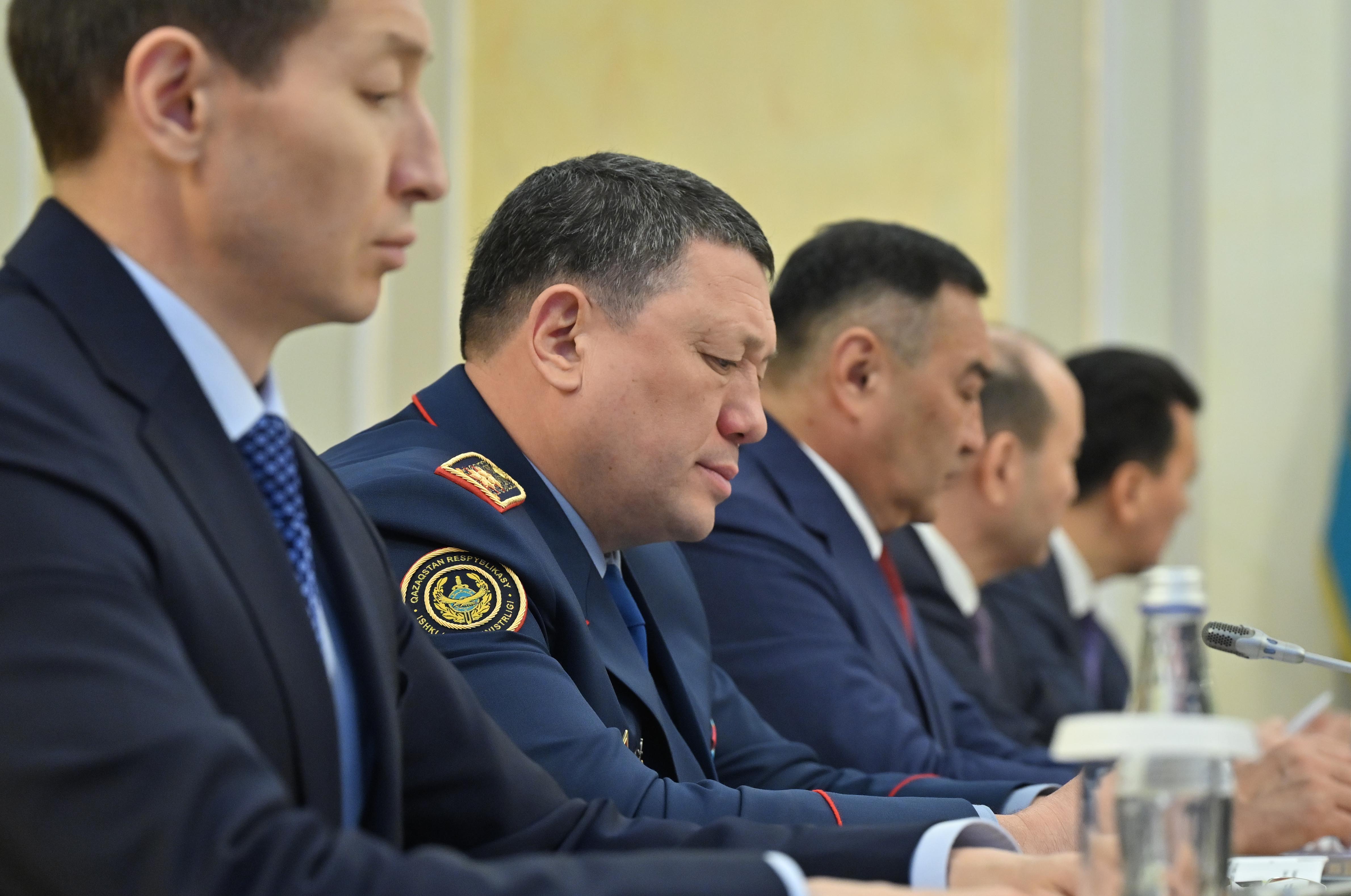 Заслушаны доклады министра внутренних дел Ержана Саденова, председателя Комитета национальной безопасности Ермека Сагимбаева, министра здравоохранения Акмарал Альназаровой, председателя Агентства по финансовому мониторингу Жаната Элиманова.