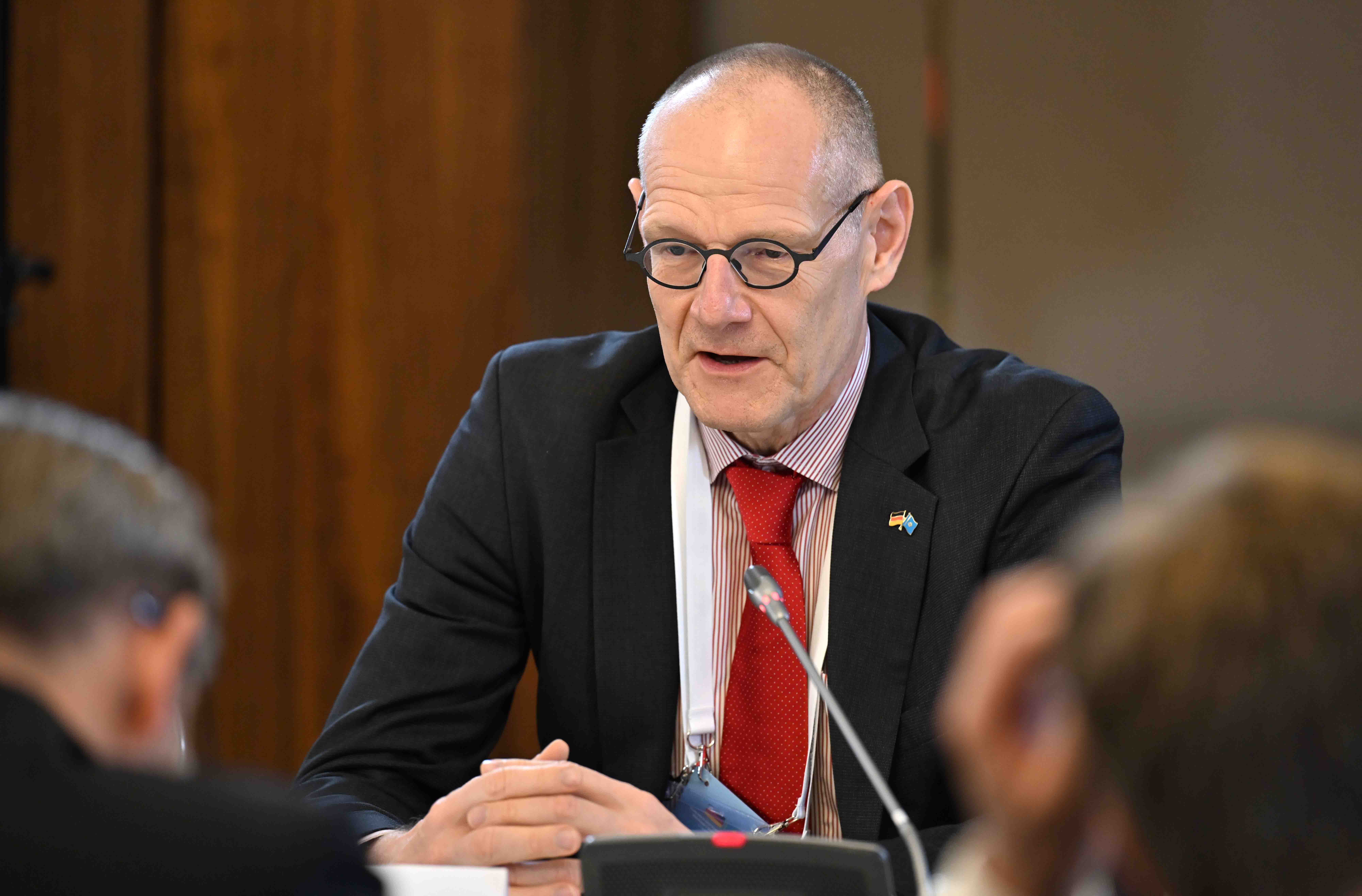 На мероприятии присутствовали председатель правления компании Siemens Energy AG, заместитель председателя Восточного комитета германской экономики Кристиан Брух, председатель правления CLAAS Group Ян-Хендрик Мор, председатель исполнительного совета компании DB E.C.O. Group, представитель Рабочей группы по Центральной Азии ВКГЭ Нико Варбанофф, президент SVEVIND Energy GmbH, почетный консул Казахстана в Саксонии Вольфганг Кропп, председатель правления компании Aurubis AG Торальф Хааг, председатель правления компании Siemens Healthineers AG Берндт Монтаг, председатель правления компании GP Günter Papenburg AG Гюнтер Папенбург, председатель правления компании HMS Bergbau AG Дэннис Швиндт, член правления по Международному финансированию KfW Bankengruppe Кристиане Лайбах, представитель управляющих партнеров компании KNAUF Gruppe Александр Кнауф, член правления Herrenknecht AG Мартин-Дэвид Херренкнехт, главный исполнительный директор компании Ernst Klett AG Филипп Хаусманн, генеральный директор компании Rhenus SE & Co. KG Тобиас Бартц.