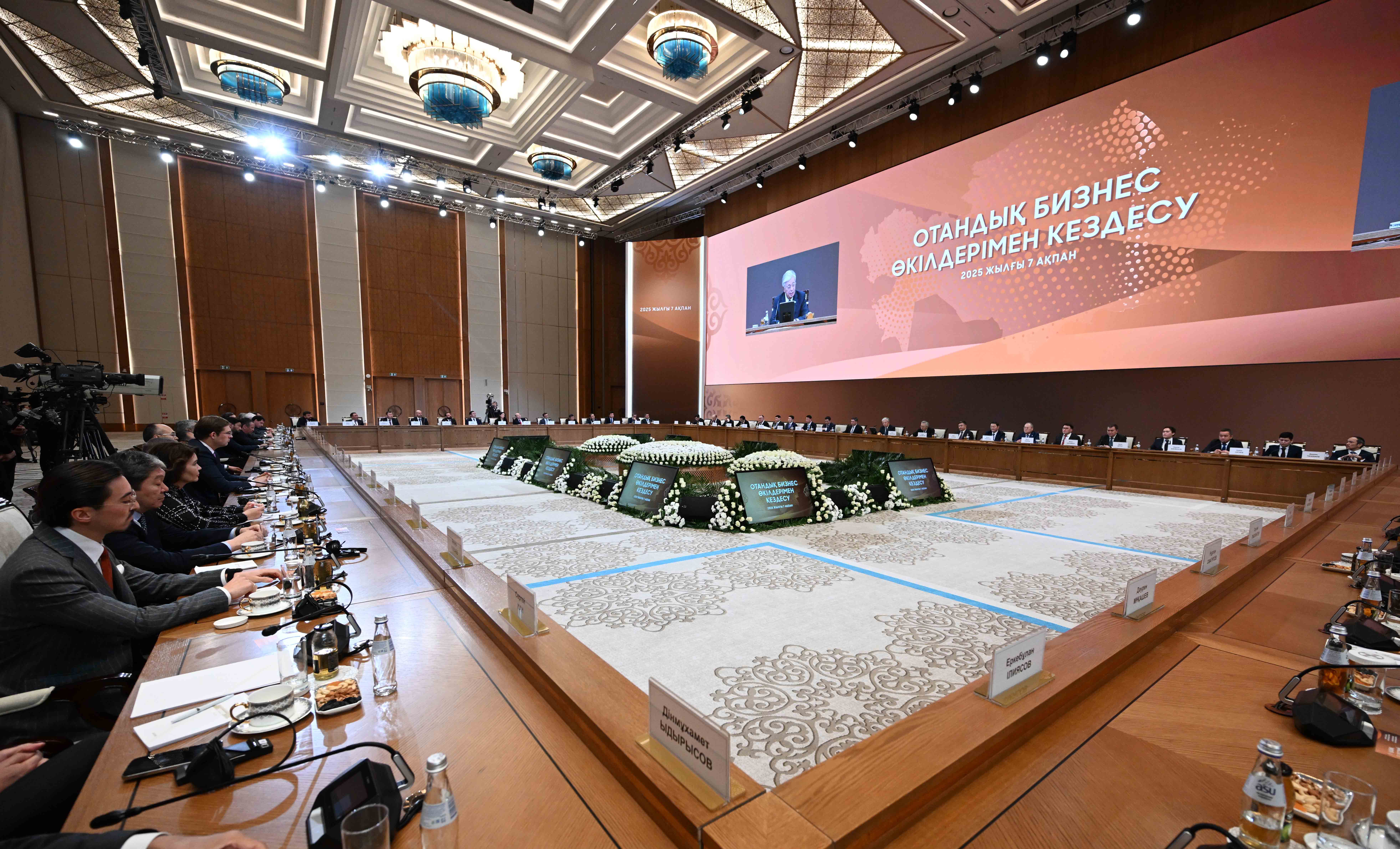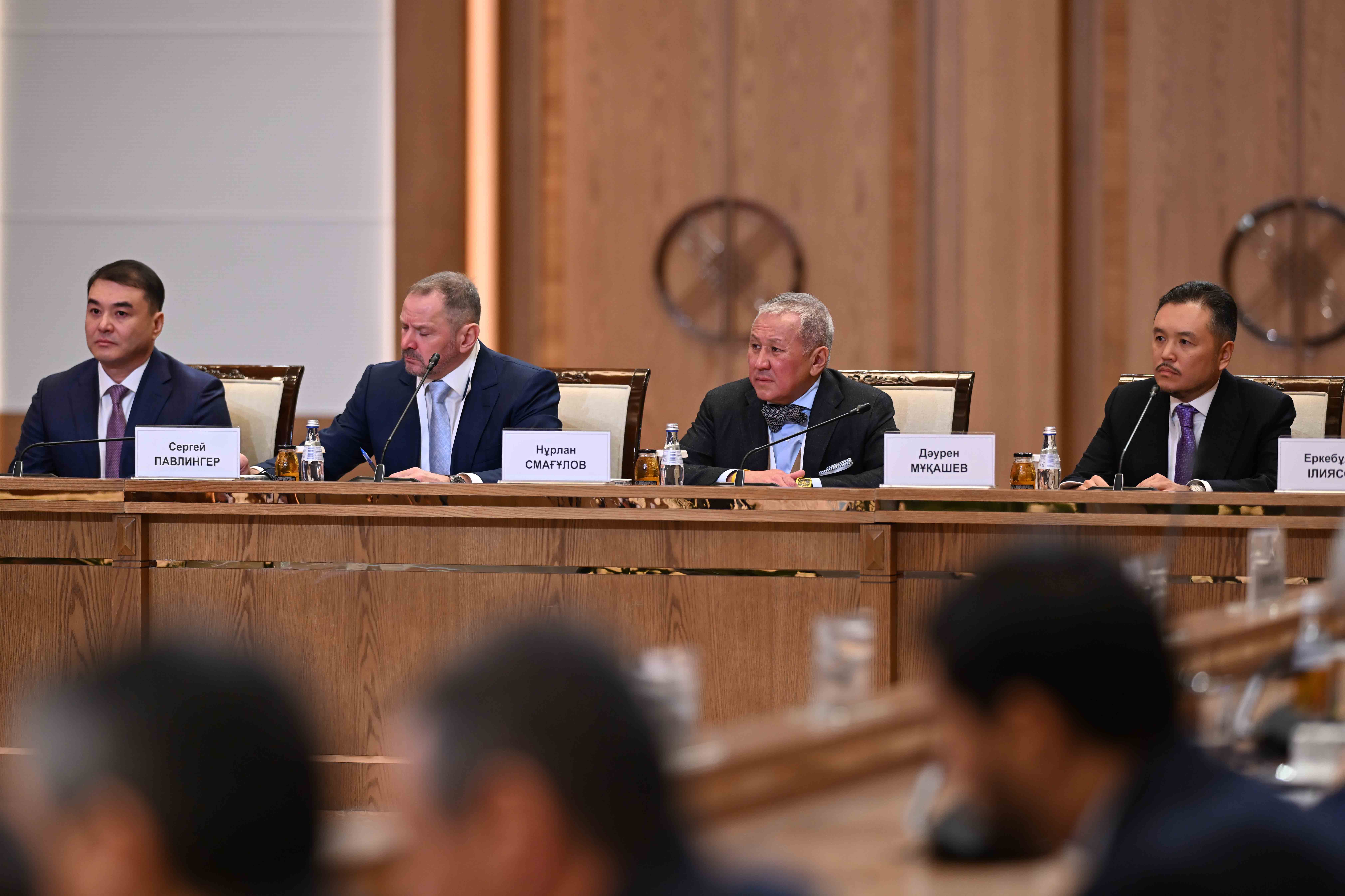 В ходе встречи с докладами выступили заместитель Премьер-министра – министр национальной экономики Серик Жумангарин, президент ТОО «Группа компаний Resmi», АО «RG Brands» Кайрат Мажибаев, председатель совета директоров ТОО «Казахмыс Холдинг» Эдуард Огай, главный исполнительный директор InDrive Арсен Томский, генеральный директор ТОО AUDACIA Express Бакытбек Кадиров, председатель правления АО «Народный Банк Казахстана» Умут Шаяхметова, председатель совета директоров холдинга BI-Group Айдын Рахимбаев, совладелец компании «Karazhal Operating», председатель президиума Национальной конфедерации работодателей Paryz Жумабек Жаныкулов, директор ТОО «Евразия инвест» Иван Георгиади, генеральный директор ТОО «Карагандинский фармацевтический комплекс» Сергей Барон, председатель президиума НПП «Атамекен» Раимбек Баталов.