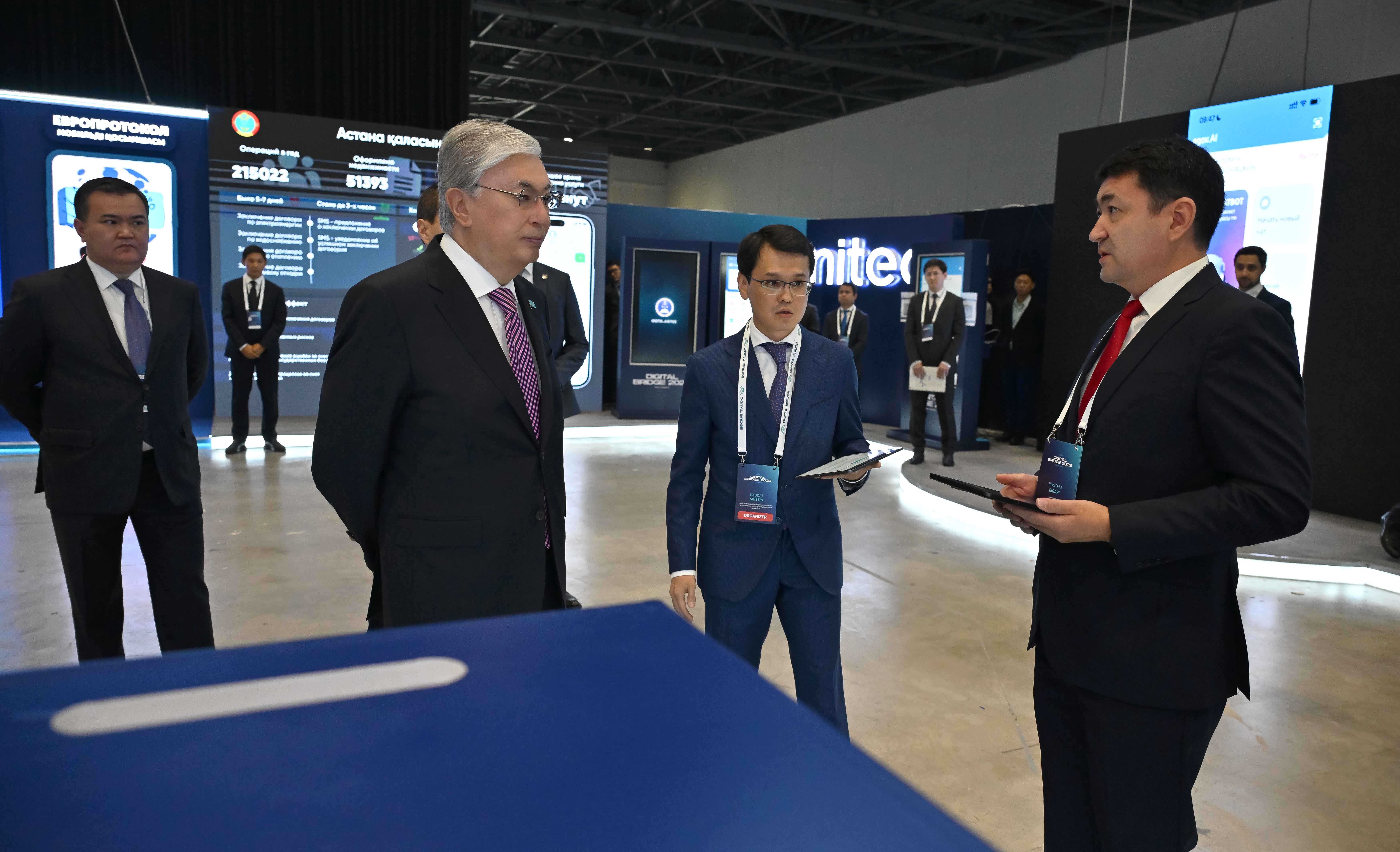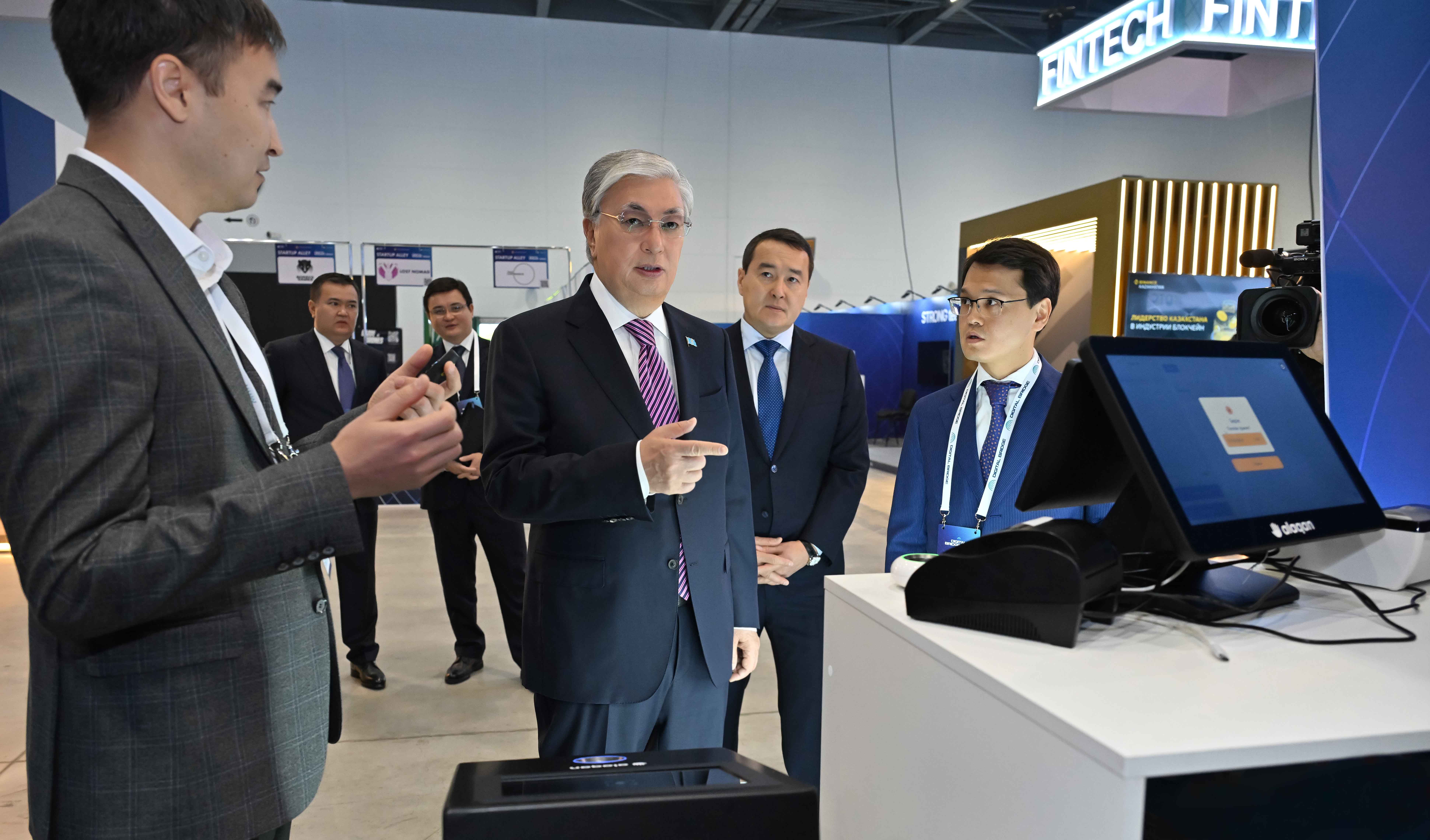 Касым-Жомарт Токаев посетил выставку на международном технологическом форуме Digital Bridge