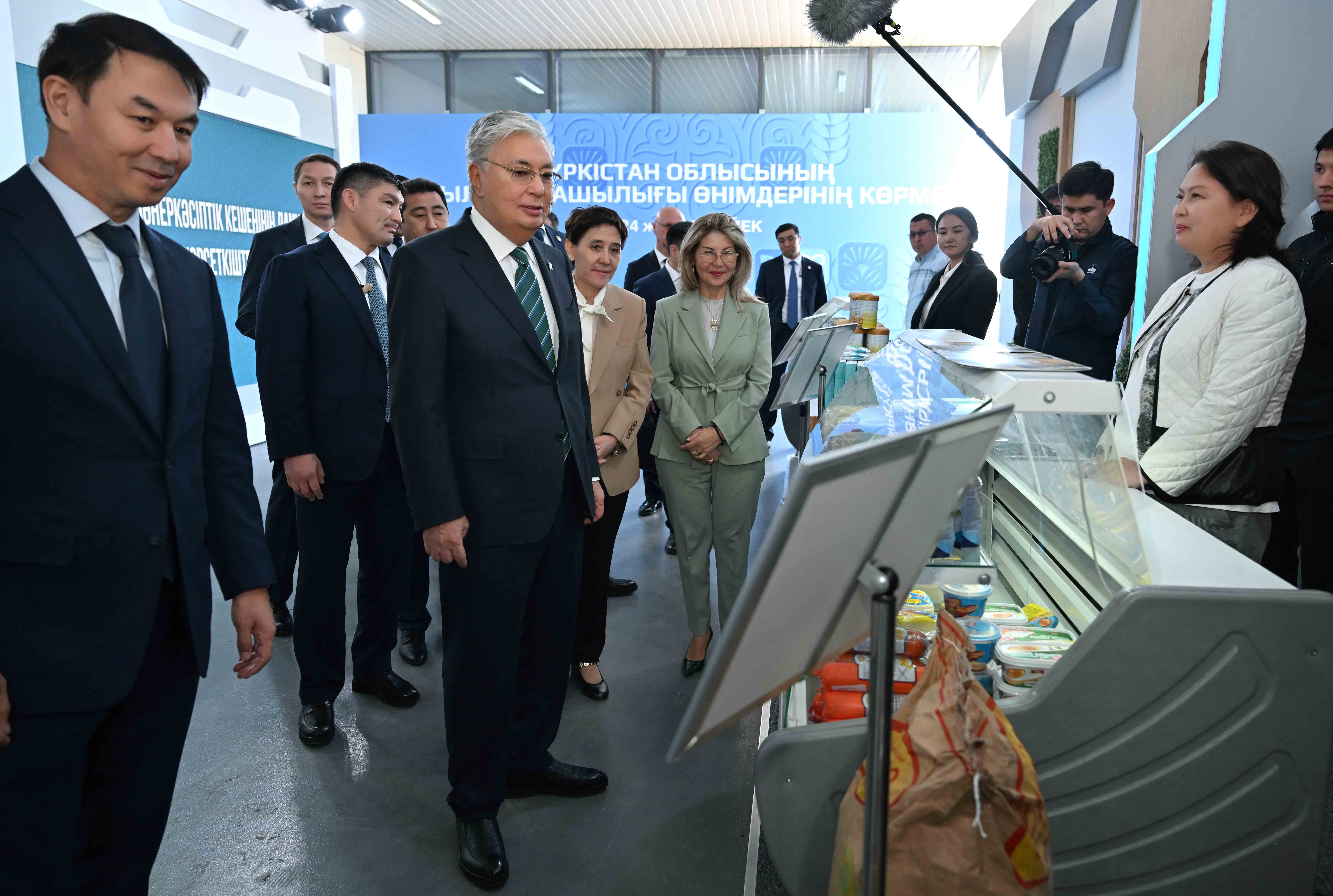 Президент посетил выставку местных производителей сельскохозяйственной продукции, организованную в промышленном парке SPK TURKISTAN.