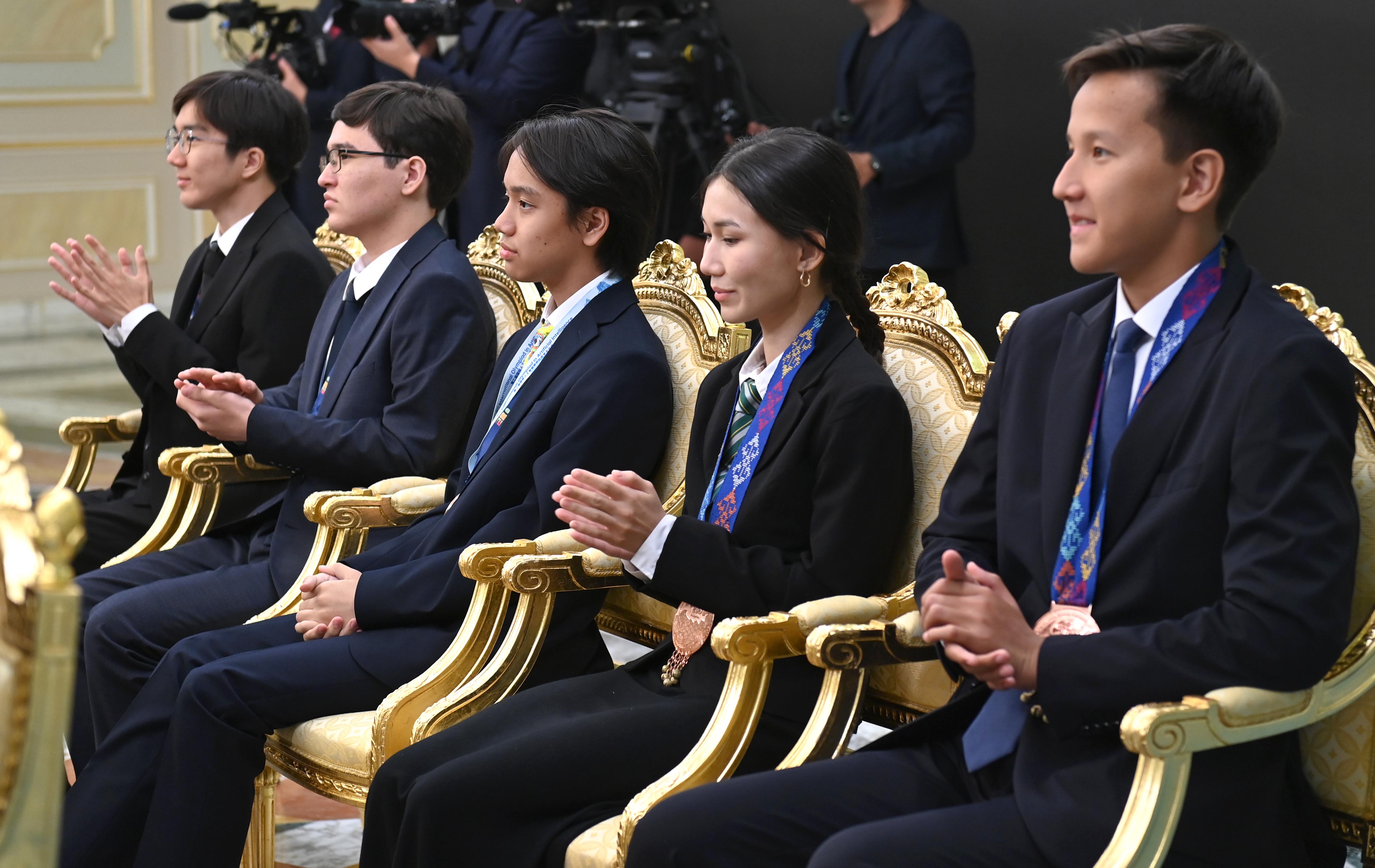 Обращаясь к юным талантам, Президент поздравил их с успехами в сфере знаний и выразил им искреннюю признательность. По его словам, триумф на престижных международных интеллектуальных соревнованиях и прославление Казахстана на мировой арене является выдающимся достижением.