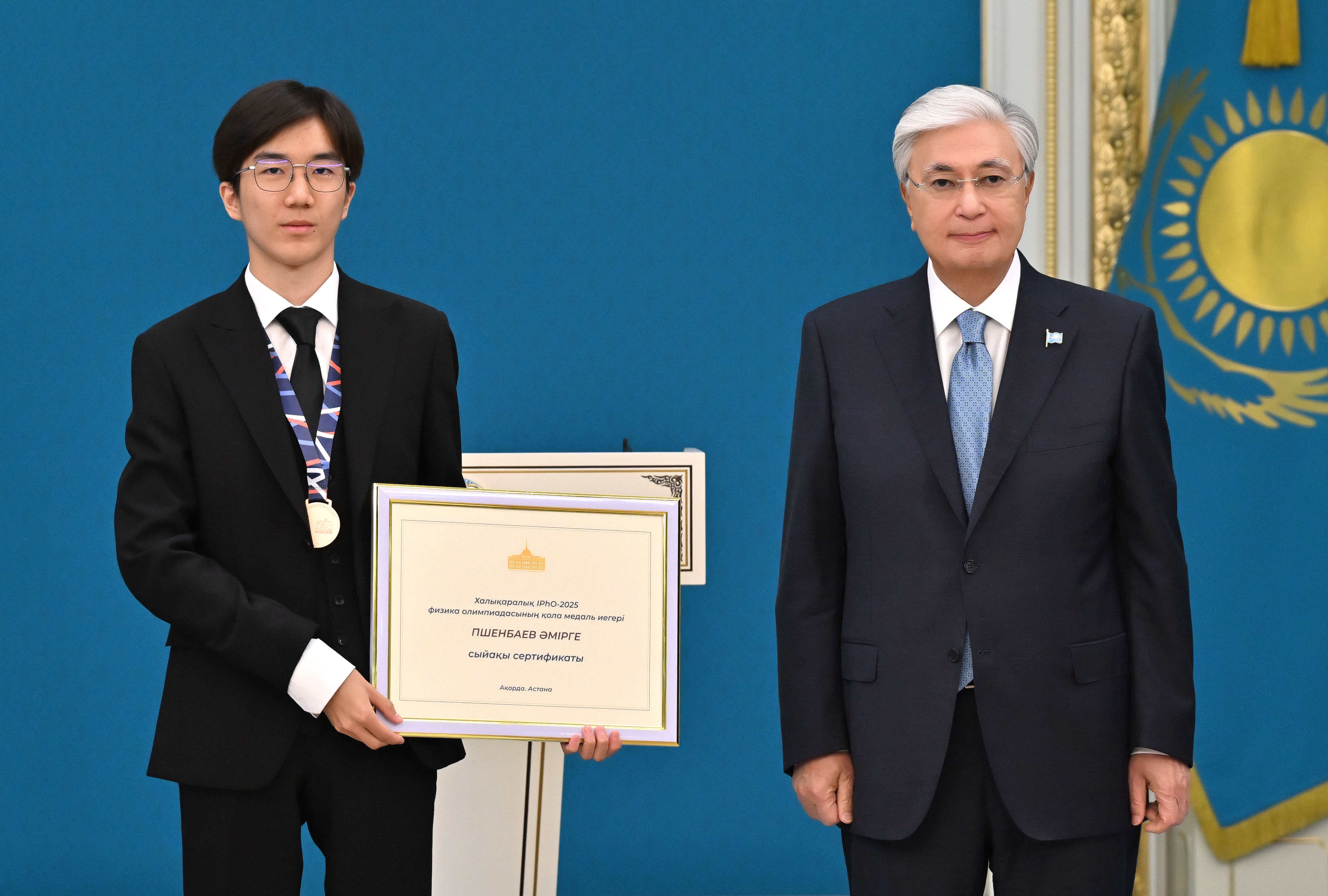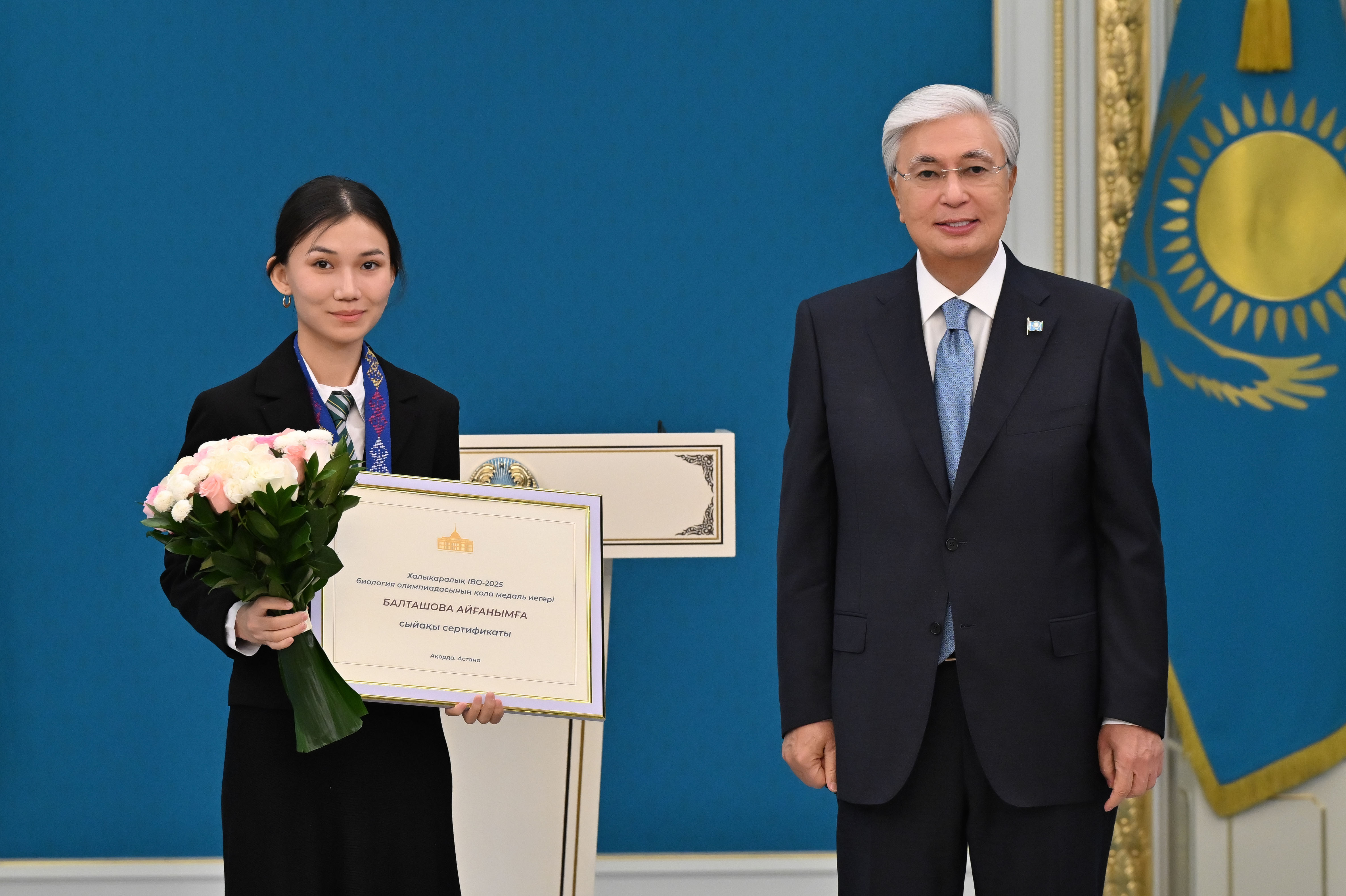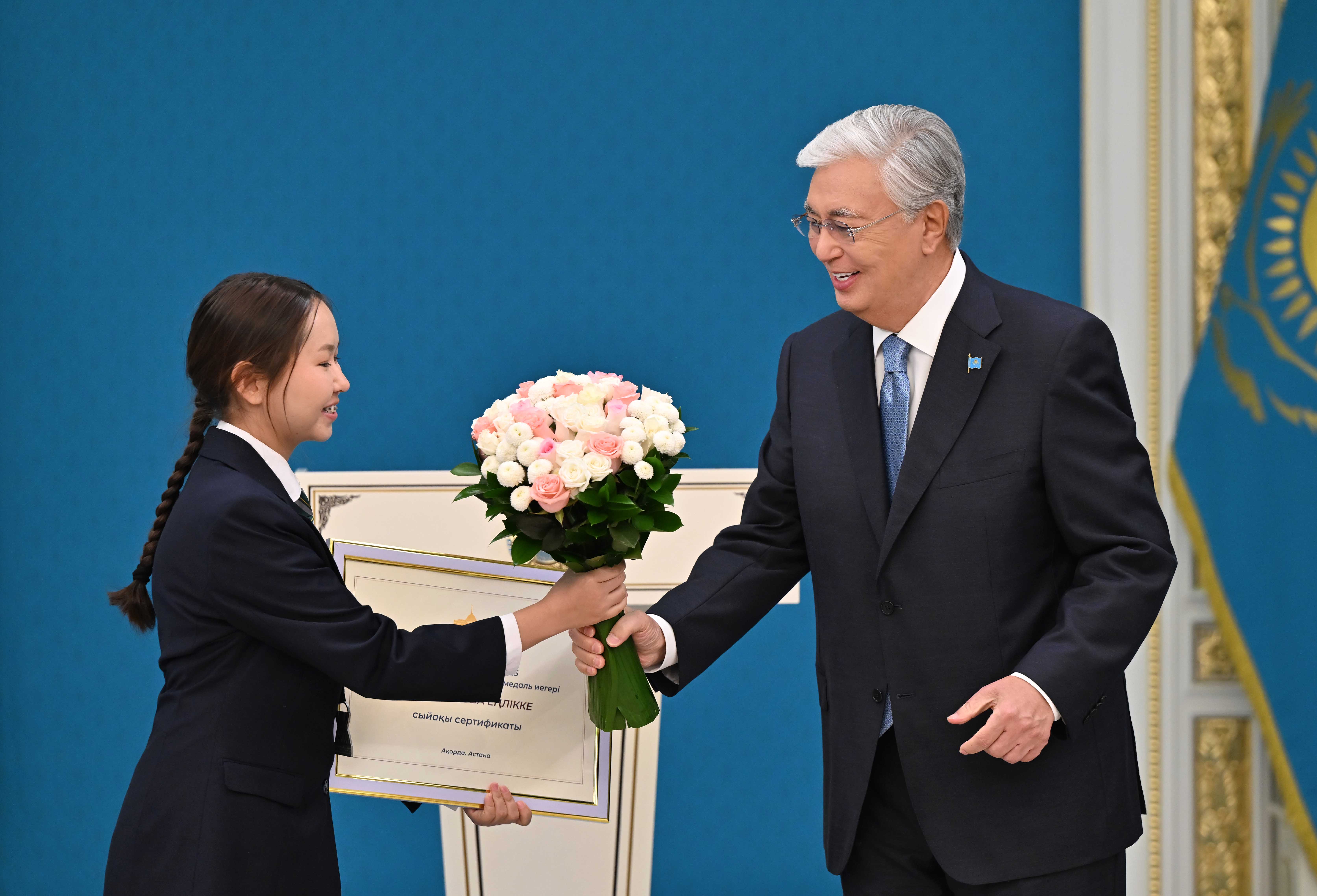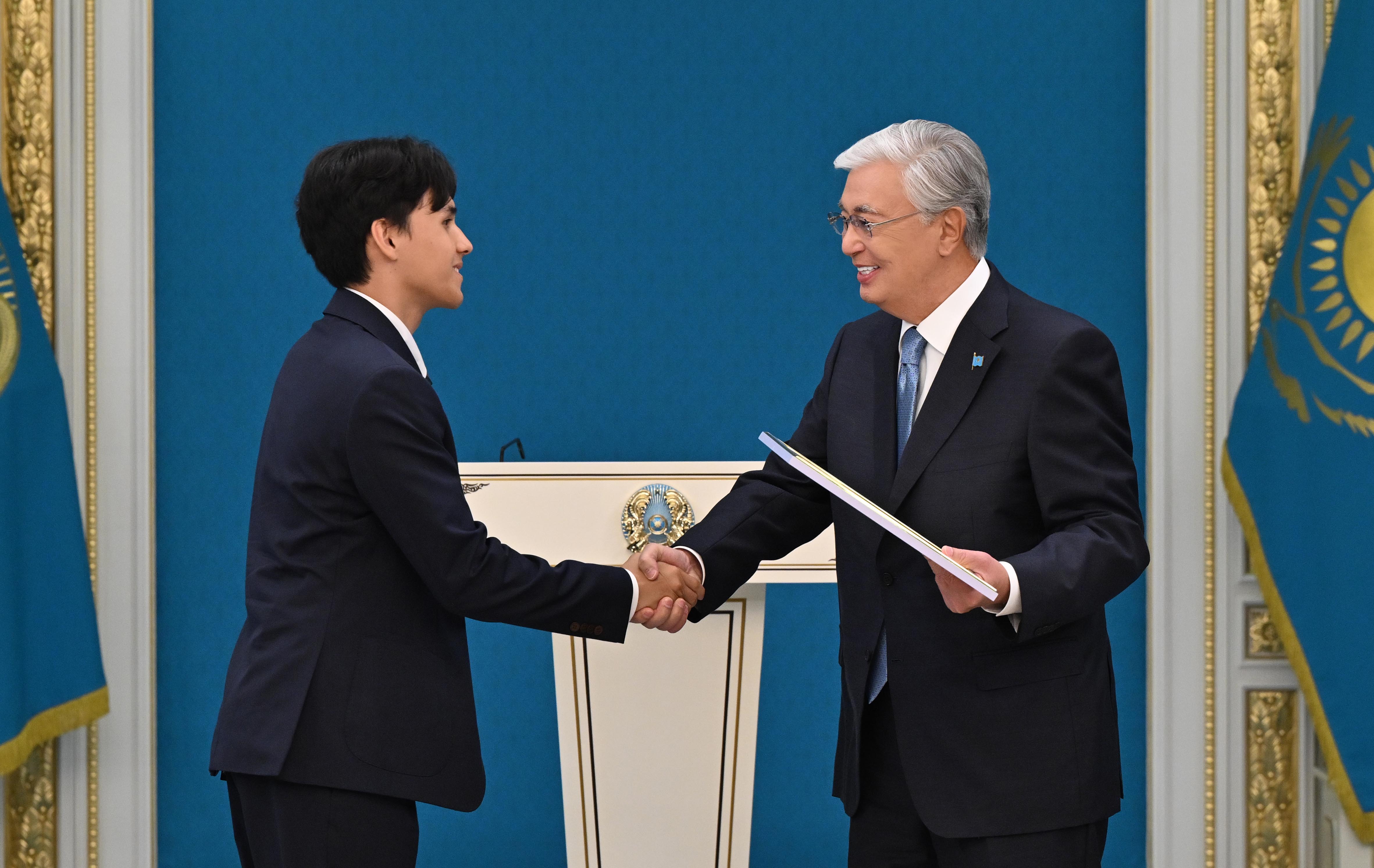 – Наш флаг поднимается ввысь на мировых спортивных и творческих аренах в честь побед наших юных соотечественников. Высок престиж страны в сфере образования. С прошлого года наши школьники приняли участие более чем в 30 международных олимпиадах и научных конкурсах, завоевав тысячи медалей, из которых почти 200 – золотые, свыше 300 – серебряные и около 500 – бронзовые. Столь впечатляющие результаты свидетельствуют о высоком уровне образования в нашей стране. Мы гордимся каждым победителем, защищавшим честь Казахстана за рубежом. Я вижу в вас достойных граждан нашей страны. Абсолютно уверен, что в будущем вы внесете значительный вклад в развитие Казахстана, – добавил Президент.