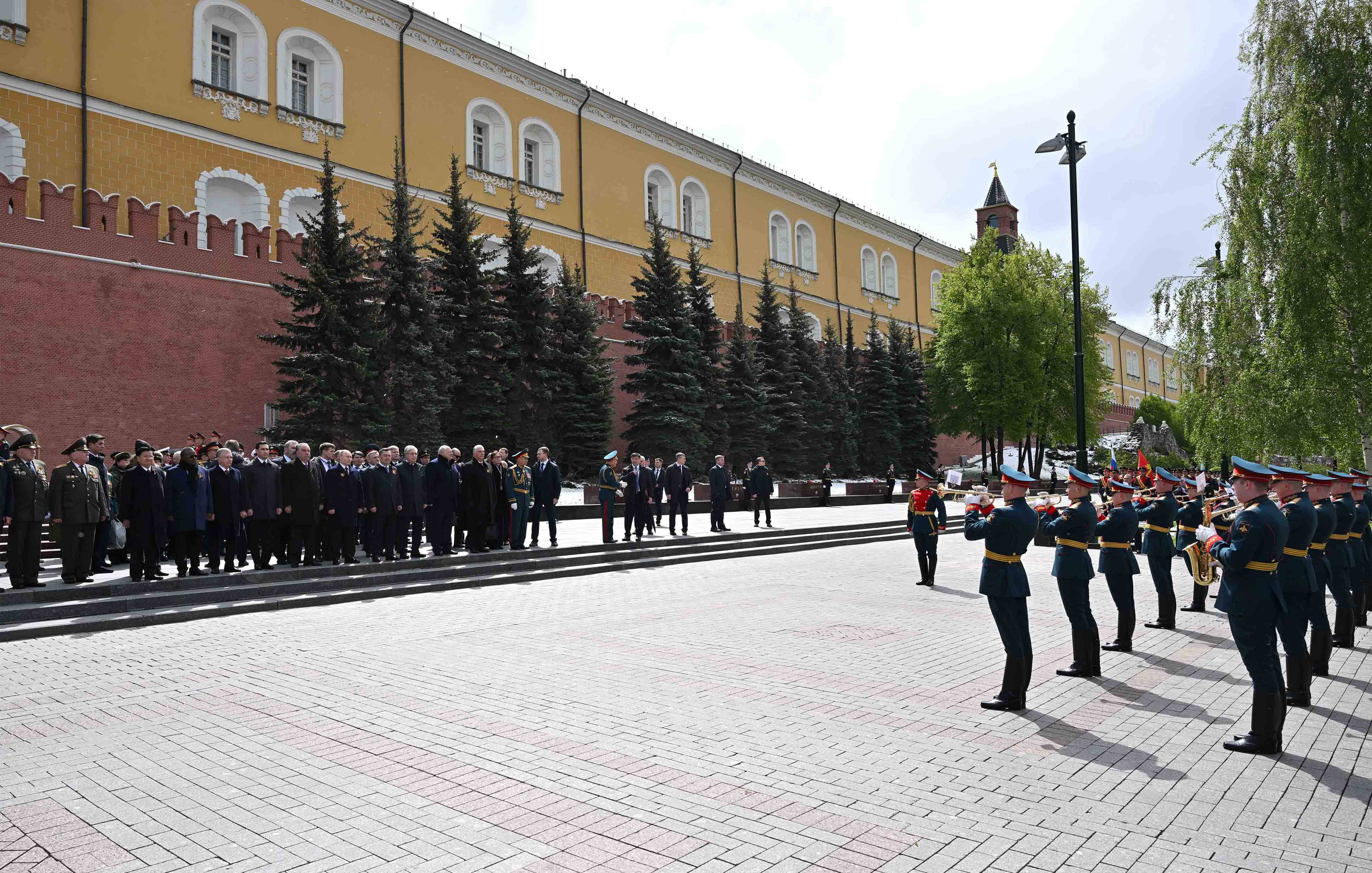 Глава государства посетил военный парад в ознаменование 79-летия Дня Победы на Красной площади в Москве, а также принял участие в церемонии возложения цветов к могиле Неизвестного солдата.