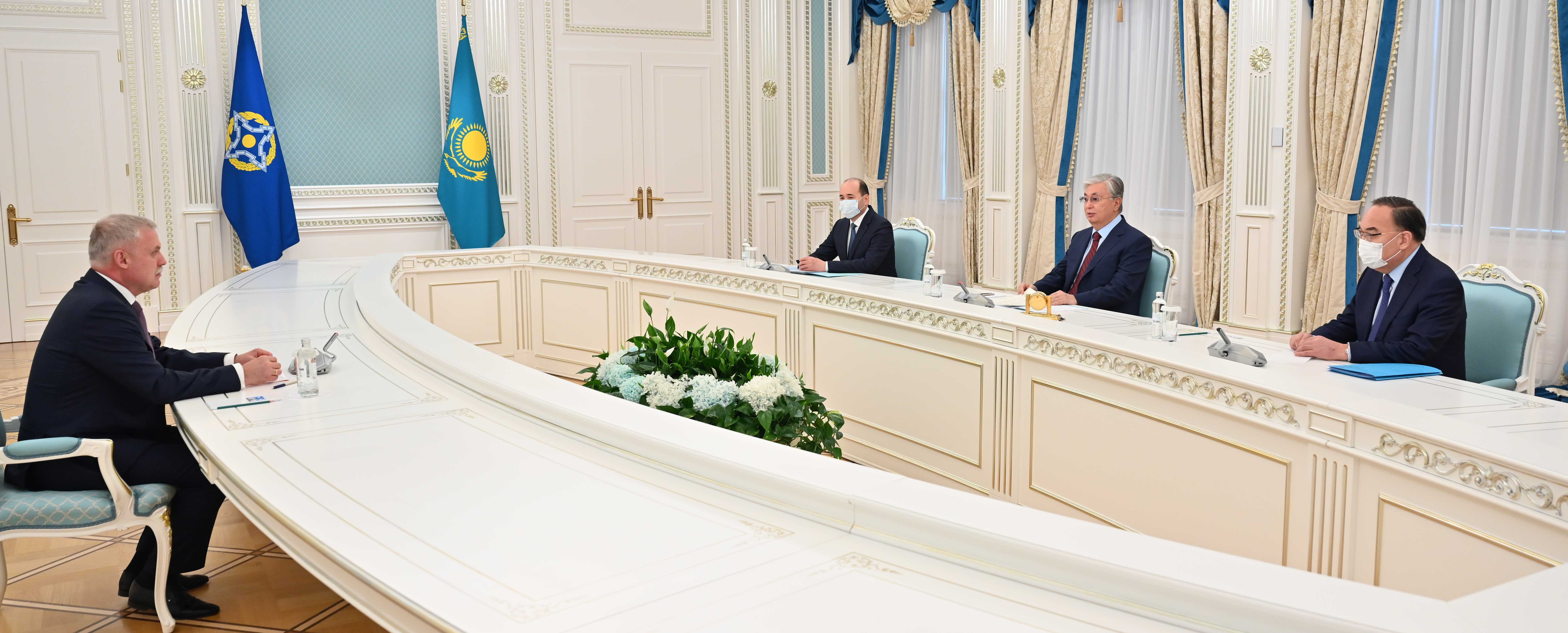 Генеральный секретарь проинформировал Главу государства о состоянии и перспективах развития ОДКБ, а также о ходе подготовки к очередной сессии Совета коллективной безопасности ОДКБ. В ходе встречи был рассмотрен широкий круг вопросов по ключевым направлениям деятельности этой международной организации.