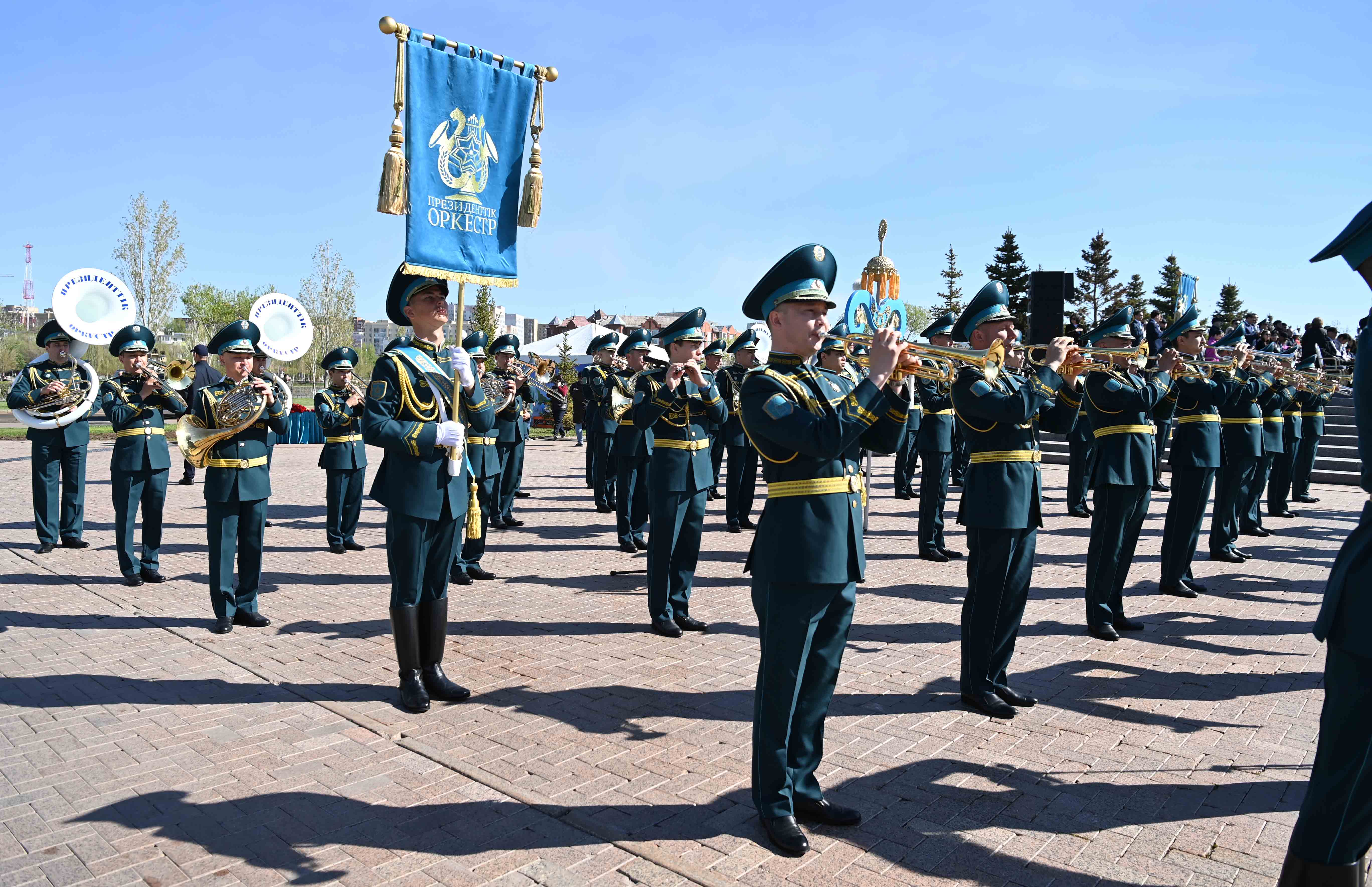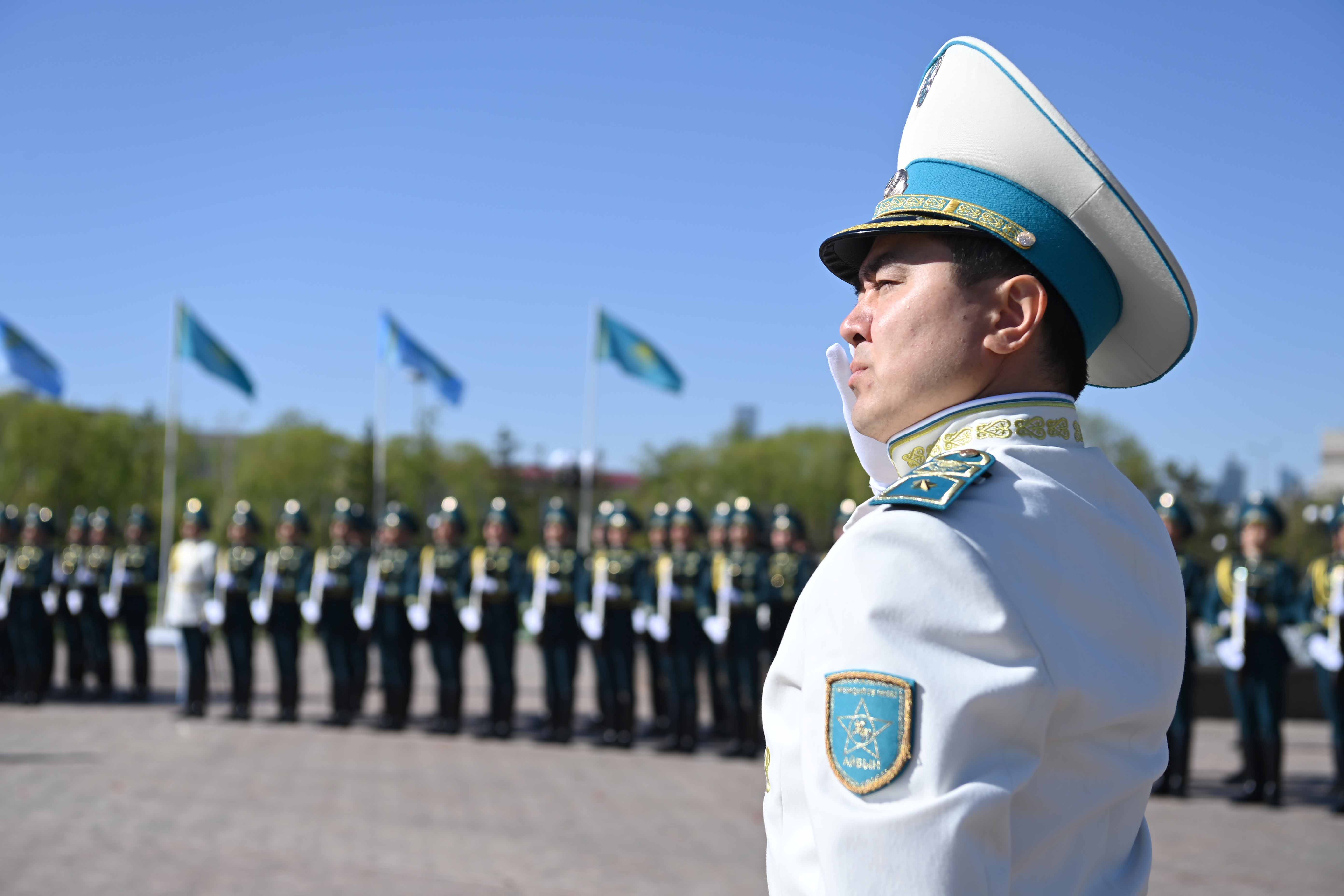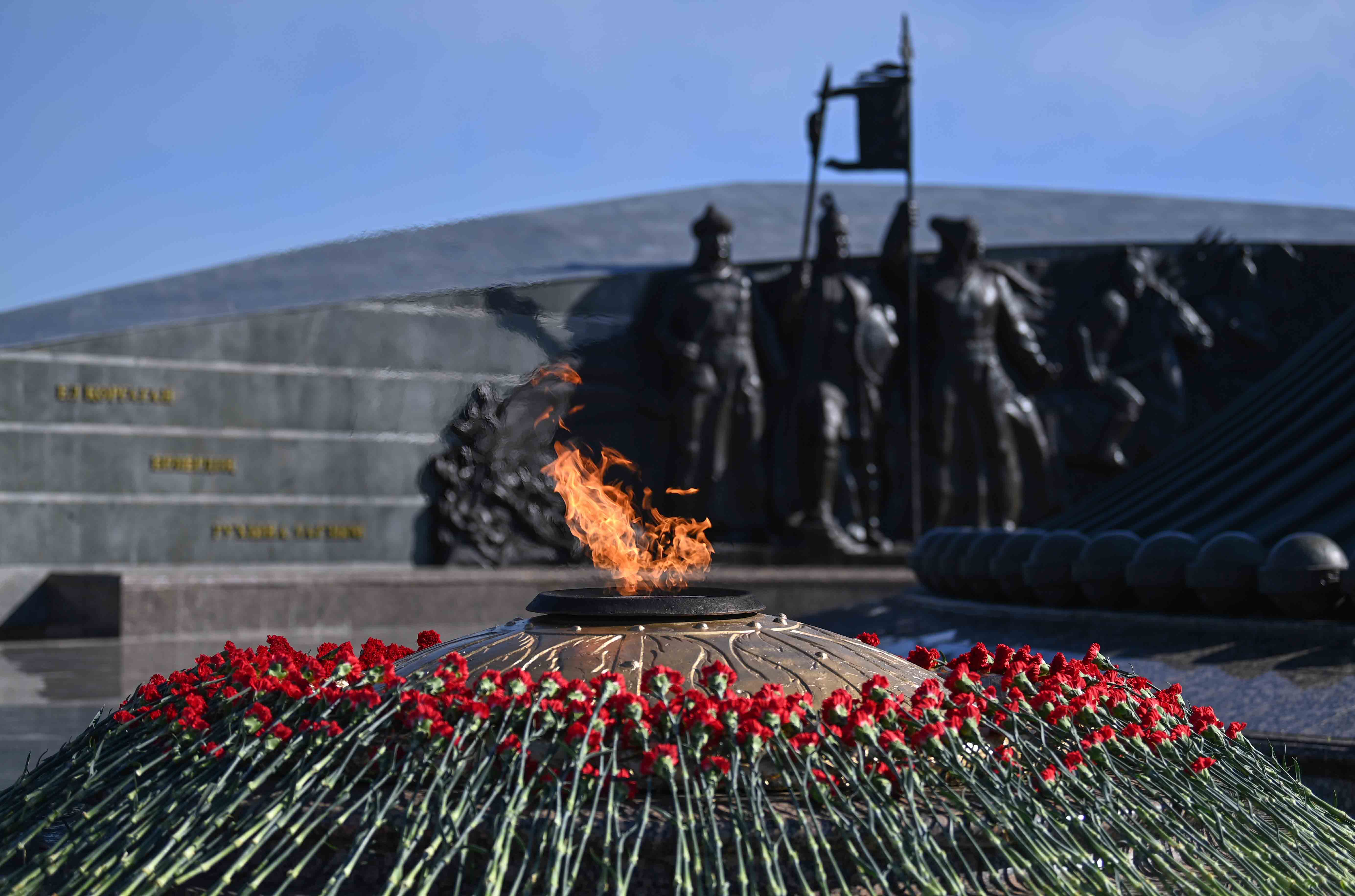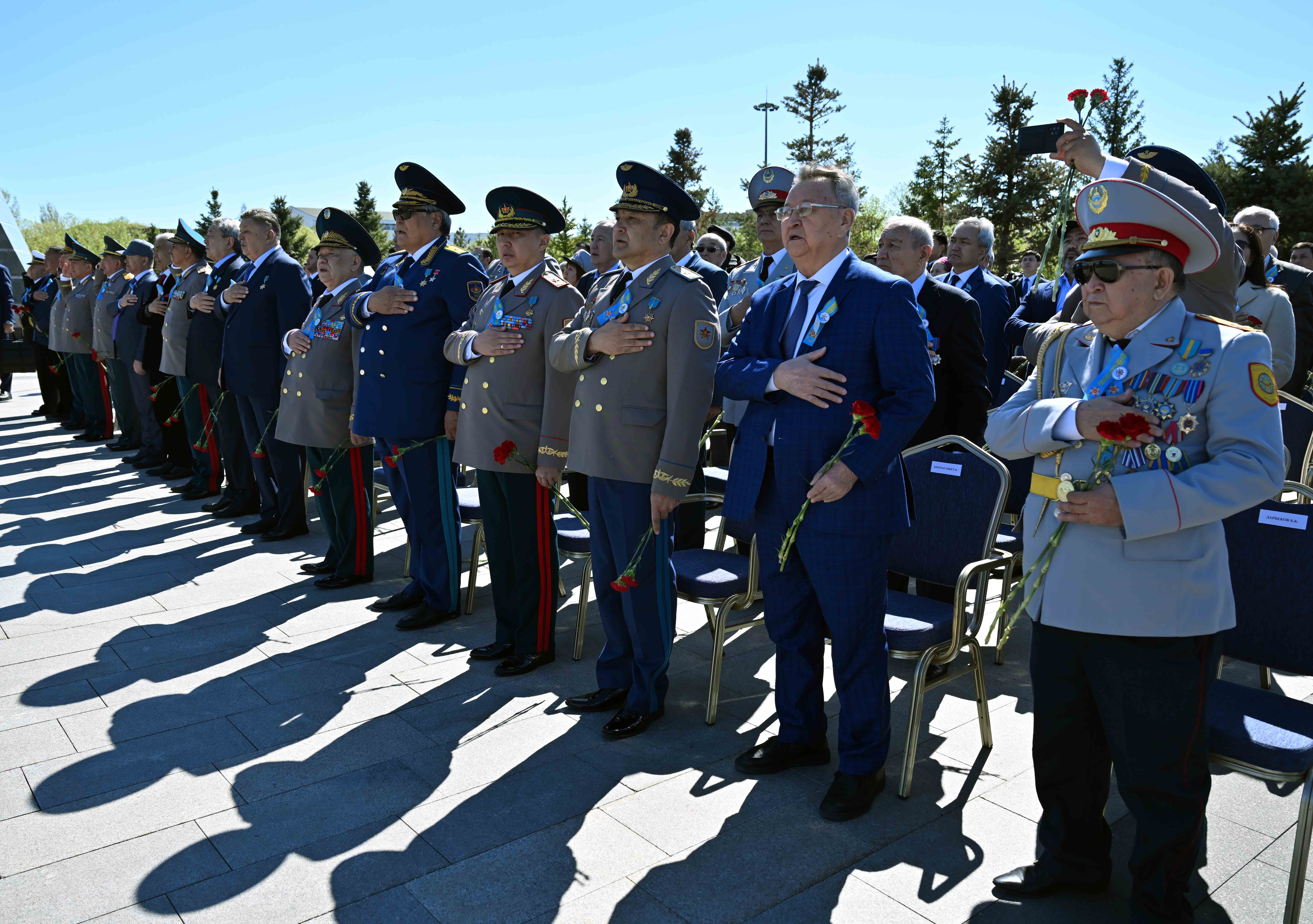 Глава государства возложил цветы к монументу «Отан Ана» и почтил минутой молчания память воинов-казахстанцев, погибших в годы Великой Отечественной войны. Затем президентский оркестр исполнил Государственный Гимн, рота почетного караула прошла торжественным маршем перед участниками мероприятия.