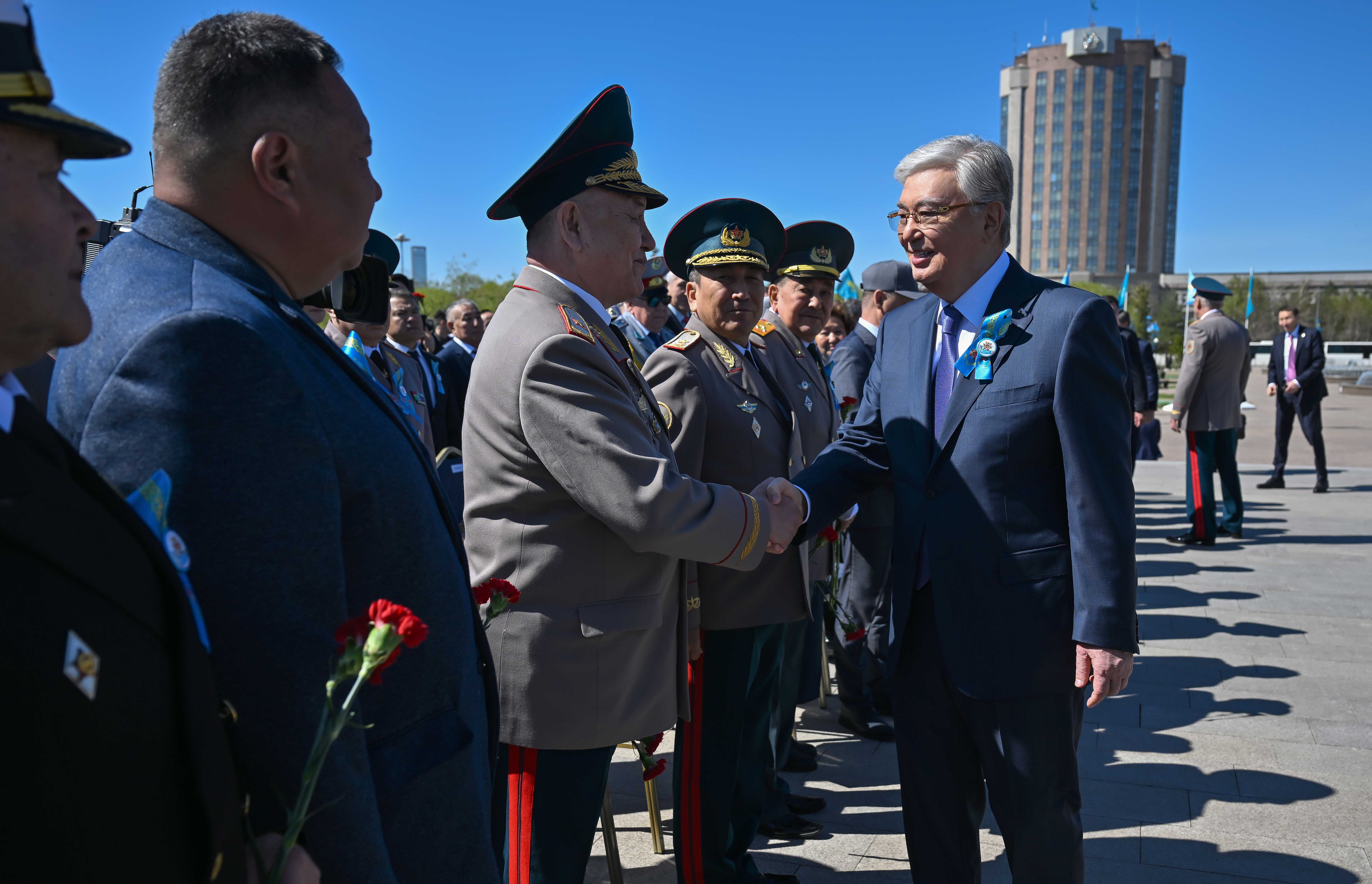 В ходе беседы с участниками церемонии Касым-Жомарт Токаев поздравил ветеранов с Днем Победы.