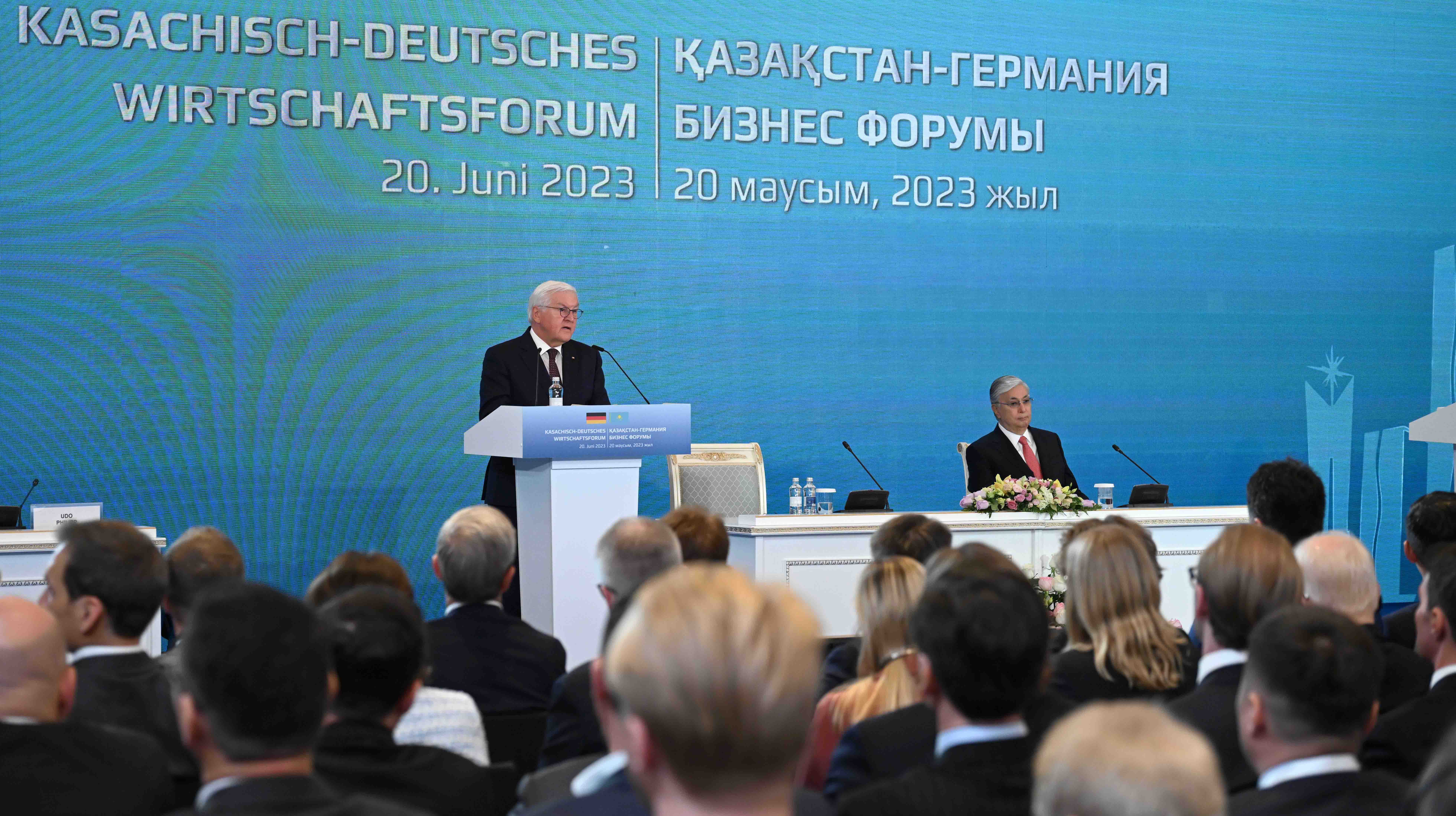 В ходе мероприятия также выступили Федеральный Президент Германии Франк-Вальтер Штайнмайер, министр индустрии и инфраструктурного развития Республики Казахстан Марат Карабаев, глава Федерального министерства экономики и защиты климата Германии Удо Филипп.