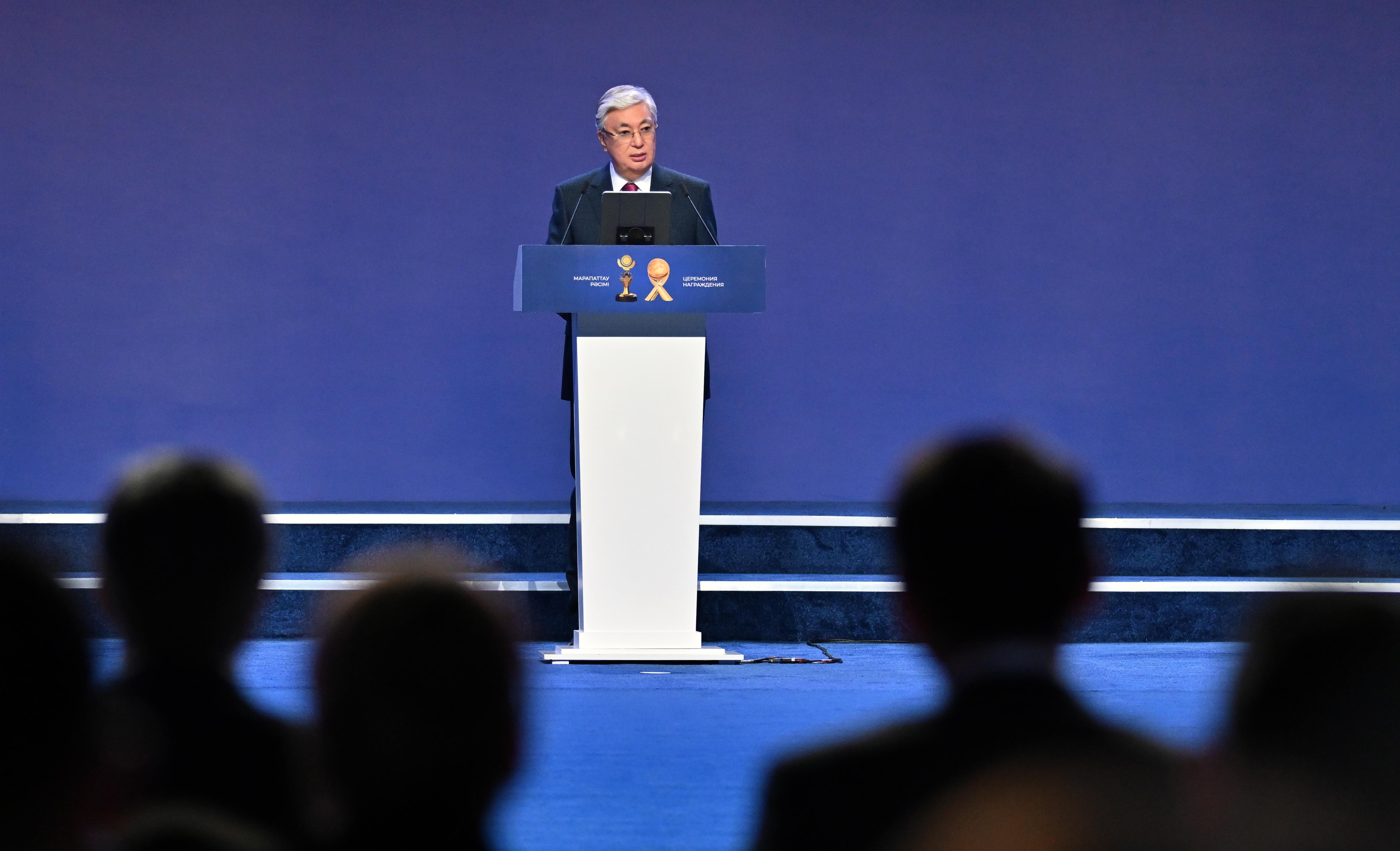 Президент Касым-Жомарт Токаев выступил на церемонии награждения лауреатов премий «Алтын сапа» и «Парыз»
