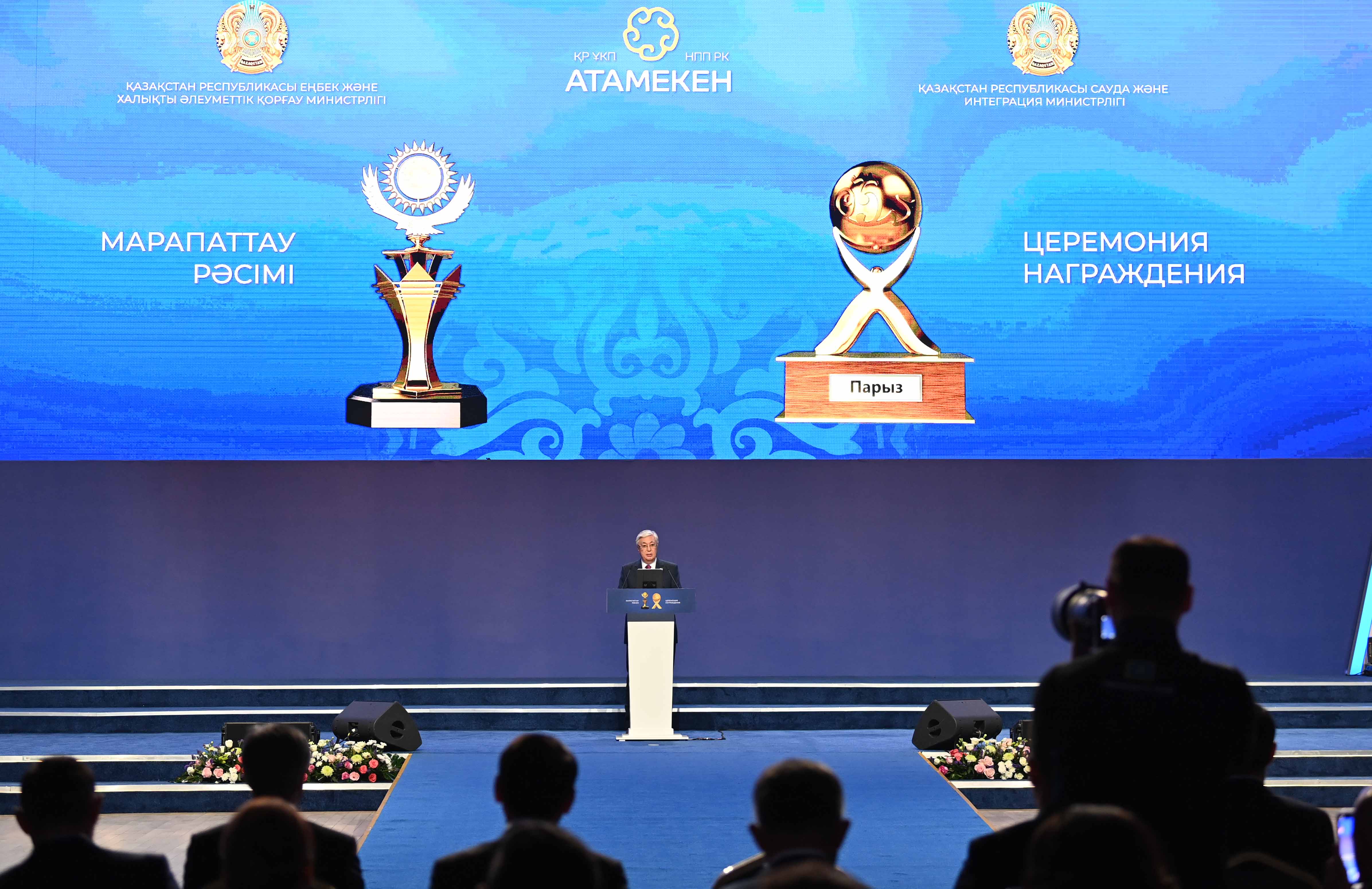 В завершение мероприятия Касым-Жомарт Токаев выразил благодарность всем предпринимателям, участвовавшим в конкурсах «Алтын сапа» и «Парыз», и вручил награды лауреатам.