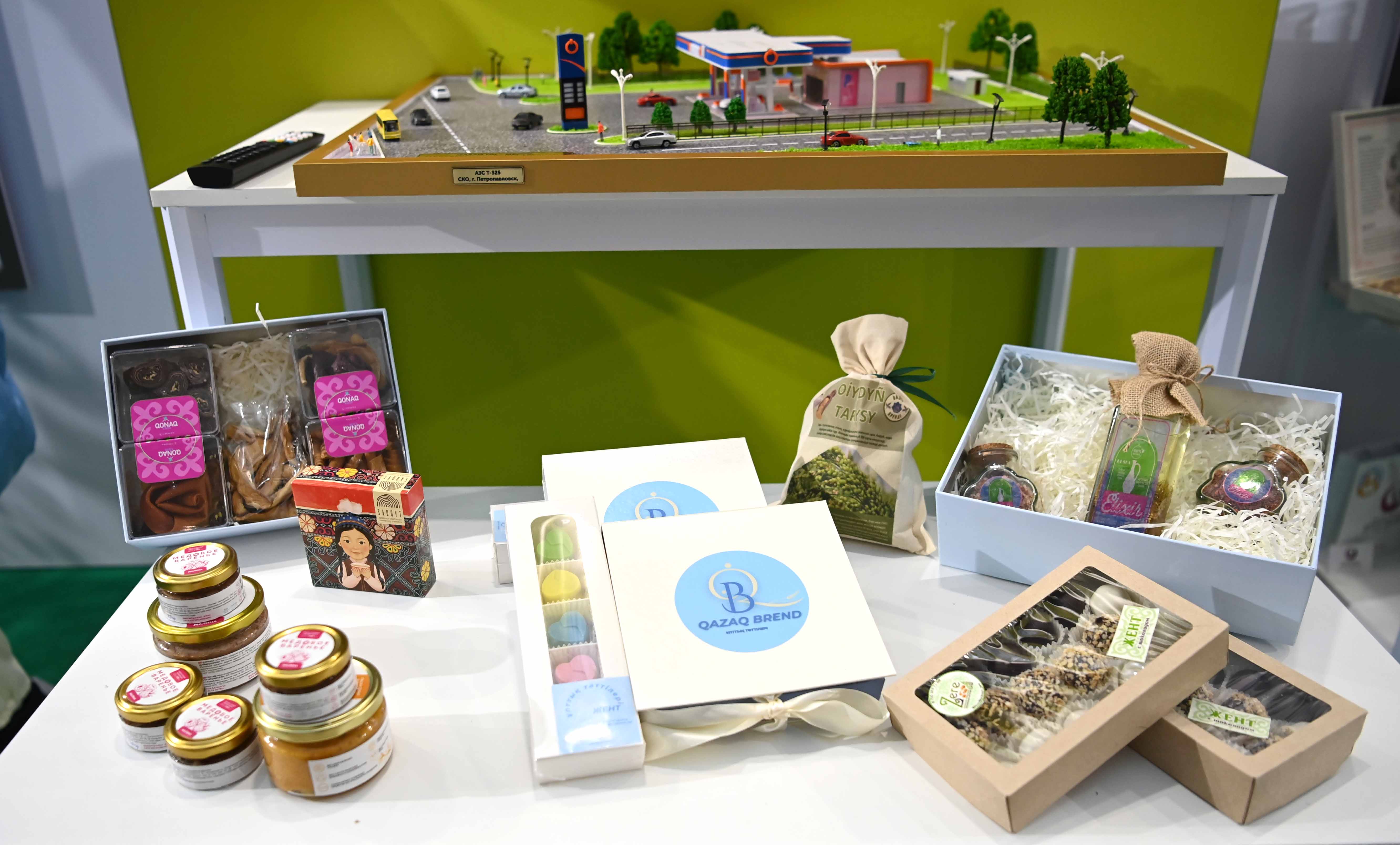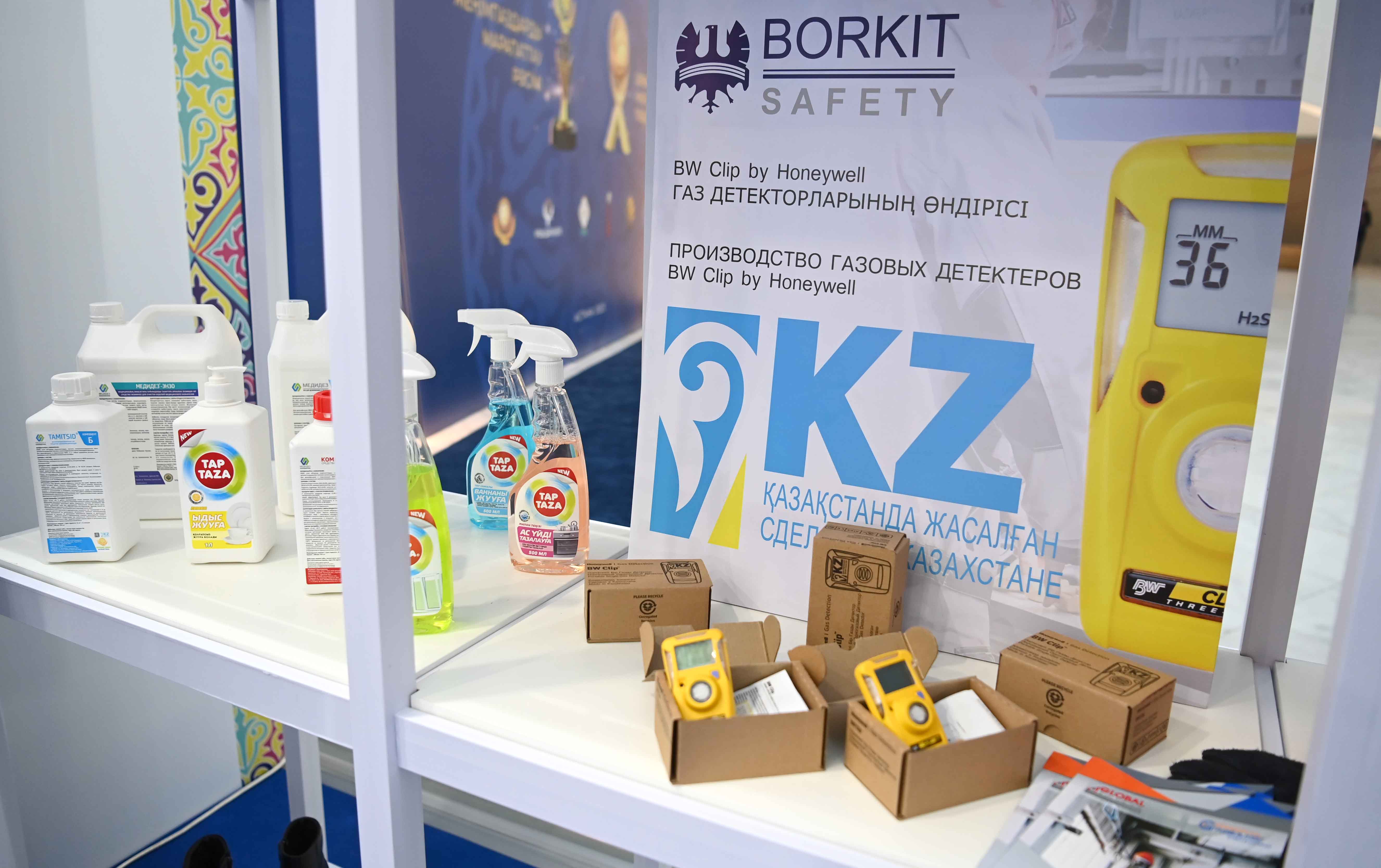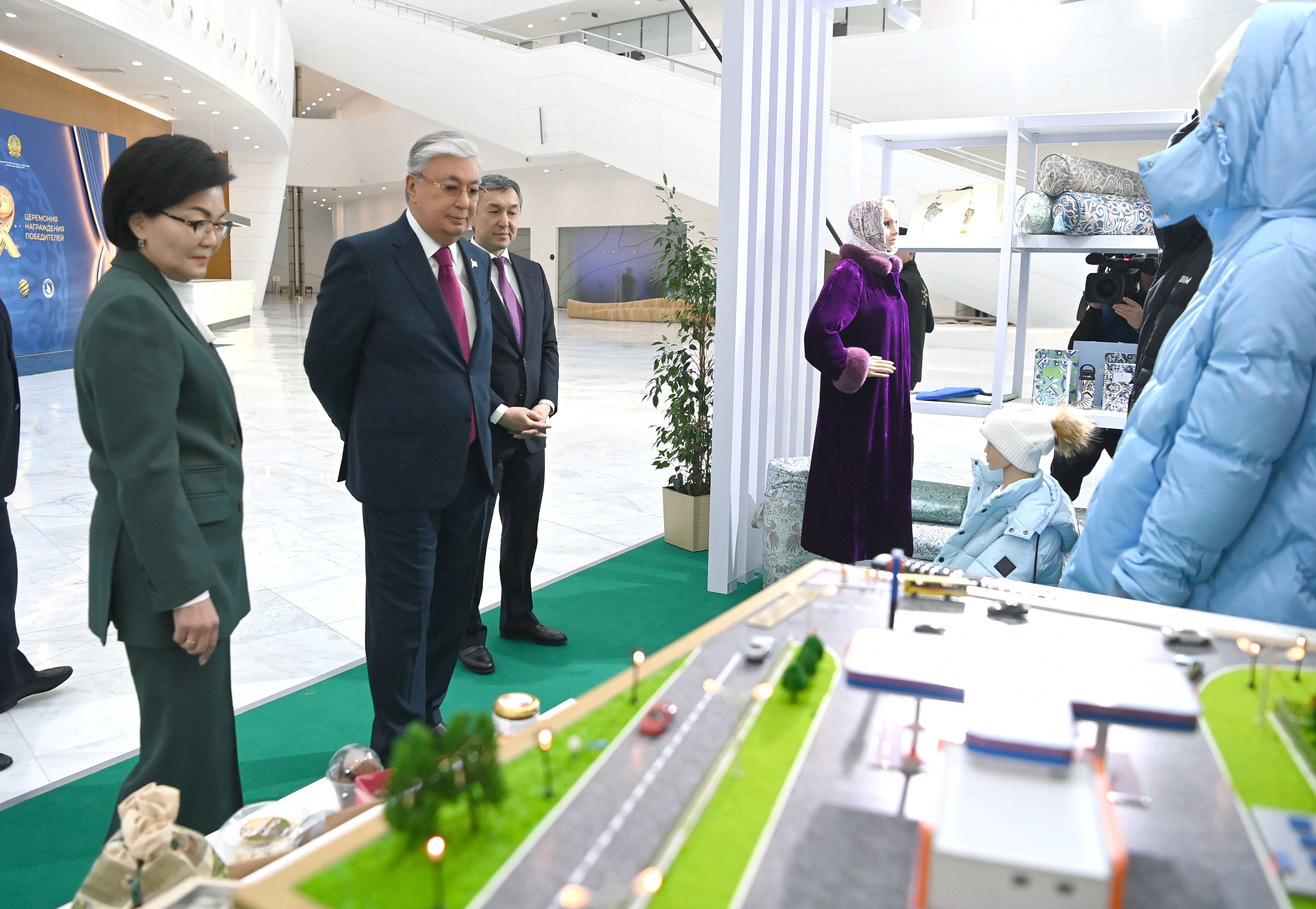 До начала торжественной церемонии Глава государства ознакомился со стендами, на которых были представлены проект «Одно село – Один продукт» а также продукция отечественных компаний «Global Safety», «CleanField Kazakhstan», «Borusan Cat» и «Med 365».