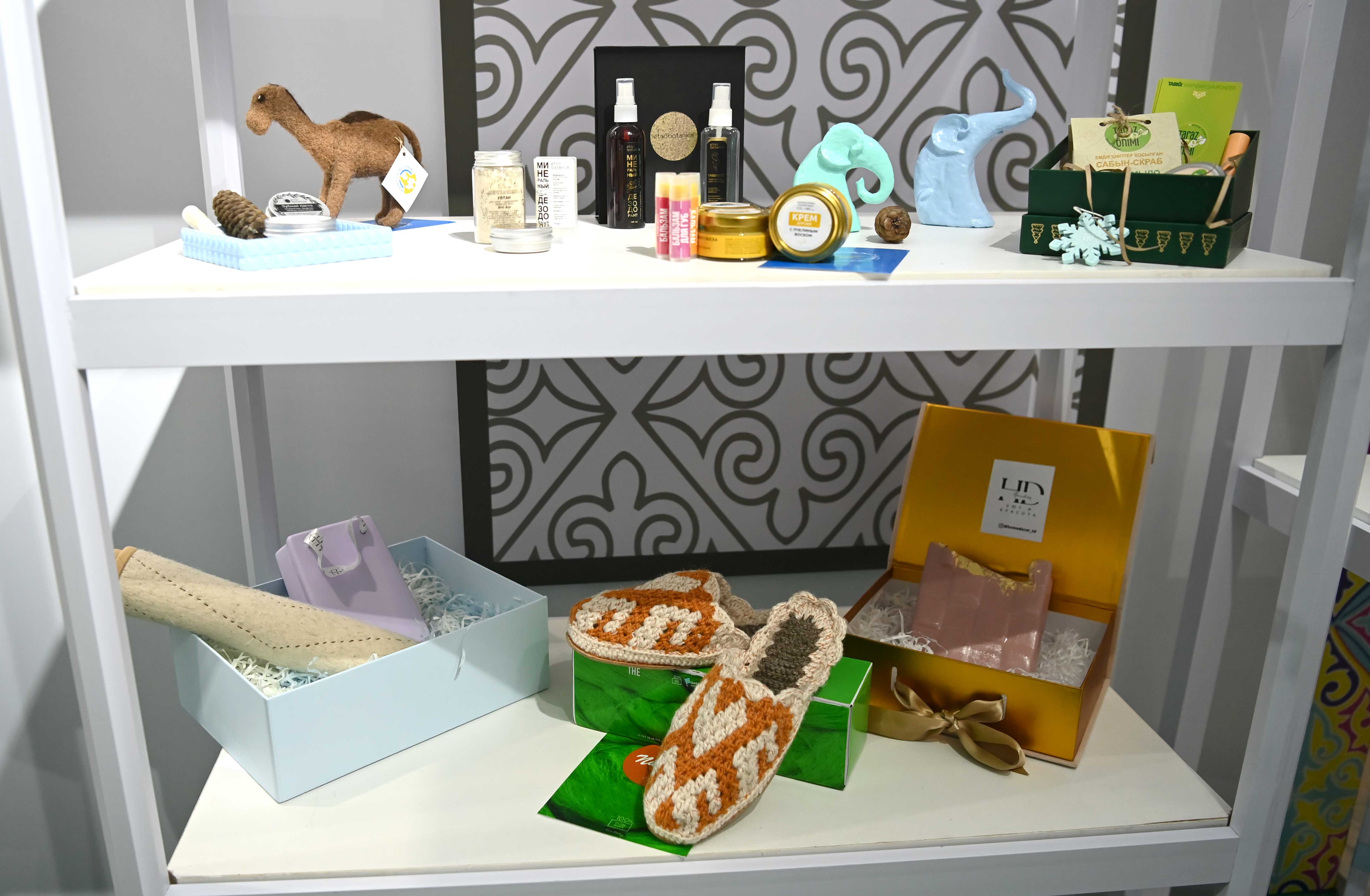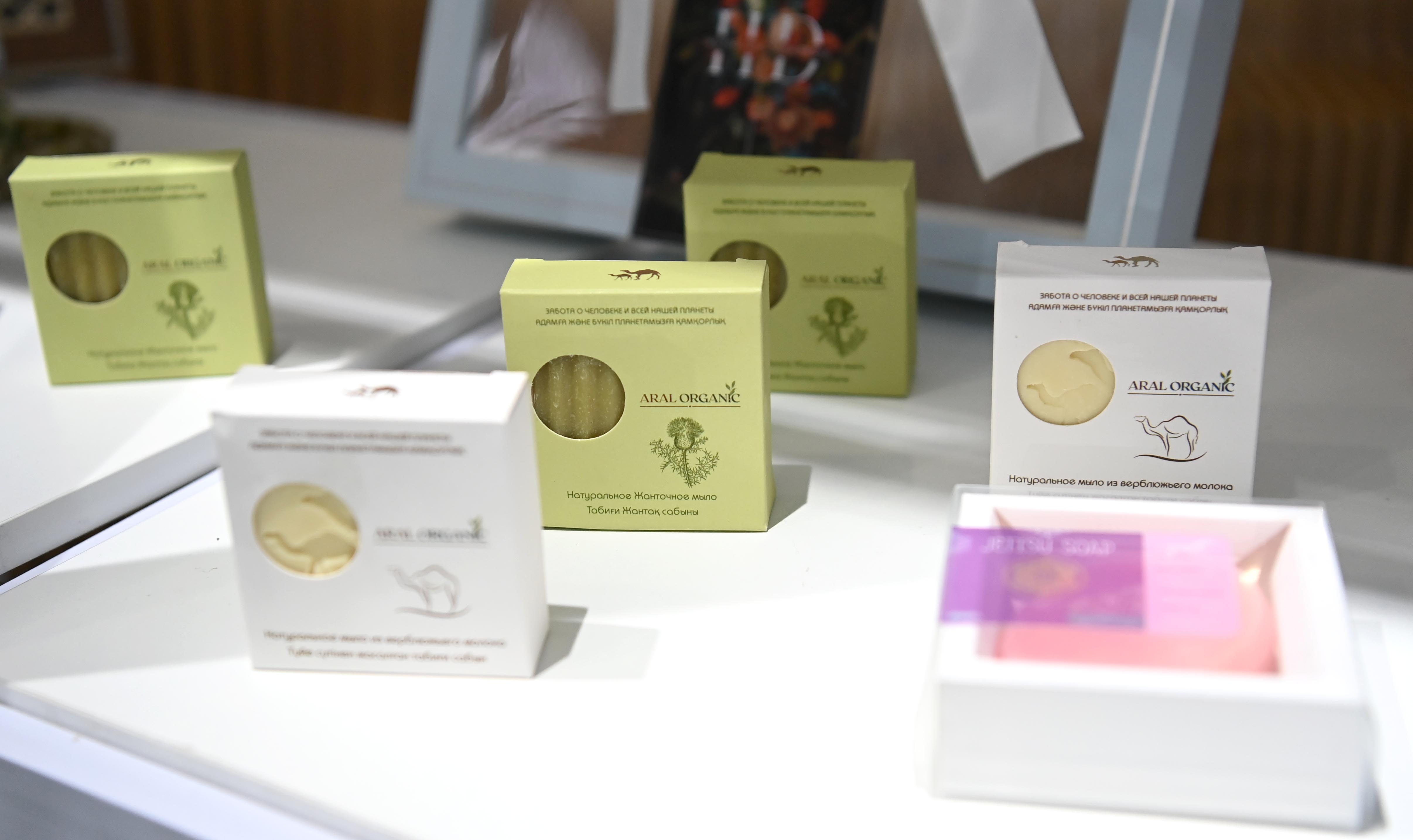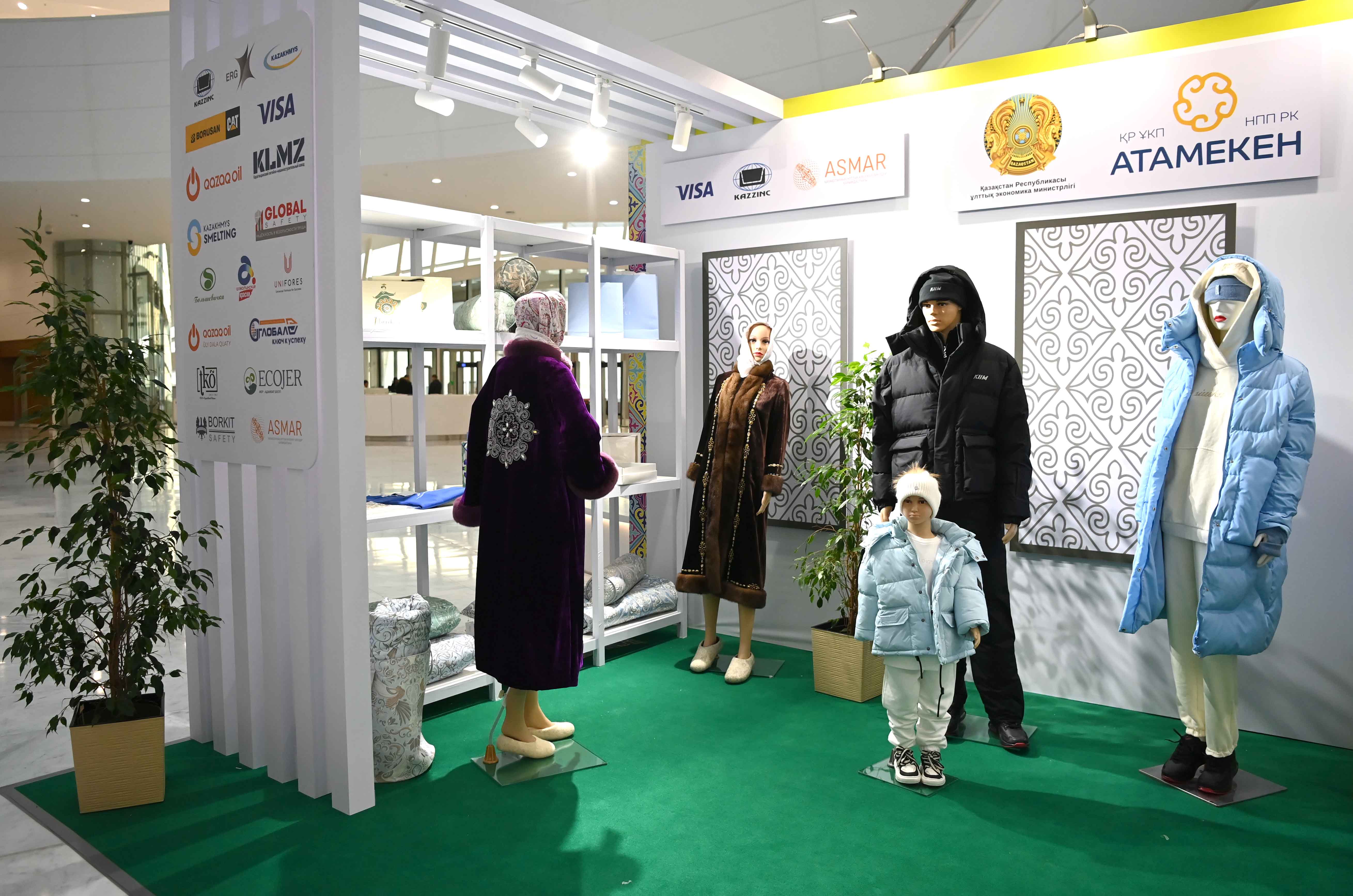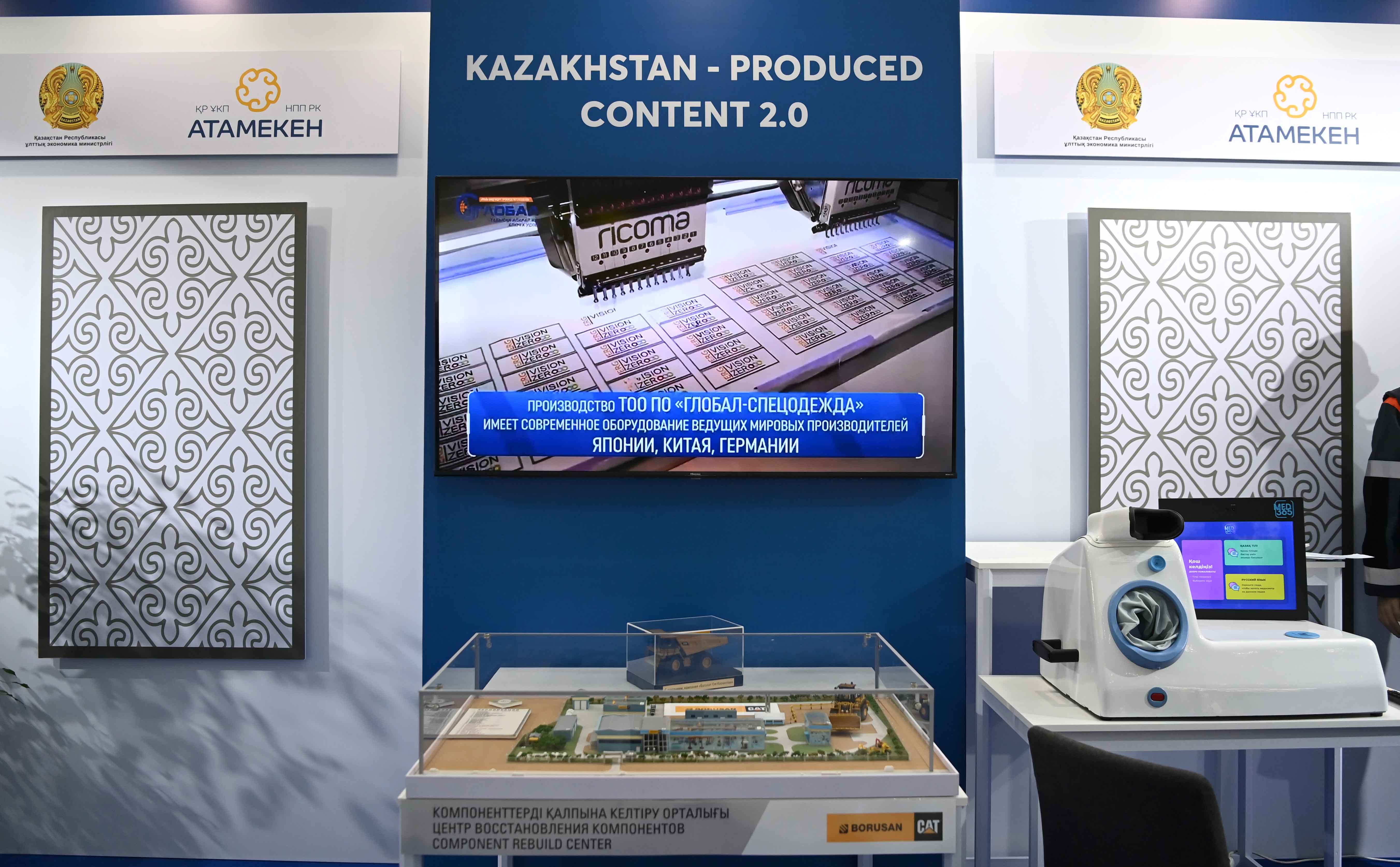 До начала торжественной церемонии Глава государства ознакомился со стендами, на которых были представлены проект «Одно село – Один продукт» а также продукция отечественных компаний «Global Safety», «CleanField Kazakhstan», «Borusan Cat» и «Med 365».