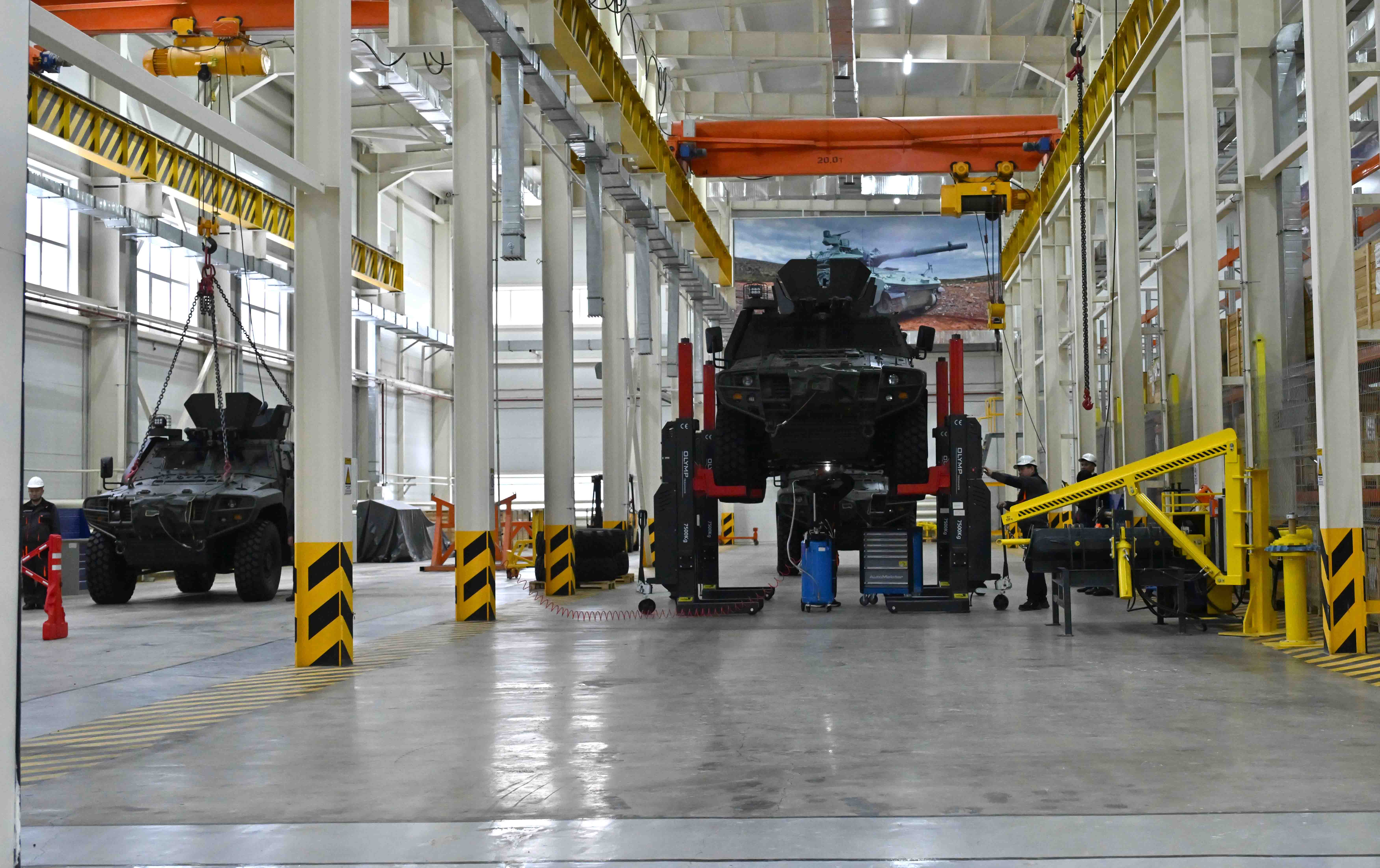 Глава государства посетил завод по производству и техническому обслуживанию бронированных колесных и гусеничных машин Besqaru.