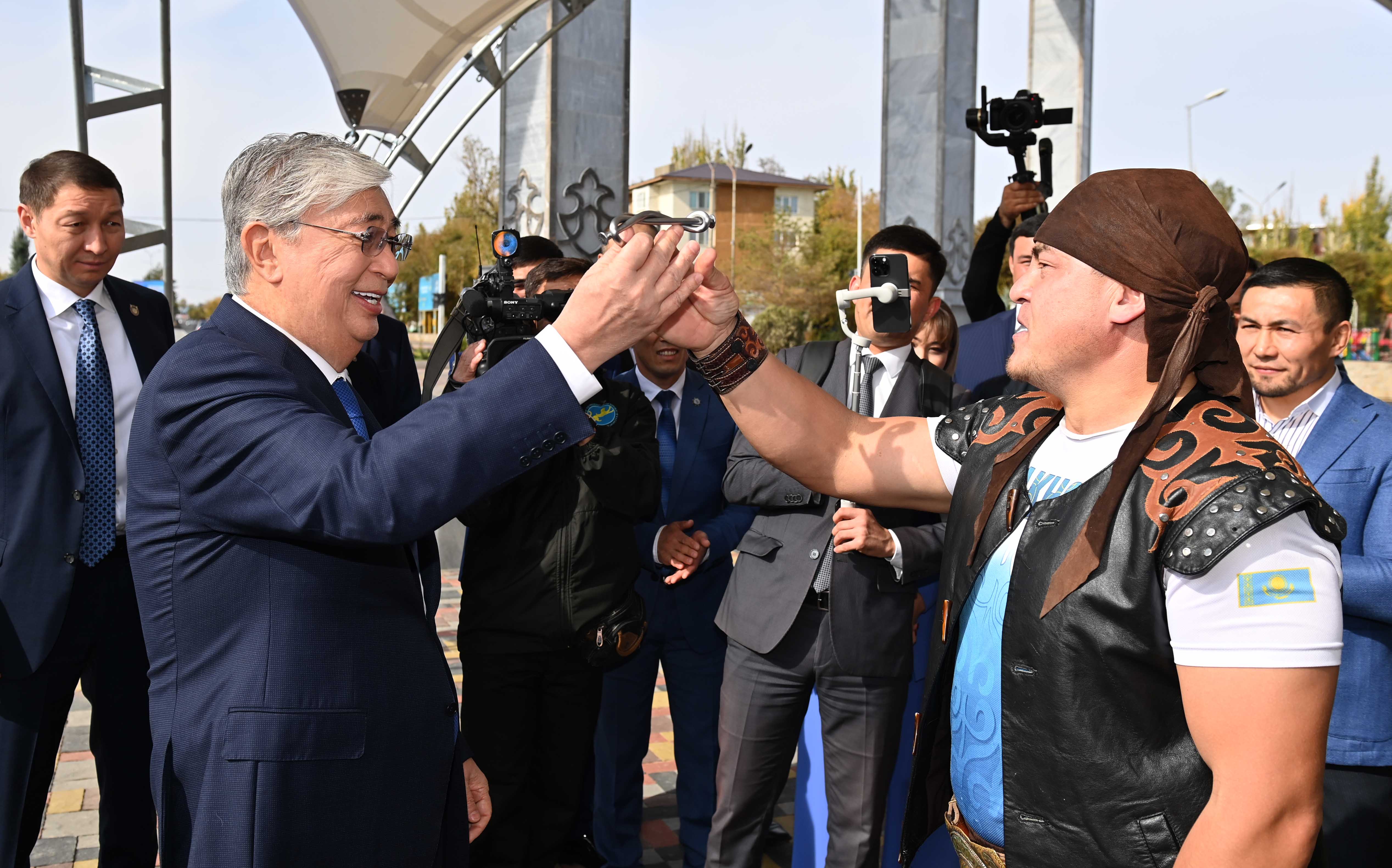 Президент побеседовал с жителями области у памятника Динмухамеду Конаеву