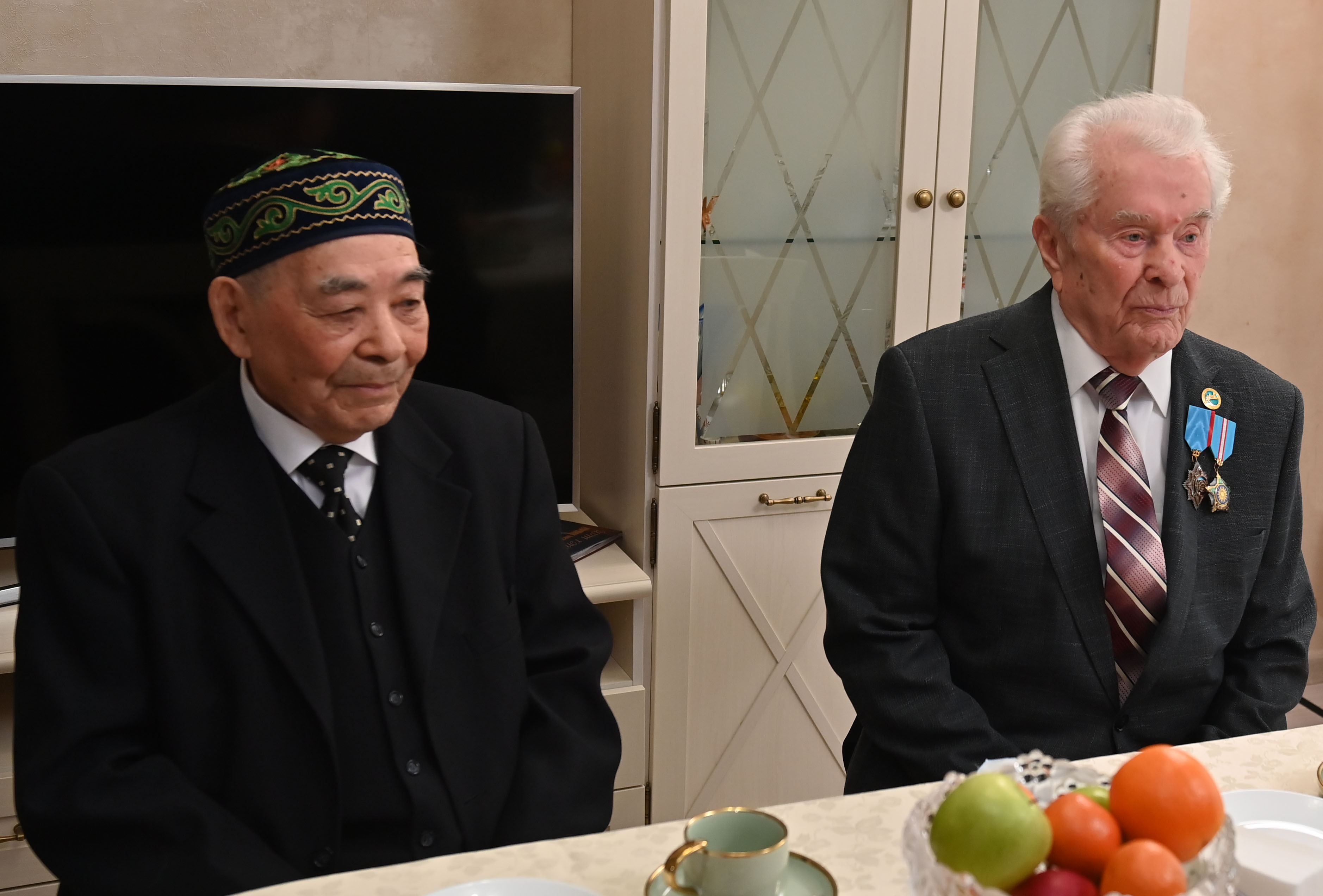 Ветеран войны Иван Гапич и ветеран труда Жайсан Акбай поблагодарили Президента за внимание и поддержку.