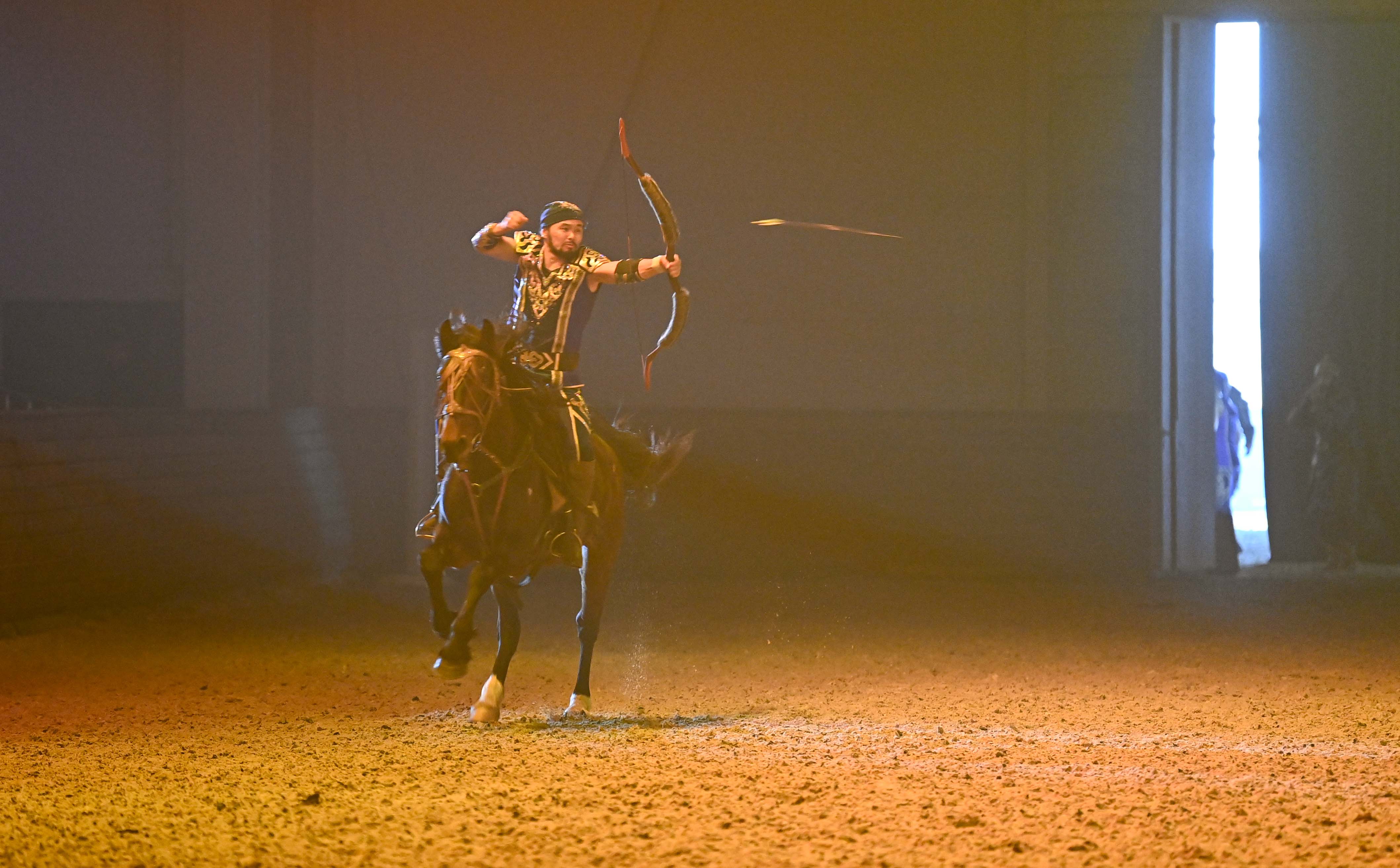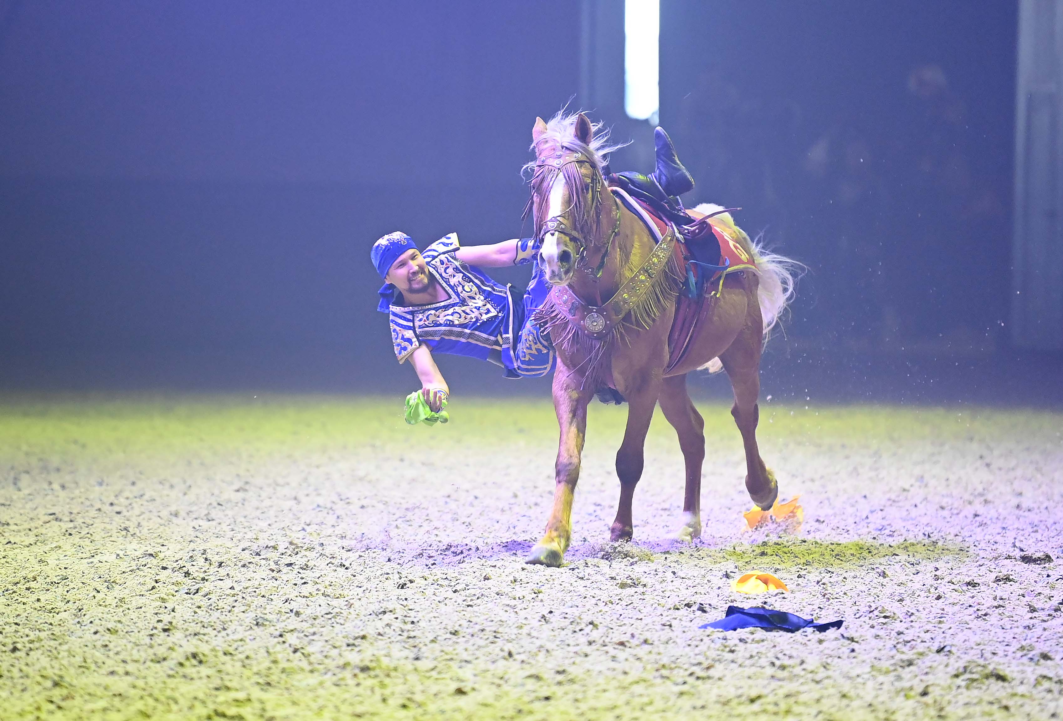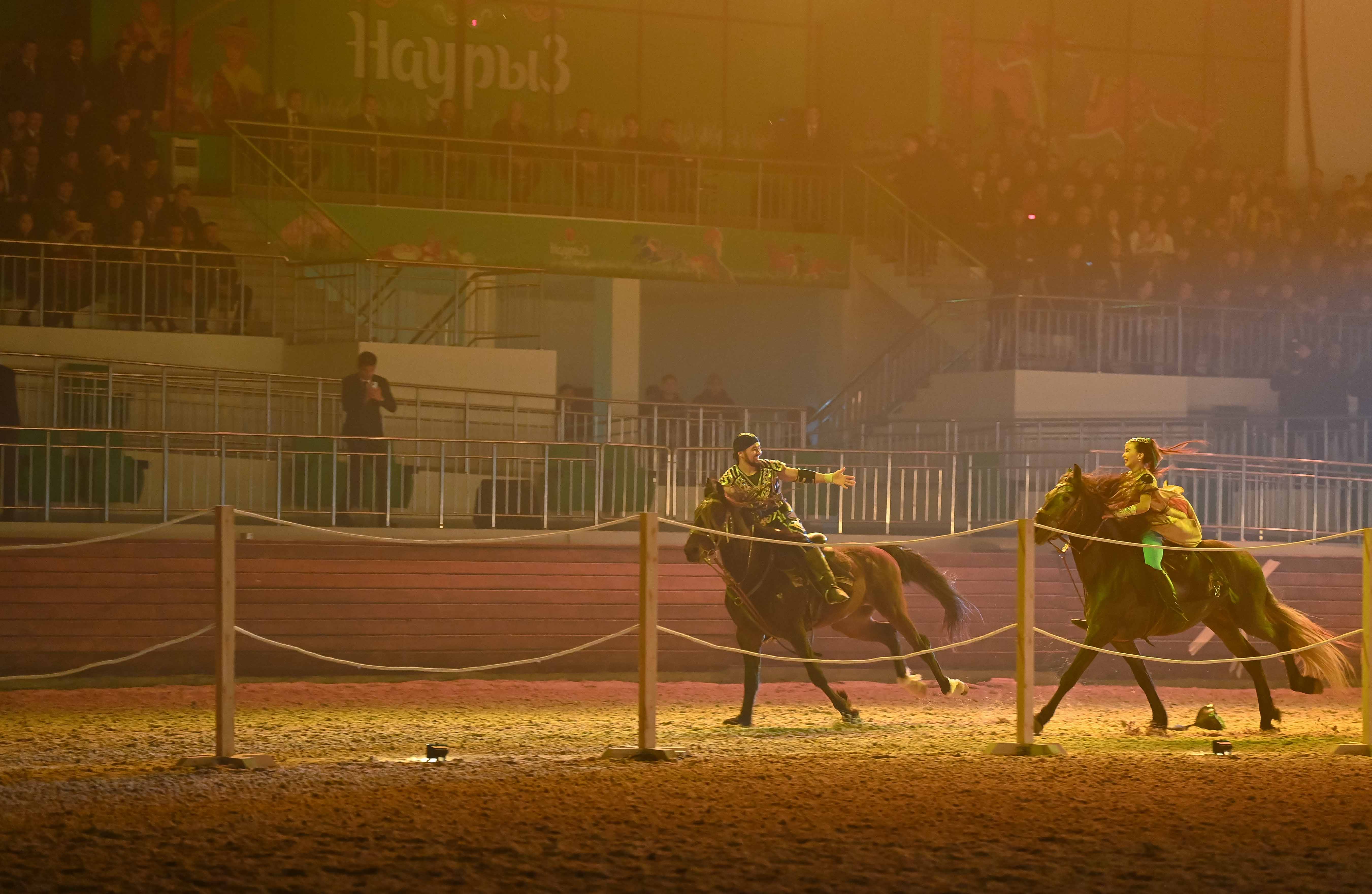 Касым-Жомарту Токаеву показали шоу конных наездников Nomad Stunts. Каскадеры продемонстрировали казахские национальные игры – аударыспақ, қыз қуу, теңге ілу, садақ ату, а также парад номадов.