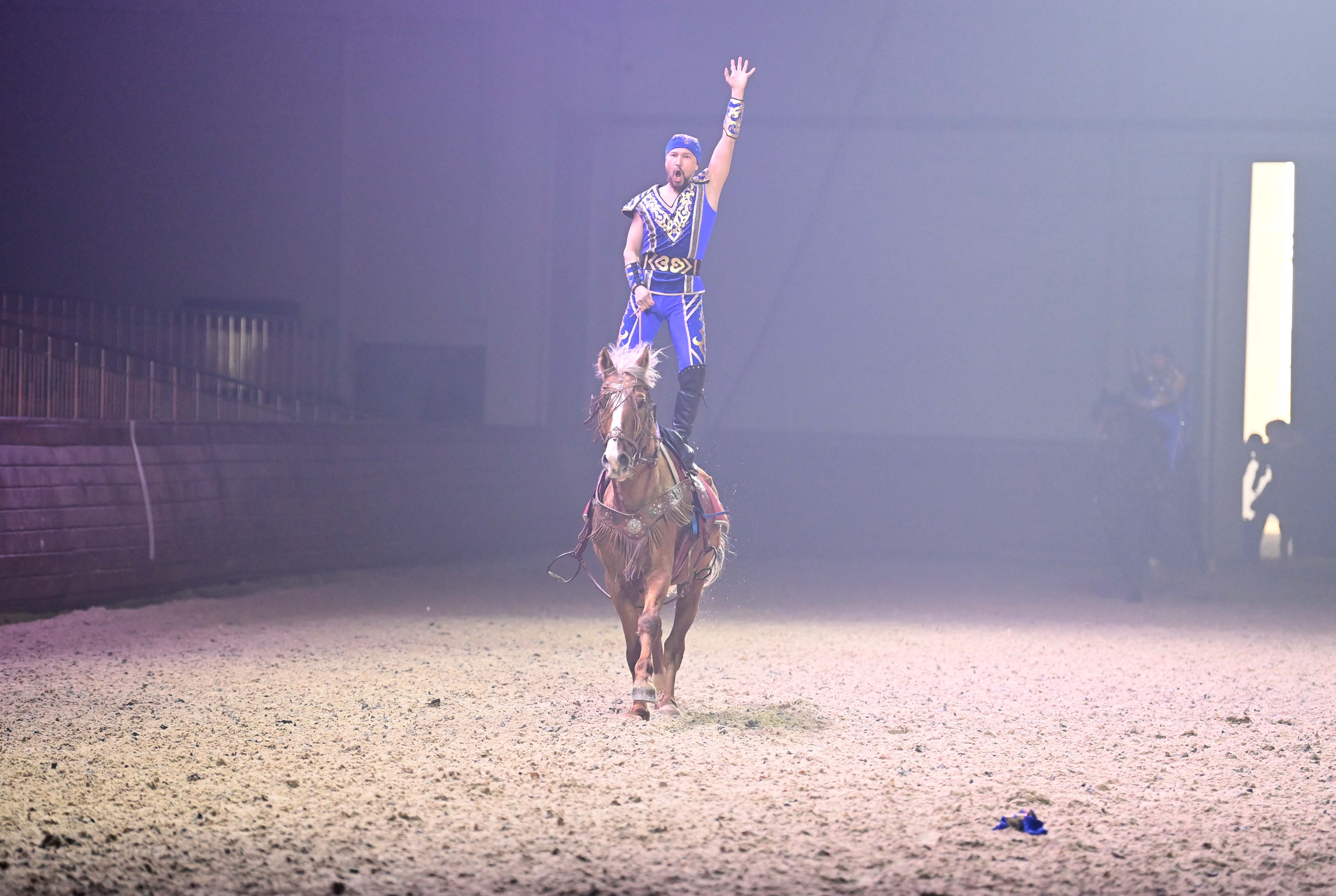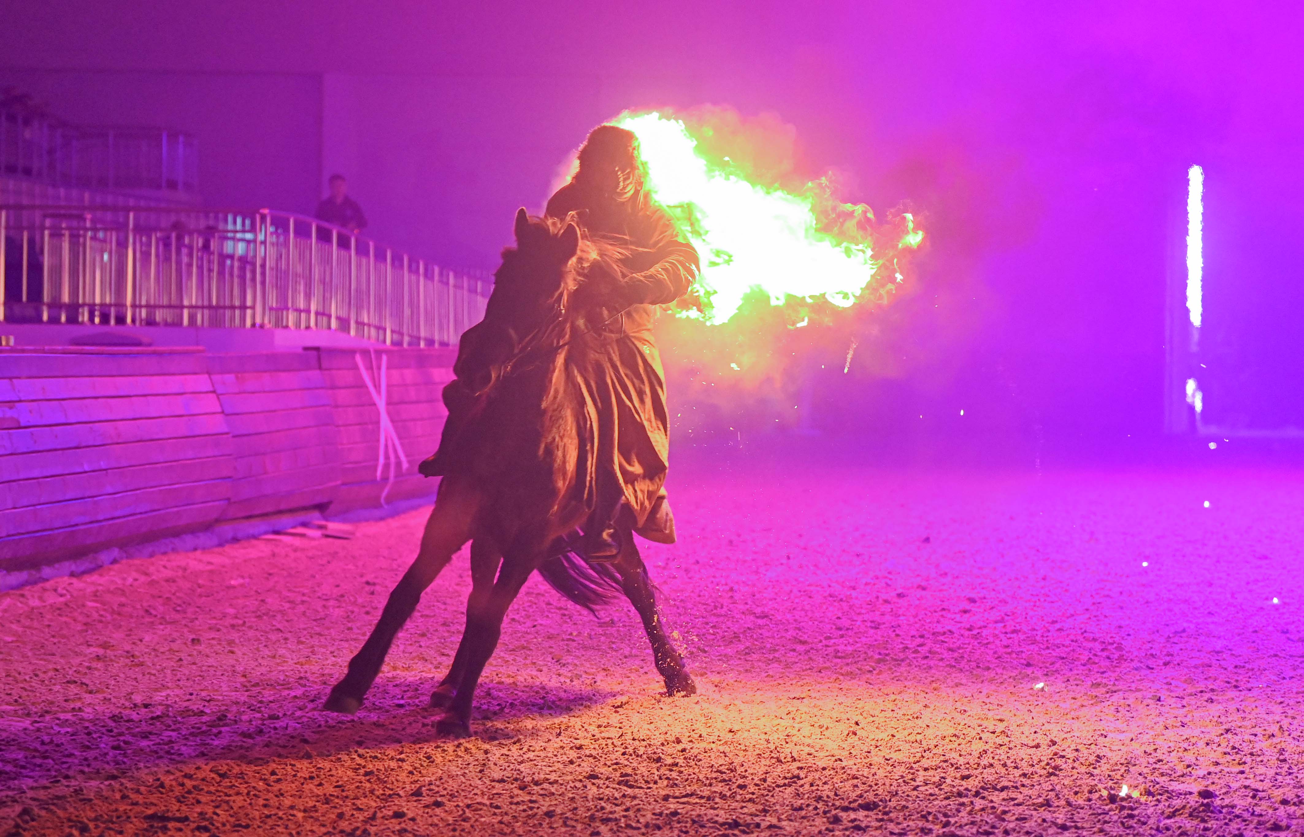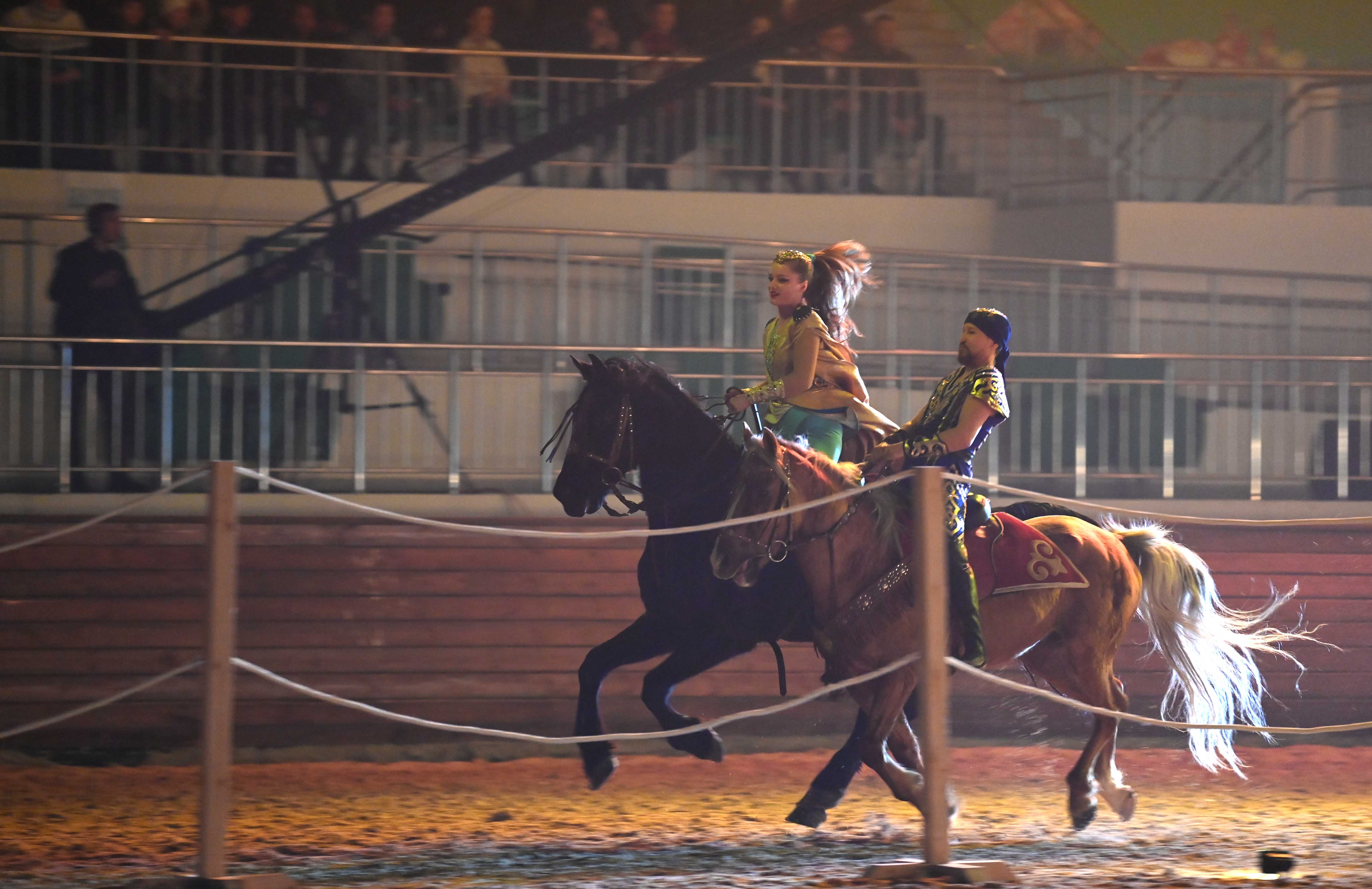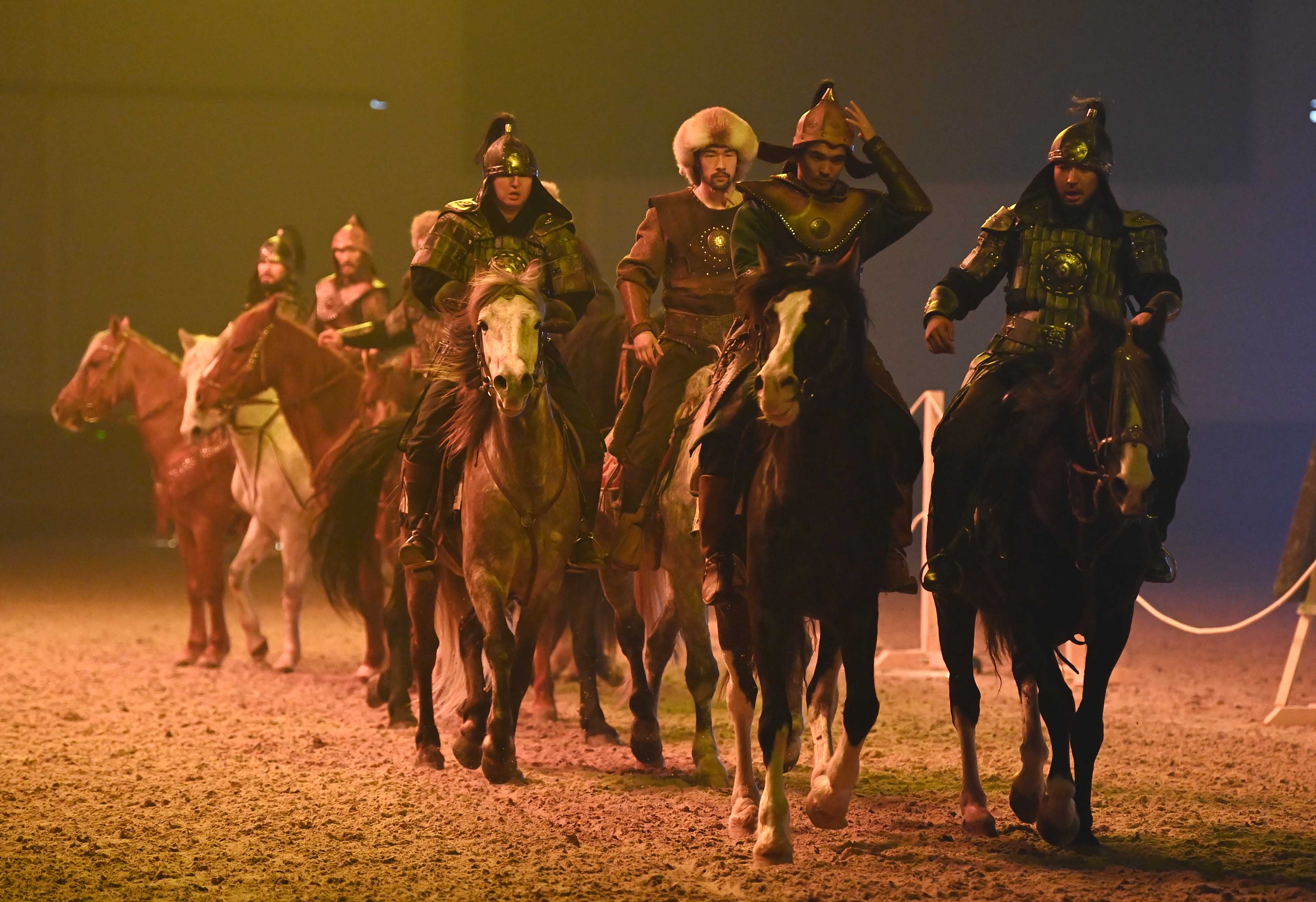 Касым-Жомарту Токаеву показали шоу конных наездников Nomad Stunts. Каскадеры продемонстрировали казахские национальные игры – аударыспақ, қыз қуу, теңге ілу, садақ ату, а также парад номадов.